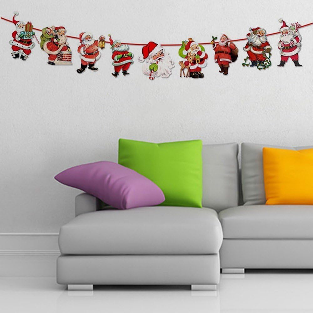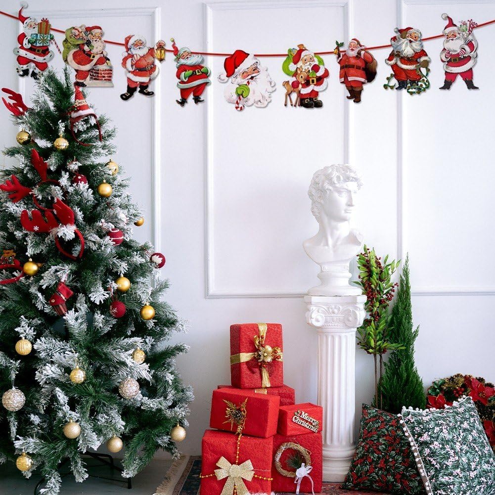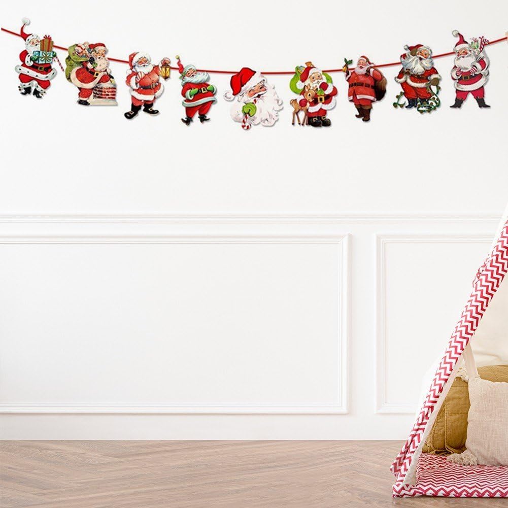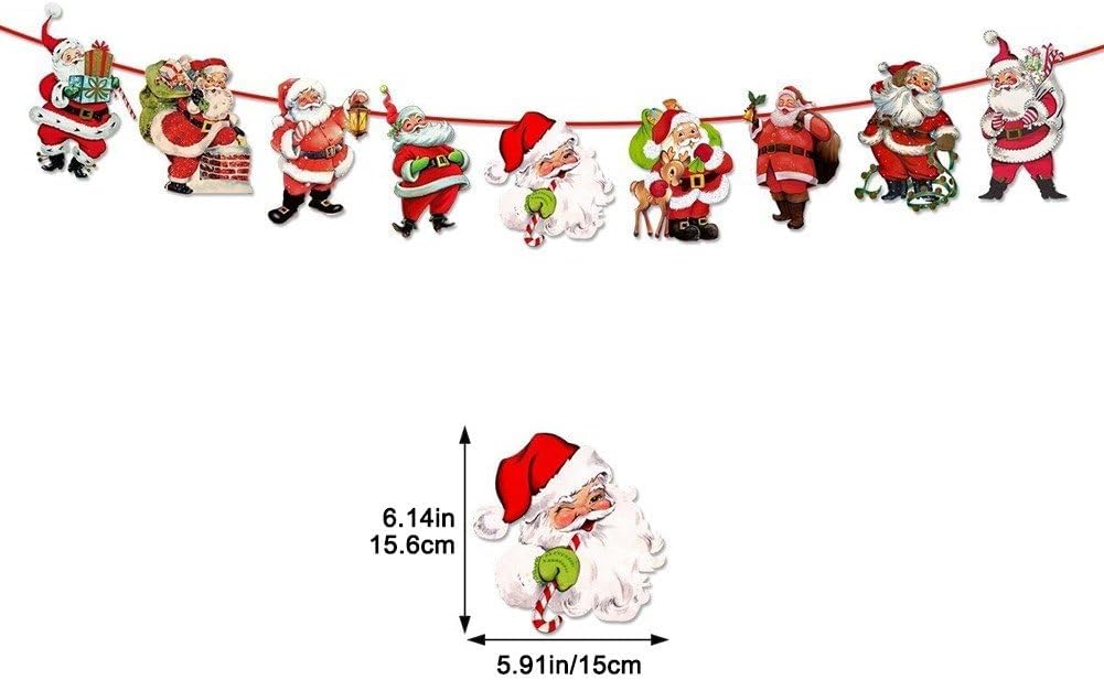 Decorazione natalizia festiva: migliora le tue celebrazioni natalizie con questa ghirlanda di striscioni natalizi, con i simboli iconici delle festività di Babbo Natale. Uso versatile: adatto per uso interno ed esterno, questo striscione natalizio è perfetto per decorare la casa, l'ufficio o il luogo della festa. Celebrazione del Capodanno: questo banner può essere utilizzato anche per i festeggiamenti del Capodanno, aggiungendo un tocco festoso alle celebrazioni delle festività. Facile da appendere: lo striscione viene fornito con accessori per appendere facili da usare, che lo rendono un'aggiunta senza problemi alle decorazioni natalizie. MATERIALI DI ALTA QUALITÀ: Realizzato con materiali durevoli e di alta qualità, questo striscione è costruito per resistere alle festività natalizie e può essere riutilizzato per anni.