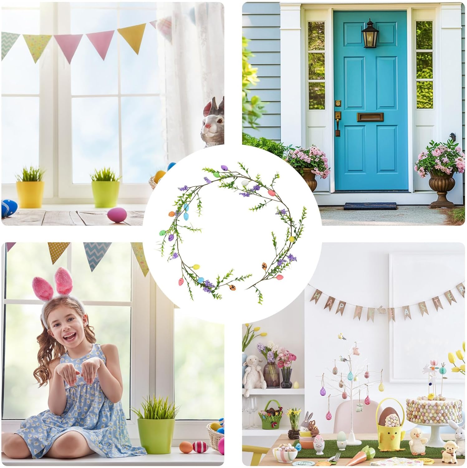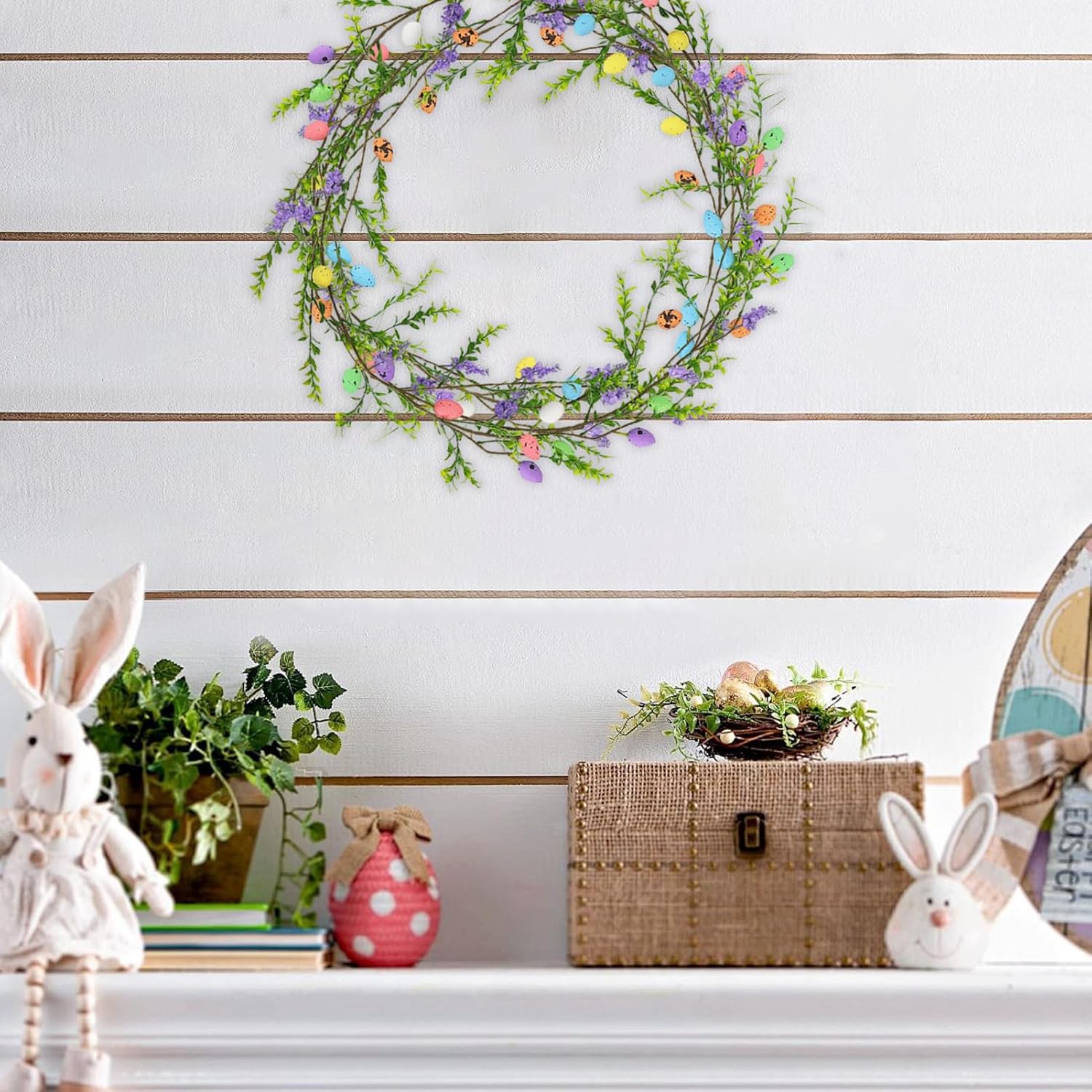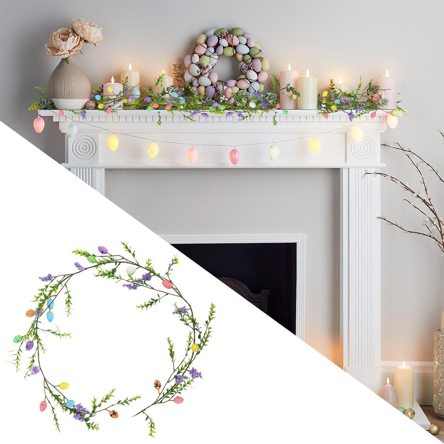 BELLEZZA DI LUNGA DURATA: aggiungi un tocco stagionale alla tua porta con questa ghirlanda pasquale realizzata con un robusto tubo per uova artificiali. Le sue proprietà antirughe e anti-scolorimento garantiscono una cura morbida e facile, mentre i materiali di alta qualità garantiscono una bellezza duratura. Artigianato squisito: migliora la decorazione della tua casa e del tuo negozio aggiungendo le nostre ghirlande pasquali sulla porta d'ingresso. Sono caratterizzati da una squisita fattura, un design ispirato alla primavera e vivaci elementi decorativi in una classica tavolozza di colori a uovo. Aggiunge vibrazioni primaverili: migliora il tuo spazio con una splendida ghirlanda pasquale sulla porta d'ingresso. I colori vivaci e il design intricato creano un'atmosfera romantica e festosa, perfetta per aggiungere un'atmosfera allegra alle tue celebrazioni. Sperimenta il calore del Natale e crea ricordi preziosi con la tua famiglia e i tuoi amici. Usi estesi: migliora le tue decorazioni pasquali con questa ghirlanda che può facilmente passare da appesa al muro a centrotavola. Perfetto per hotel, ristoranti e qualsiasi spazio che necessiti di una decorazione versatile. Regalo ideale: le nostre ghirlande pasquali per la porta d'ingresso sono realizzate con cura per creare un'atmosfera vacanziera unica che migliora l'atmosfera del destinatario. Regala la selezione ideale di gioia e calore, perfetta per diffondere l'allegria natalizia e creare un'esperienza indimenticabile