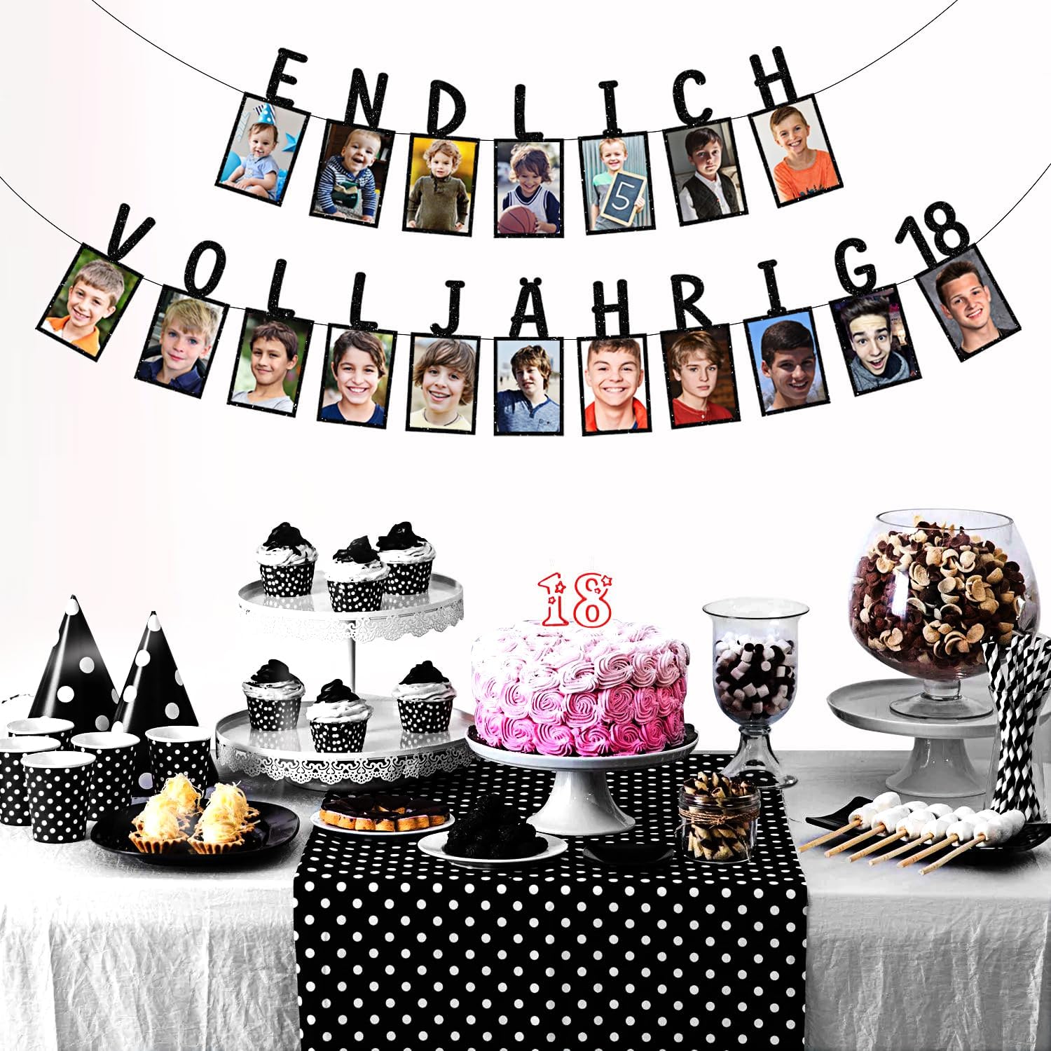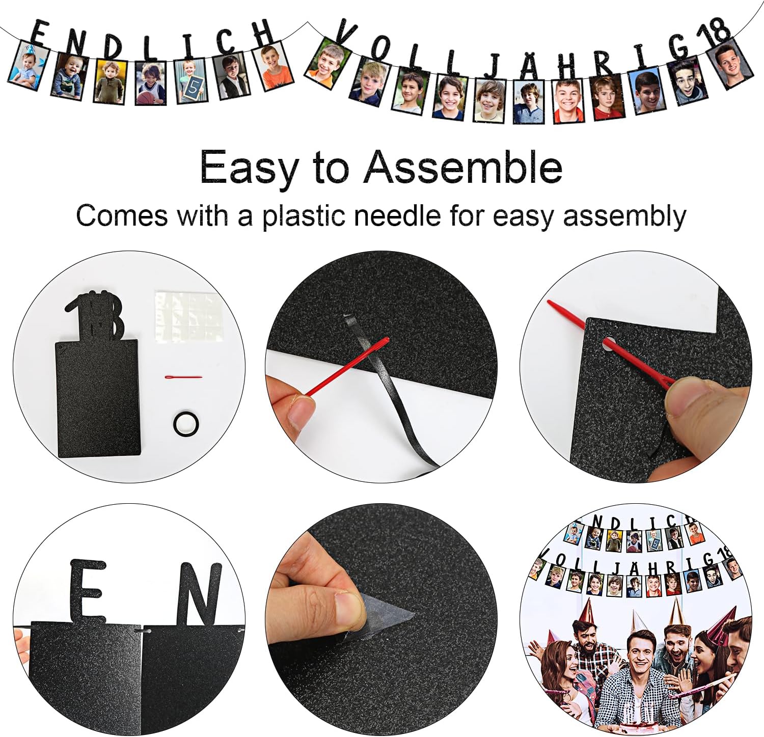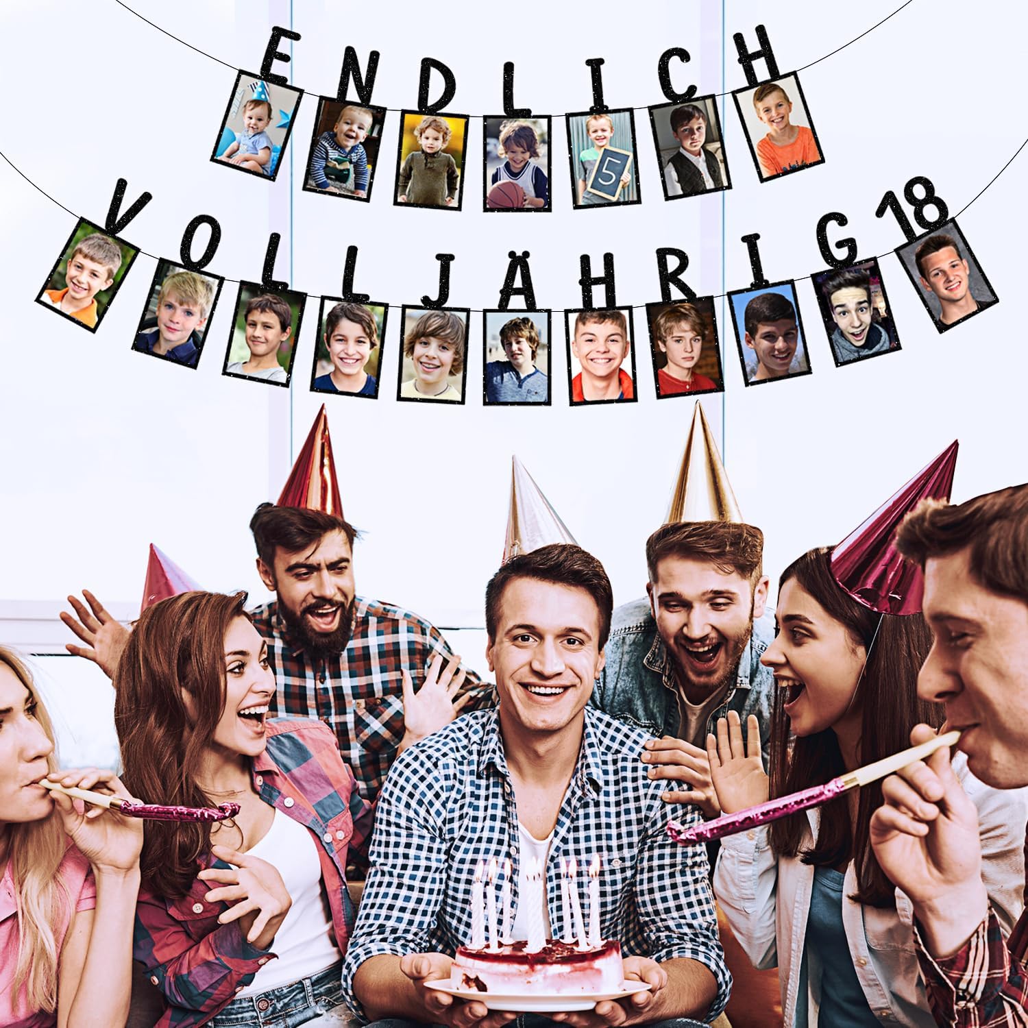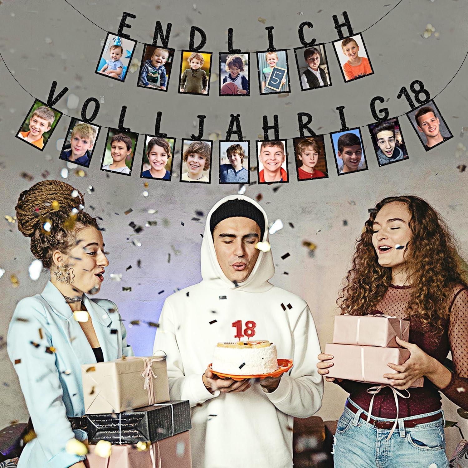 Contenuto della confezione: 18 cartoncini portafoto neri (FINALMENTE 18), 1 nastro (lungo circa 5 metri), 1 ago in plastica, 36 punti fronte-retro. 【Facile da usare】Basta attaccare la foto sulla carta con i punti biadesivi, far passare la corda attraverso i due piccoli fori nella carta e appendere la carta. Ideale per le decorazioni del 18° compleanno. 【Design Glitterato】La ghirlanda fotografica per il 18° compleanno è principalmente in nero scintillante ed è perfetta come decorazione murale per la festa del 18° compleanno. 【Bellissimi ricordi】 Il 18° compleanno è un momento indimenticabile, cattura i ricordi più belli di ogni anno tra 1 e 18 anni sotto forma di foto. 【Servizio clienti】 Apprezziamo un eccellente servizio clienti. Se hai domande sul banner fotografico, puoi contattarci in qualsiasi momento.