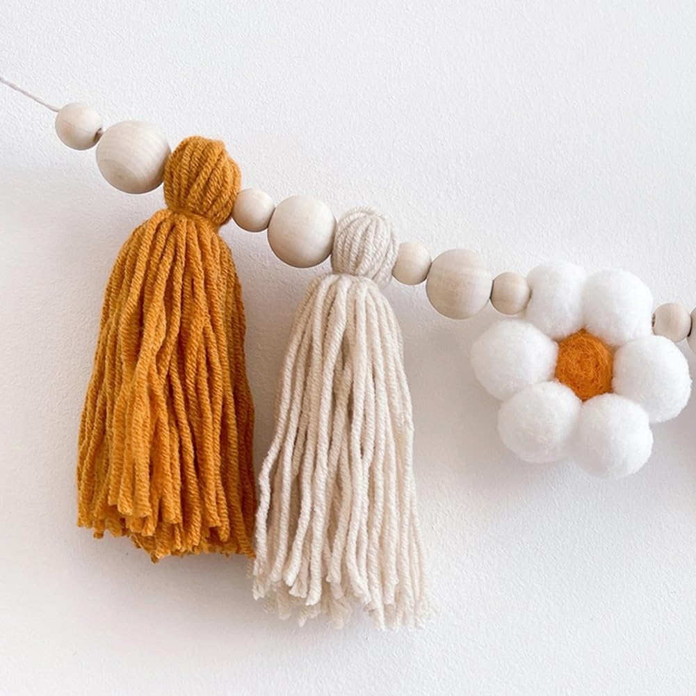 DIMENSIONE PERFETTA PER UN UTILIZZO VERSATILE: Misurando circa 200 cm, la decorazione della ghirlanda con nappe offre il perfetto equilibrio tra risalto e versatilità; È sufficiente per avere un grande impatto in qualsiasi allestimento, ma abbastanza compatto da essere facilmente collocato in luoghi diversi. Design accattivante: progettato con incantevoli margherite, perline di legno e intricati macramè, questa decorazione boho ghirlanda emana un'atmosfera bohémien; L'equilibrio tra questi elementi lo rende un pezzo unico ed esteticamente gradevole che sarebbe una gradita aggiunta a qualsiasi stile di arredamento Soddisfa le tue esigenze di decorazione: la confezione che riceverai contiene 2 pezzi di ghirlande di nappe boho, include 3 fiori di feltro bianco, 2 nappe e tante perline di legno di diverse dimensioni, puoi decorare aree diverse o unire le due insieme per un effetto boho migliorato e puoi condividerle con la tua famiglia e i tuoi amici Materiale e design squisiti: realizzati con cura con attraenti perline di legno, morbide margherite di feltro e tessuto resistente materiale, la nostra fantastica ghirlanda di nappe è l'epitome dell'eleganza artigianale; I suoi colori giocosi, come mostrato nelle immagini, aggiungono un tocco di fascino vibrante al tuo spazio. In linea con il tema boho: questa ghirlanda di fiori boho con il suo innato fascino rustico è un perfetto elemento d'accento per una stanza a tema boho; Ha un duplice scopo: aggiunge un aspetto decorativo promuovendo al contempo il tema boho del tuo spazio