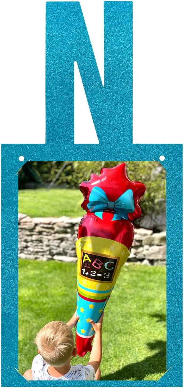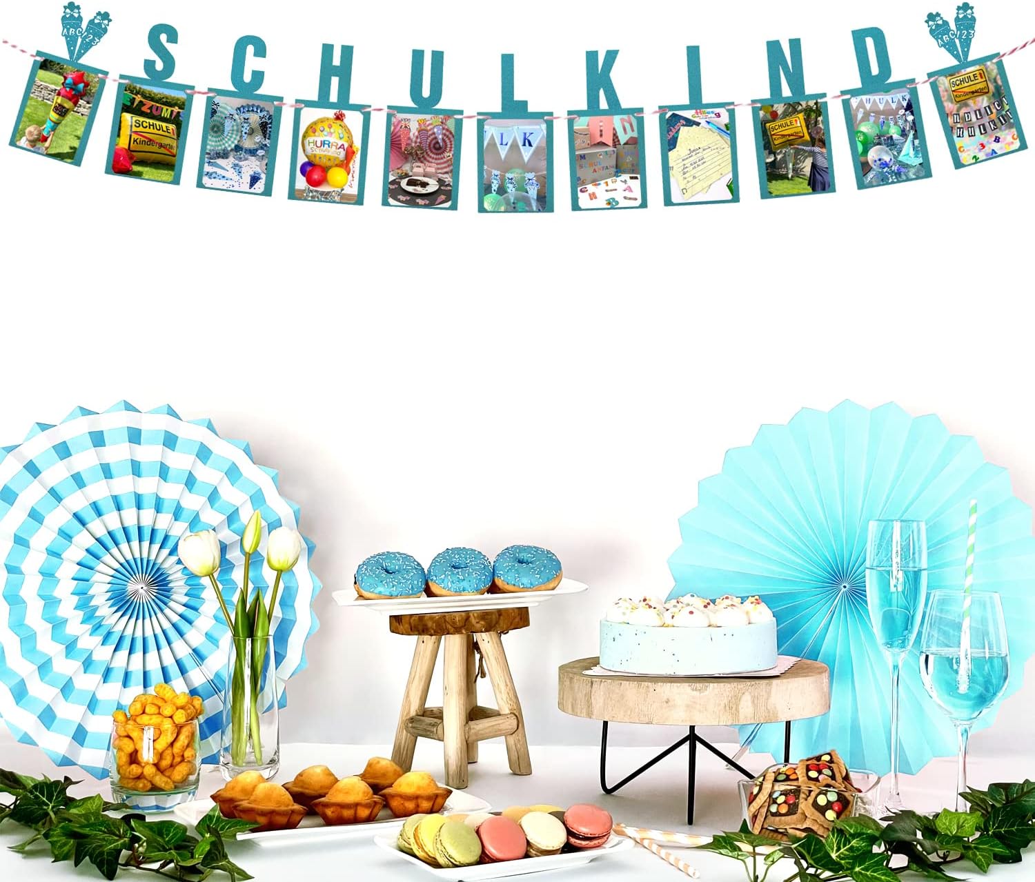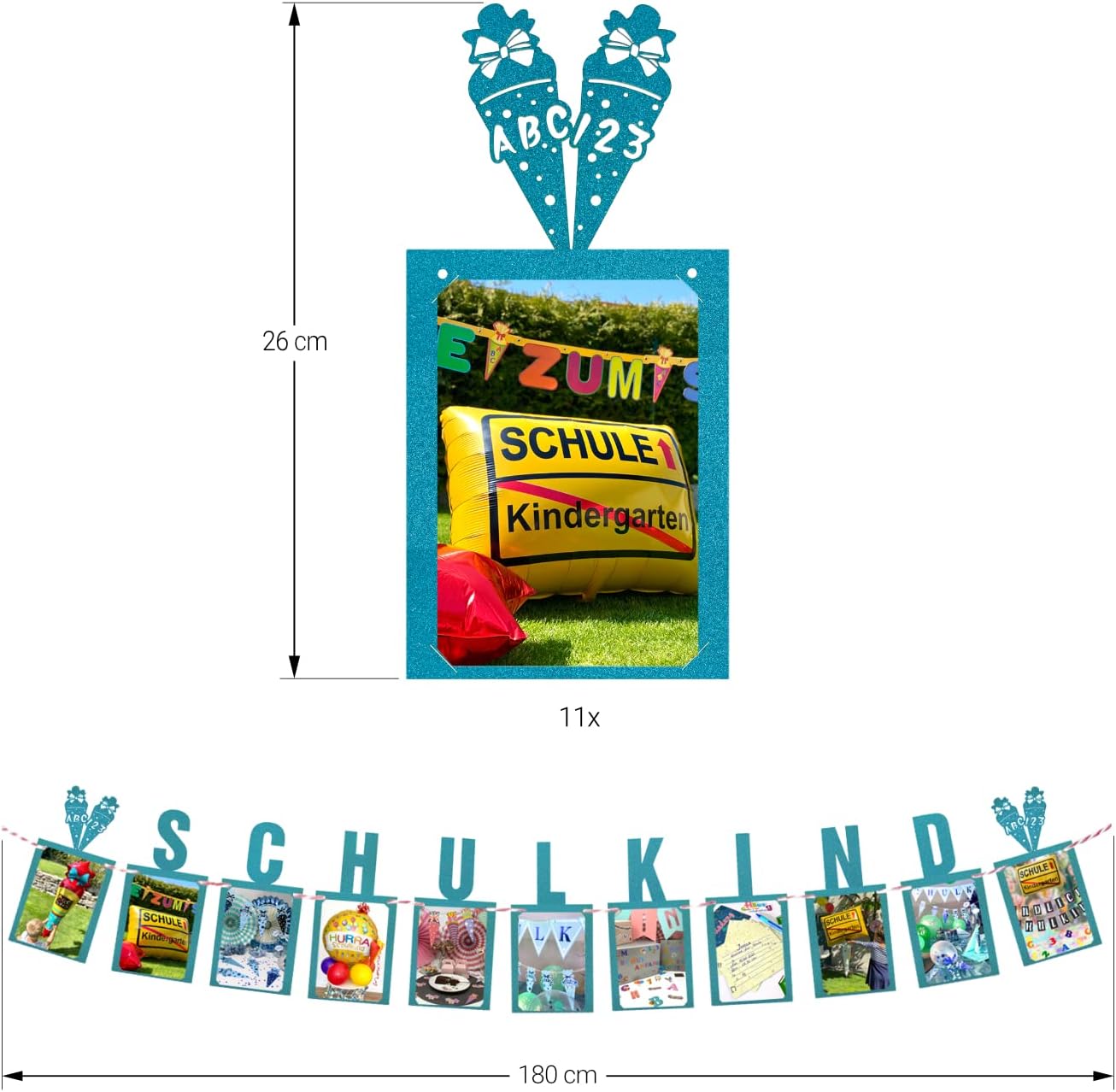 Quantità: 1 bellissima ghirlanda con cartoncini singoli (per foto), con la scritta "bambino in età scolare", con nastro e ago per infilare Colore: rosa, turchese, champagne, argento (a scelta); Materiale: cartone La ghirlanda è di ca. 1,8 m di lunghezza, ogni lettera è di ca. 13 cm di larghezza e ca. 26 centimetri di altezza. Perfetto per iniziare la scuola o iniziare la scuola per ragazzi e ragazze