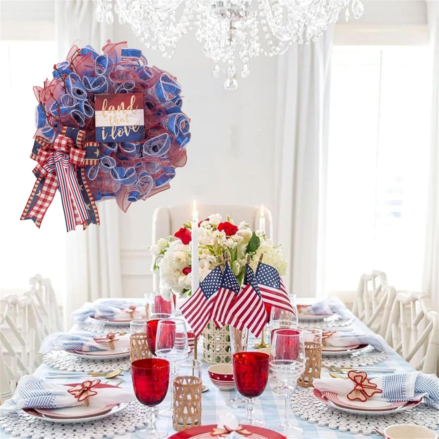 Contenuto della confezione: 1 ghirlanda patriottica, la squisita ghirlanda indispensabile ornamento per decorare la tua festa, casa il giorno dell'indipendenza. Corona patriottica, principalmente di colore bianco e blu, prende la bandiera americana come tema e modellato in un bellissimo fiore. questa è una corona romanza, unica e patriottica per celebrare il 4 luglio, il giorno dei veterani e il giorno dei memoriali, creando una festa forte per la festa e trasmettendo i tuoi forti orgoglio per la nazionalità. Materiali, la corona patriottica è realizzata in tessuto e con colori brillanti e non richiede particolari e la manutenzione dura. Dimensioni: misura 11 cm di altezza. Da utilizzare per la tua festa di vacanza che sarà un festival creativo. Ampie applicazioni: la ghirlanda è adatta per decorazioni tutto l'anno, adatta per festival, decorazioni per la casa, feste, per aumentare il patriottismo, per celebrare l'inaugurazione della casa di soldati, compleanni, .