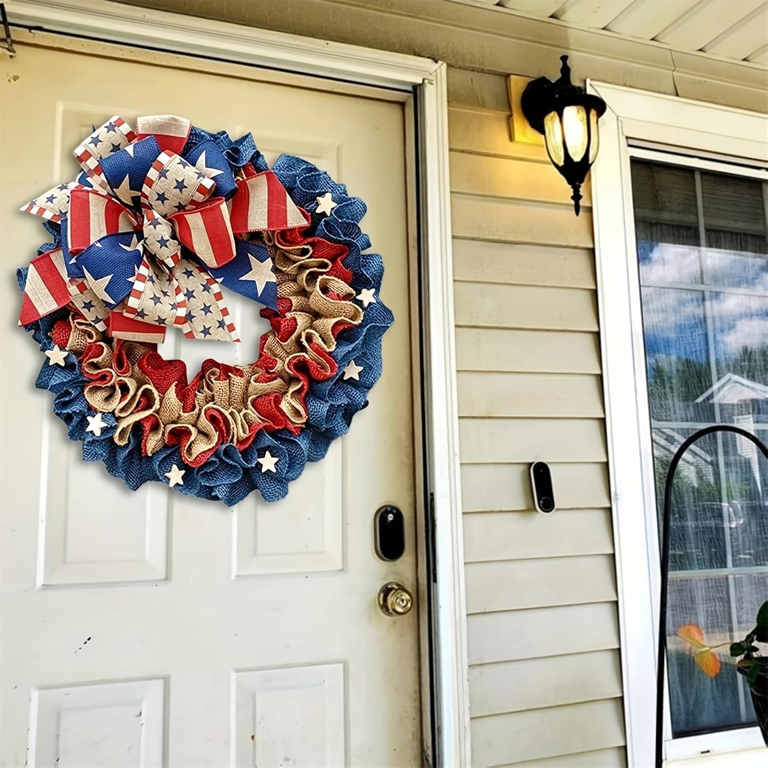 Porta un colore brillante nella tua stanza. Puoi facilmente aggiungere altre decorazioni per creare la ghirlanda che desideri, rendendola una decorazione unica per interni ed esterni Questa ghirlanda patriottica in iuta con grande fiocco, ideale per porta d'ingresso, parete, fattorie, giardino, Natale, matrimonio, giorno dell'indipendenza Dimensioni adeguate per porta d'ingresso, parete, finestra, portici, corridoio, giardino. Dopo un uso prolungato, pulire con un panno asciutto. Si prega di evitare pioggia, neve e luce solare diretta La nostra ghirlanda per porta d'ingresso con panno non cade e sbiadisce. Non ha bisogno di acqua e pulito Questa ghirlanda con fiocco funziona alla grande come corona patriottica, ghirlanda per il giorno dell'indipendenza, ghirlanda invernale, ghirlanda di Natale, ghirlanda di nozze, decorazioni per interni ed esterni