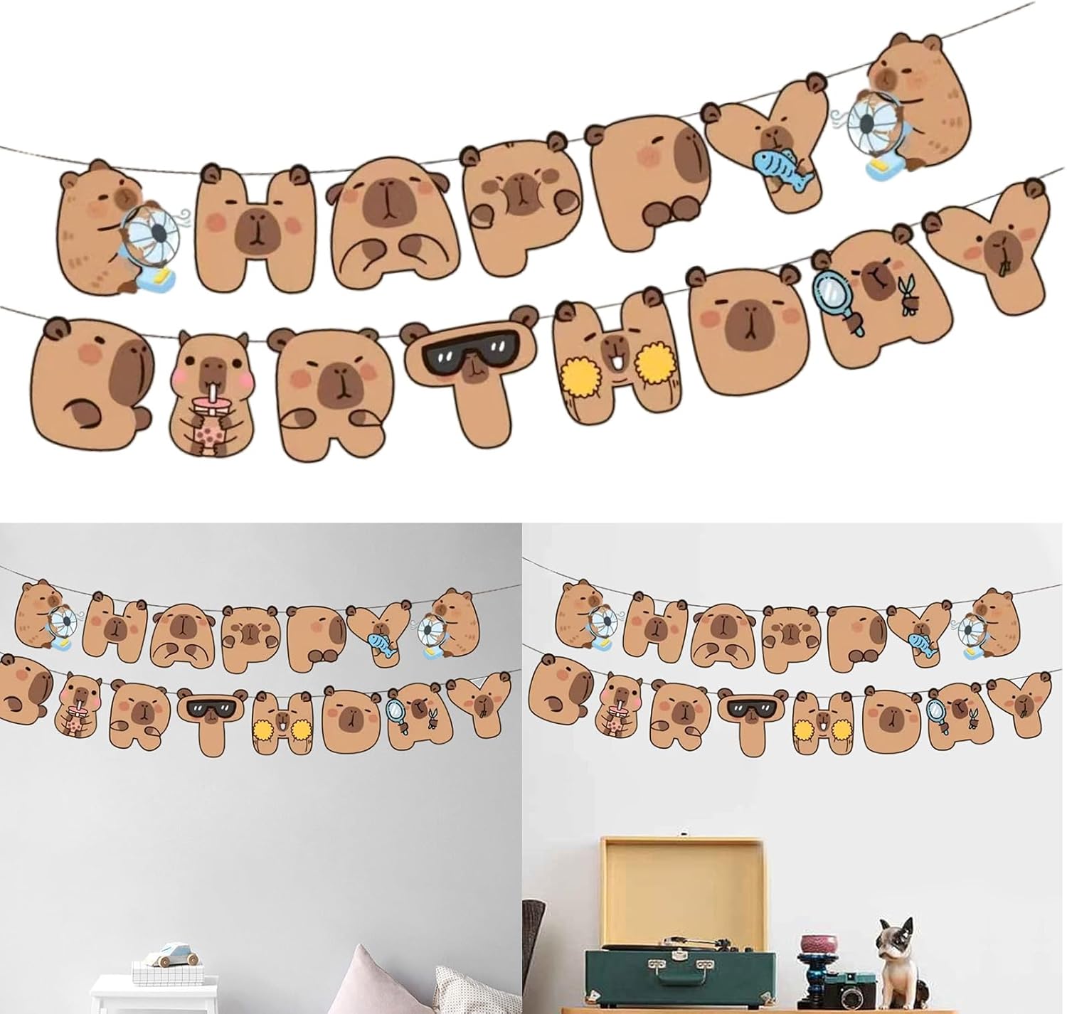 Perfetto per gli appassionati di Capybaras di età diverse e per chiunque voglia creare un'atmosfera di festa distintiva Ideale per decorazioni per feste di compleanno in interni ed esterni, fondali fotografici e per migliorare l'atmosfera dei festival in qualsiasi evento Festeggia con stile con gli striscioni di compleanno di Capybaras in stili che includono adorabili disegni di Capybaras in stile cartone animato che aggiungono un tocco unico a qualsiasi festa di compleanno Realizzati in cartone, sono robusti, facili da appendere e presentano un colore brillante che resiste allo sbiadimento e garantiscono che possano essere riutilizzati per più celebrazioni Queste ghirlande di buon compleanno di Capybaras sono essenziali forniture per feste per chi ama i temi della fauna selvatica e sorprende la tua celebrazione