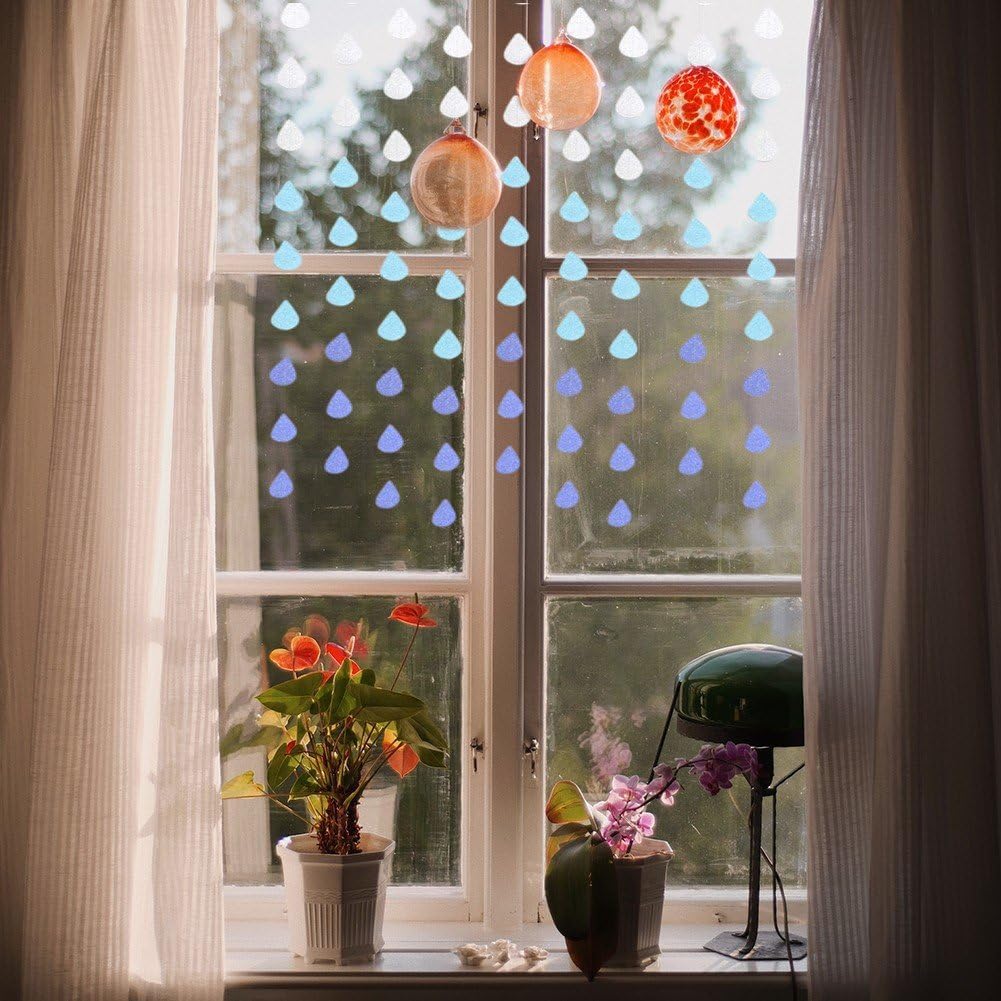 Realizzato in carta, il colore cambia e luccica leggermente. Sono tutti collegati ad un cavo sottile e sono pronti per l'uso immediato. Ghirlanda di gocce di pioggia per aule, negozi, matrimoni, feste, decorazioni natalizie. Ideale anche come decorazione per la cameretta dei bambini, festa di aprile, festa di primavera, baby shower o decorazione quotidiana. Possono essere facilmente appesi ai pannelli del controsoffitto o tagliati a diverse lunghezze e posizionati ovunque come decorazione. Aggiunge un'atmosfera più vibrante e bella alla tua casa, porta un divertimento visivo accattivante e lascia un ricordo impressionante per i tuoi amici e ospiti. Le ghirlande di carta sono progettate in un unico strato, il che rende il noioso lavoro manuale più semplice e facile da usare. Devi solo fare attenzione durante l'apertura per evitare che le corde si aggroviglino, e puoi tagliarle in diverse lunghezze secondo necessità per decorare in luoghi diversi e creare la tua festa davvero speciale.