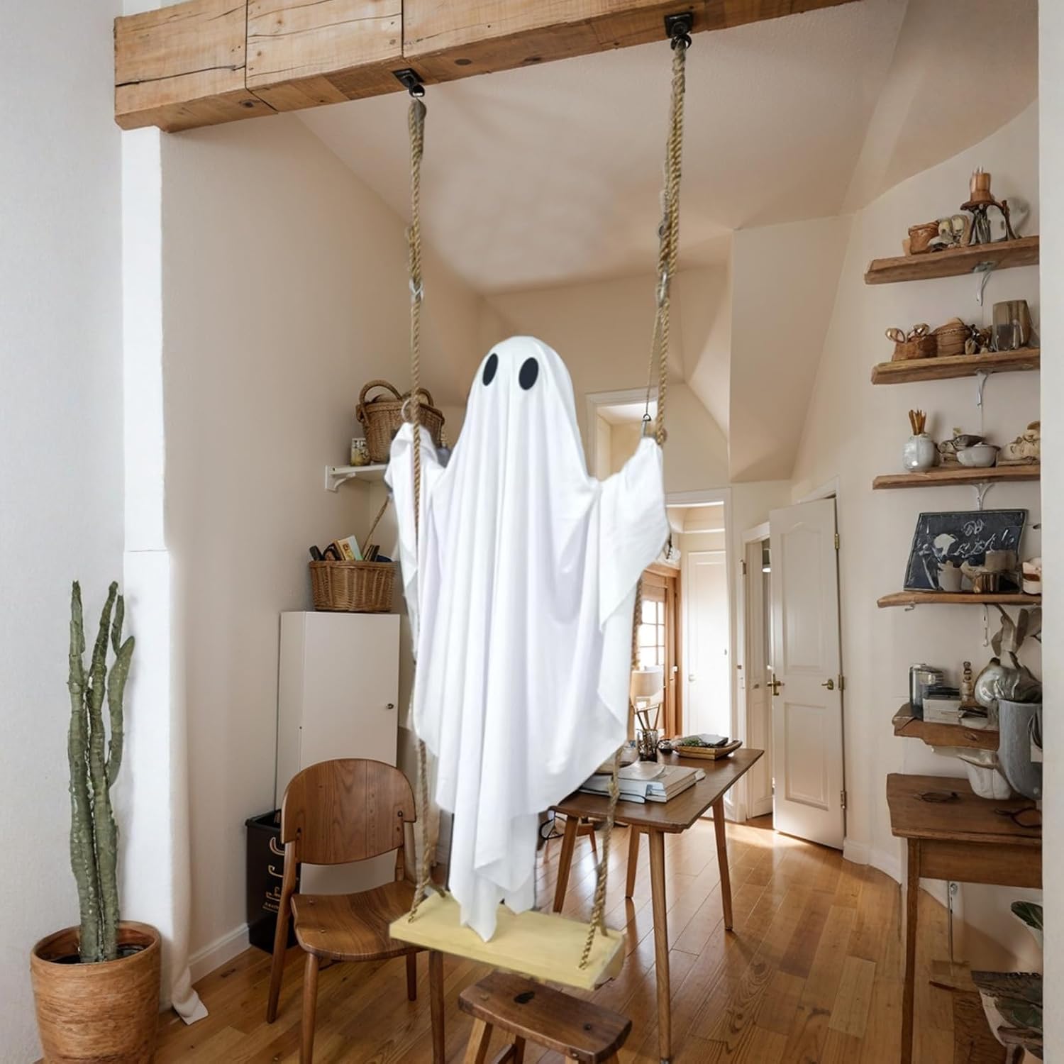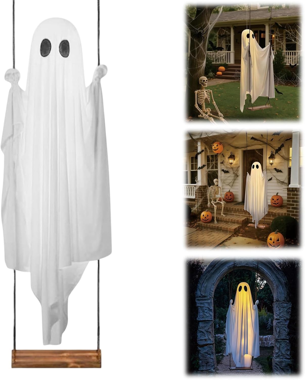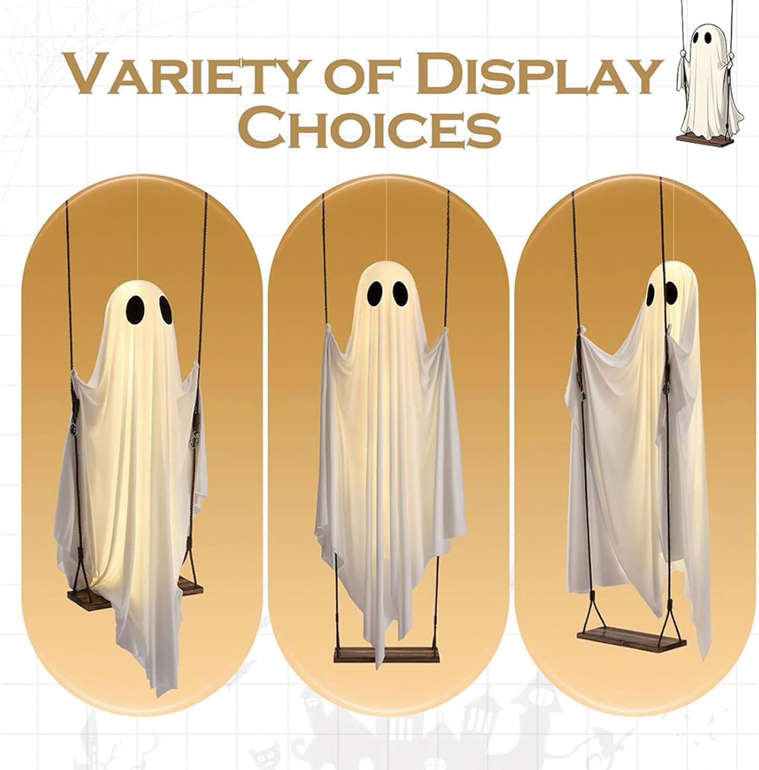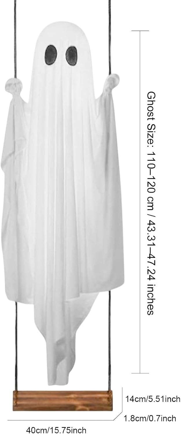 Swing di fantasmi alti accattivanti: raggiungi nuove altezze di orrore con questo fantasma swing sospeso da 5,9 piedi. Guardalo alla deriva e ondeggia, attirando l'attenzione e consegnando una presenza spaventosa per i display di Halloween all'aperto. Opzioni di posa multipla: siediti, mettiti o imposta il fantasma che spinge l'oscillazione; La oscillazione fantasma sospesa presenta un'altezza regolabile per un ulteriore realismo e display creativi. La posa versatile aumenta il fattore spettrale del tuo arredamento di Halloween. Qualità del tessuto avanzata: l'arredamento fantasma sospeso utilizza un tessuto spesso aggiornato che è liscio al tatto, resistente alle rughe e realizzato per la durata, garantendo che il tuo display mantenga il suo realismo inquietante in tutte le condizioni meteorologiche. Modalità di illuminazione convenienti: usa il telecomando incluso per scegliere tra otto stili di illuminazione distinti, permettendo al tuo brillante sfarfallio del fantasma bianco o alla dissolvenza per diversi effetti spaventosi. Il timer incorporato ti consente di automatizzare gli orari con facilità. Configurazione infallibile completa: tutti i componenti inclusi per un facile assemblaggio - appendi su rami, portici, yard, prati o porte. Il fantasma oscillante porta il divertimento 'orrore a feste, case infestate o uffici, aumentando i tuoi festeggiamenti di Halloween.