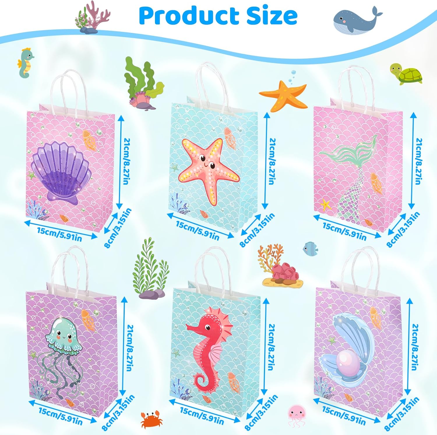 【Materiale di alta qualità】 Le borse di compleanno per bambini sono realizzate in carta kraft di alta qualità, puoi riutilizzarle secondo necessità, maniglia ben collegata, non facile da staccare, facile da trasportare. 【Tema Sirena】 Dai vita alla tua festa a tema sirena con questi sacchetti regalo di compleanno a sirena, perfetti per la tua festa a tema sirena. 【6 stili】 Le borse di compleanno per bambini Sirena sono composte da 6 stili diversi e i modelli di ogni stile sono molto accattivanti e conferiscono loro un'atmosfera speciale. Ampia applicazione: i sacchetti regalo per bambini sono adatti a varie occasioni, sia che tu stia pianificando una festa a tema sirena, un baby shower, una festa di compleanno o una riunione di famiglia o un evento di compagni di classe, questo elegante sacchetto regalo è ideale per entrambi. 【Lista di imballaggio】Riceverai 12 sacchetti regalo di compleanno, sacchetti di compleanno dimensioni 21*15*8 cm/8,27*5,91*3,15 pollici, quantità sufficiente, dimensioni adatte, possono soddisfare pienamente le esigenze della tua festa.