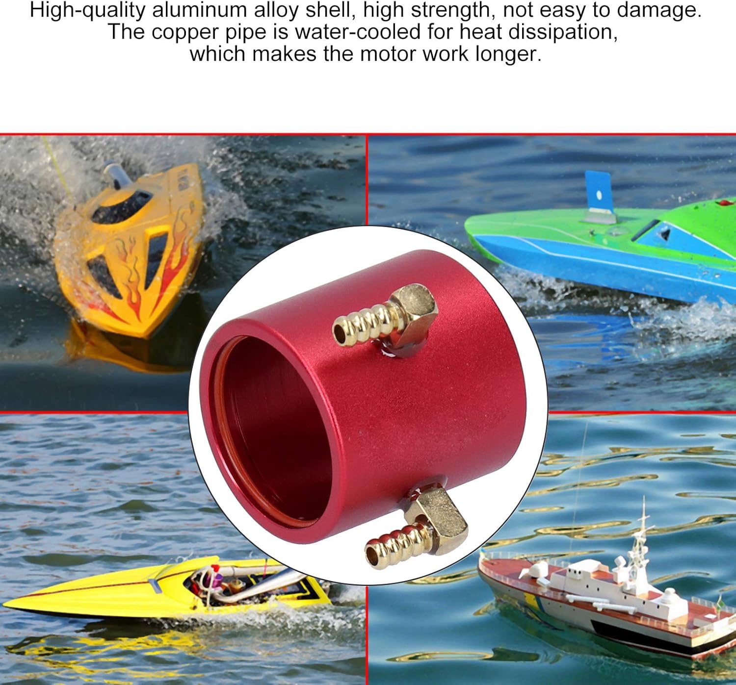 Guscio in lega di alluminio di alta qualità, ad alta resistenza, non facile da danneggiare. Meraviglioso accessorio per barca telecomandata. Adatto per motori brushless da 24 mm, come motori brushless 2435, 2440, 2445, ecc. Il tubo di rame è raffreddato ad acqua per la dissipazione del calore, prolungando il funzionamento del motore. Facile da installare e smontare, molto pratico.