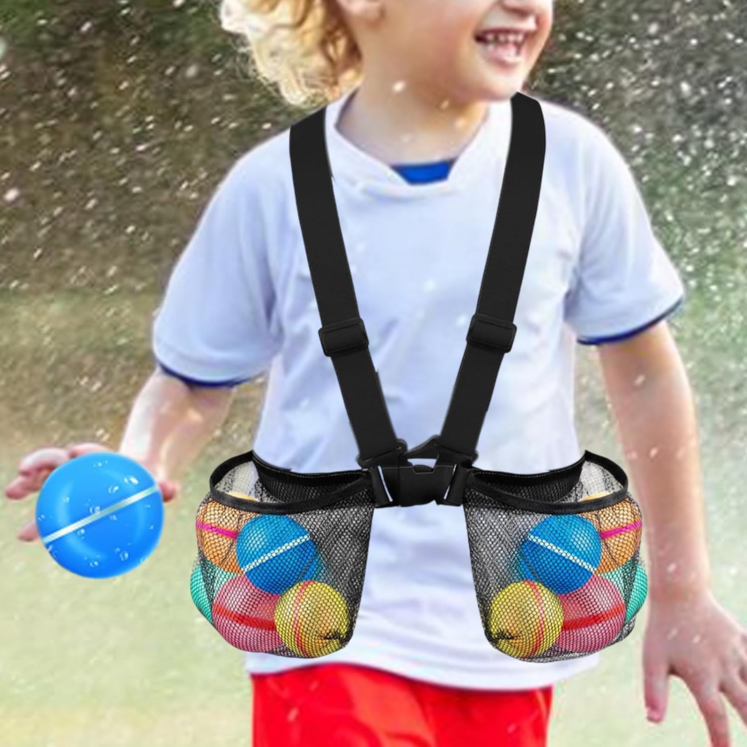 Trasporta comodamente questa borsa portaoggetti: con spalline regolabili e una vita progettata per bambini e adulti di diversi tipi di corpo Trasporto di giocattoli d'acqua senza sforzo: semplifica il processo di portare il tuo palloncino d'acqua in acqua con il design a tracolla facile da sdraiare. Godetevi più giochi d'acqua senza il fastidio Mantieni le cose organizzate: questa giacca è progettata per riporre e organizzare i giocattoli da piscina. Dispone di 2 tasche in rete per organizzare le cose e facilitare l'ordinamento di diversi tipi di giocattoli acquatici Tessuto a rete e materiale in poliestere: con tessuto a rete e poliestere leggero, questa giacca garantisce comfort e durata, quindi è resistente ai danni e allo stesso tempo consente una ventilazione ottimale Molteplici usi: sperimentato il legame familiare in piscina, in giardino e nel parco e aumenta il divertimento dell'interazione tra genitore-figlio. È ampiamente usato