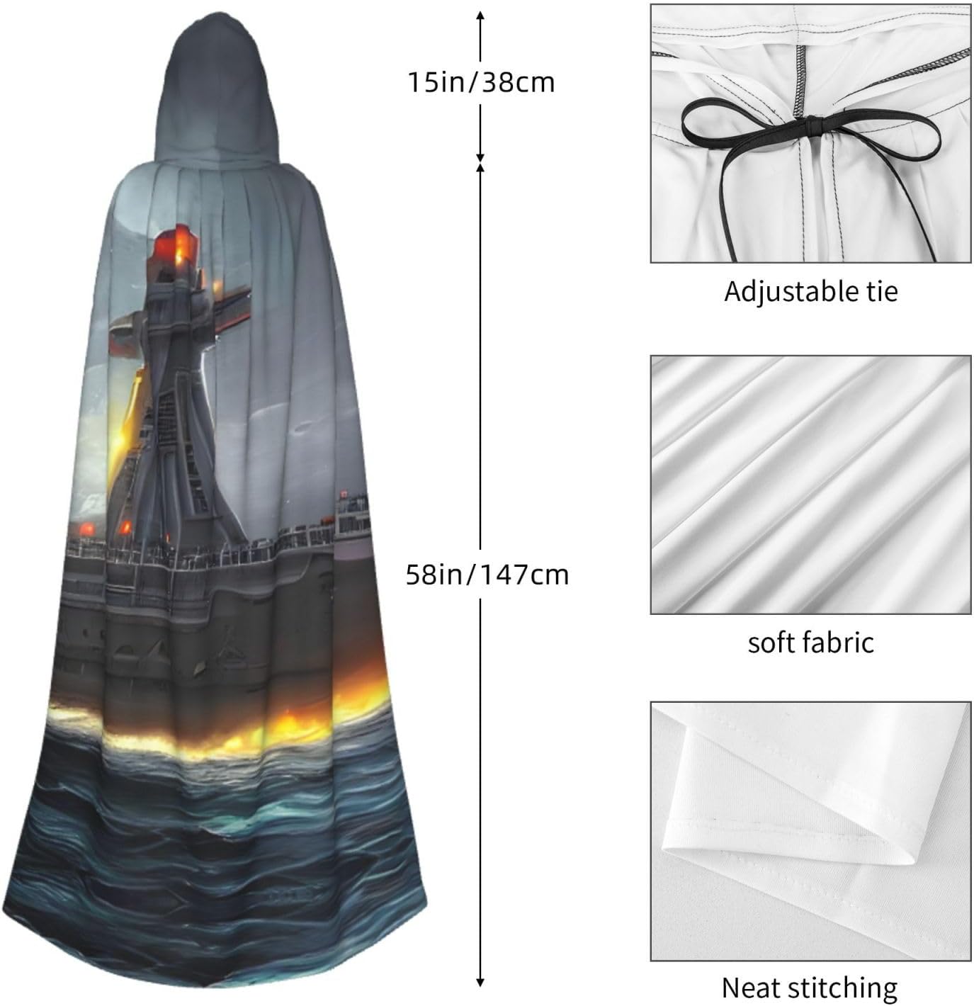 Entra nel mondo della fantasia e dell'avventura con il nostro elegante mantello da donna. Realizzato in fibra di poliestere di alta qualità, questo mantello offre una vestibilità leggera e confortevole, permettendoti di abbracciare i tuoi personaggi preferiti o personaggi per feste in costume, Halloween, fumetti e molto altro ancora. Dotato di un cappuccio oversize e una chiusura con cravatta, questo mantello non solo aggiunge un elemento di mistero, ma completa anche una vasta gamma di scelte di outfit La costruzione garantisce una lunga durata. Uso duraturo senza alcun fastidio o prurito. Che tu stia partecipando a una festa a tema, una danza o un evento cosplay, questo versatile mantello è sicuro di fare una dichiarazione. È perfetto per feste di Halloween, convegni di fumetti, spettacoli teatrali, feste in maschera e altre occasioni festive. Lascia che la tua creatività risplenda e immergiti nel mondo della fantasia. Pulire questo mantello è un gioco da ragazzi, Lavabile in lavatrice. Facile da pulire. Il suo design ti consente di godertelo per gli anni a venire, rendendolo una scelta affidabile ed elegante per tutte le tue esigenze di abbigliamento. Sperimenta l'incanto e il fascino del nostro elegante mantello da donna e diventa al centro dell'attenzione in ogni evento. Migliora il tuo gioco di costumi e crea ricordi indimenticabili con questo accessorio indispensabile. Abbraccia la tua immaginazione e intraprendi un viaggio straordinario oggi!