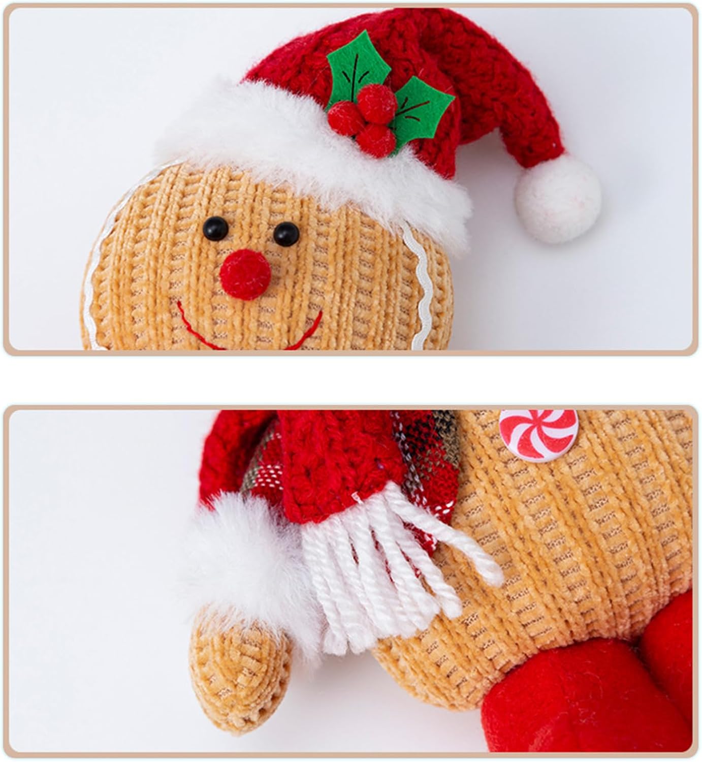 Uso a lungo termine: i nostri peluche sono realizzati in eccellente cotone PP, tessuto non tessuto e peluche, offrono una struttura solida per un divertimento duraturo. Realizzati con materiali di alta qualità, i giocattoli offrono prestazioni affidabili e durevoli per ore di divertimento Ciondolo natalizio: questo peluche di pan di zenzero è l'aggiunta perfetta al tuo arredamento natalizio. Le sue caratteristiche natalizie la rendono un'adorabile decorazione natalizia che aggiunge calore e gioia durante il Natale Ampia applicazione: raccogli le tue foto delle vacanze con i nostri peluche per Natale. Questi giocattoli versatili e carini sono perfetti come oggetti di scena per foto e accessori carini per feste a tema e offrono una varietà di usi per diffondere la gioia delle feste Regalo meraviglioso: un regalo meraviglioso per i tuoi amici, questi adorabili ornamenti per bambole aggiungono un tocco finale alle decorazioni natalizie con il tuo design Piacevole piacere di apparenza: questi morbidi e comodi giocattoli natalizi di pan di zenzero con design creativo e dettagli squisiti come un'idea carina e creativa. Sono un meraviglioso accessorio da coccolare natalizio, perfetto per tutte le età