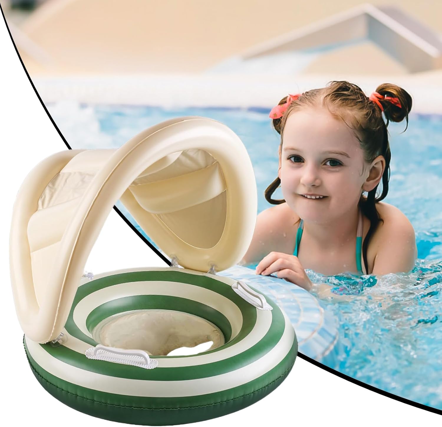 Materiali di alta qualità: realizzato in tessuti morbidi e vellutati, questo anello da nuoto per bambini con protezione solare offre superfici lisce per il massimo comfort e dimostra un'elevata resistenza durante il bagno e il nuoto grazie alla lavorazione finissima Protezione ottimizzata per l'angolo: tenda da sole regolabile senza problemi con posizionamento semplice per un'efficace protezione UV e un lungo comfort durante il bagno al sole Costruzione stabile del bambino: sedile ergonomico con design antiscivolo ben congegnato, l'impugnatura antiscivolo previene gli incidenti causati da movimenti improvvisi Lavorazione robusta: combina una struttura resistente con materiali eccellenti per proteggere il bambino durante i giochi d'acqua e offre un parasole sicuro per un maggiore comfort e ombra. Versatile: progettato per bambini da 1 a 4 anni, questo cerchietto da nuoto con tettuccio parasole permette un divertimento sicuro in acqua ed è un'opzione comunemente scelta per momenti di relax in famiglia nelle giornate estive in piscina o al mare