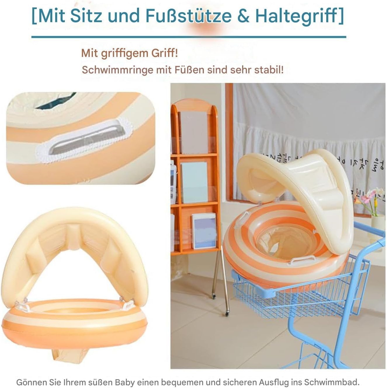 Superfici delicate: grazie alla lavorazione accurata con materiali delicati sulla pelle, l'aiuto per il nuoto garantisce punti di contatto morbidi e vellutati e texture antiscivolo per un divertimento sicuro in piscina Protezione UV rimovibile: parasole facilmente smontabile con angoli di regolazione flessibili per una protezione solare affidabile e una maggiore sicurezza del bambino in caso di esposizione al sole Sistema antiribaltamento: zona di seduta sicura con maggiore stabilità, include maniglie antiscivolo per evitare il ribaltamento accidentale per una maggiore sicurezza Lavorazione robusta: combina una struttura resistente con materiali eccellenti per proteggere il bambino durante i giochi d'acqua e offre un parasole sicuro per un maggiore comfort e ombra. Pratico multiuso: ideale per bambini da 1 a 4 anni, questo cerchietto da nuoto con tettuccio parasole soddisfa tutte le esigenze di divertimento in acqua ed è un accessorio molto utilizzato per allegre attività in famiglia in giardino o in vacanza al mare
