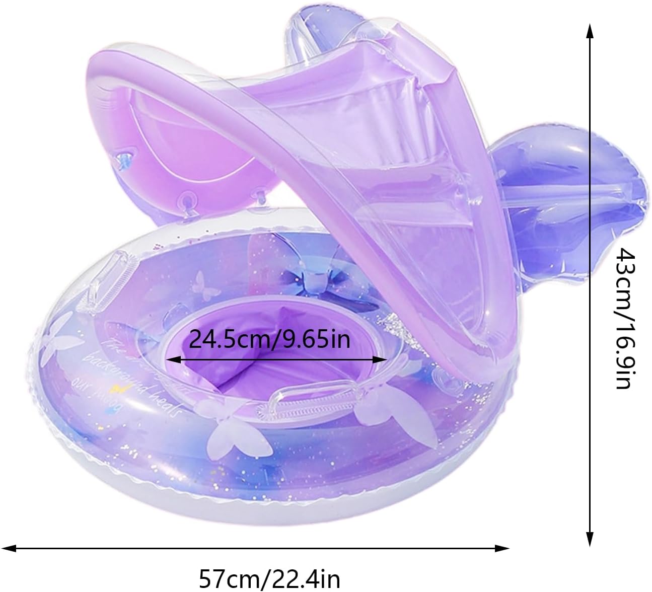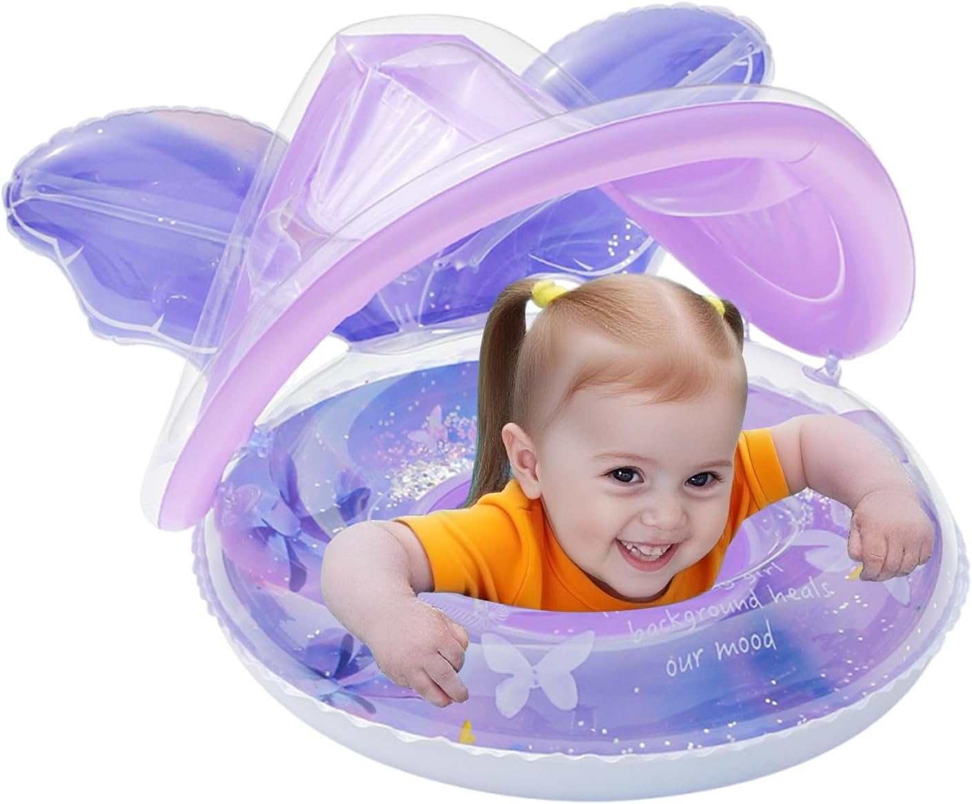 Sicurezza e adattamento: sedile a forma di croce con valvola di sicurezza salvaspazio che offre una presa regolabile per bambini da 6 mesi a 4 anni, si adatta perfettamente a qualsiasi fase di sviluppo in acqua. Veloce da usare: l'ausilio per bambini è compatto e viene fornito con una pratica borsa per il trasporto per riporlo facilmente. Le doppie camere d'aria garantiscono un gonfiaggio senza sforzo, permettendo al bambino di sguazzare rapidamente. Pratica protezione solare: il tetto UV facilmente rimovibile si adatta facilmente alle intemperie, protegge il bambino dalle radiazioni nocive durante il bagno con facilità di montaggio Seduta anatomica: anello da nuoto appositamente sagomato con seduta morbida imbottita, supporta la postura naturale e trasmette gioia all'acqua grazie ai brillanti motivi a farfalla con glitter Confortevole esperienza di nuoto: distribuzione uniforme della pressione di galleggiamento grazie alla stabilizzazione del sedile e alla valvola durevole per uno sbuffamento rilassato