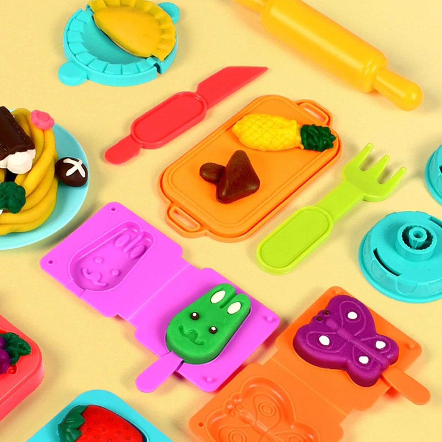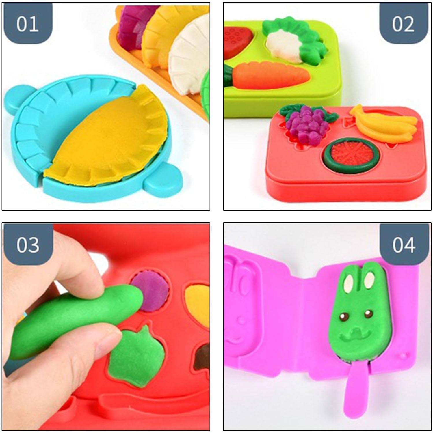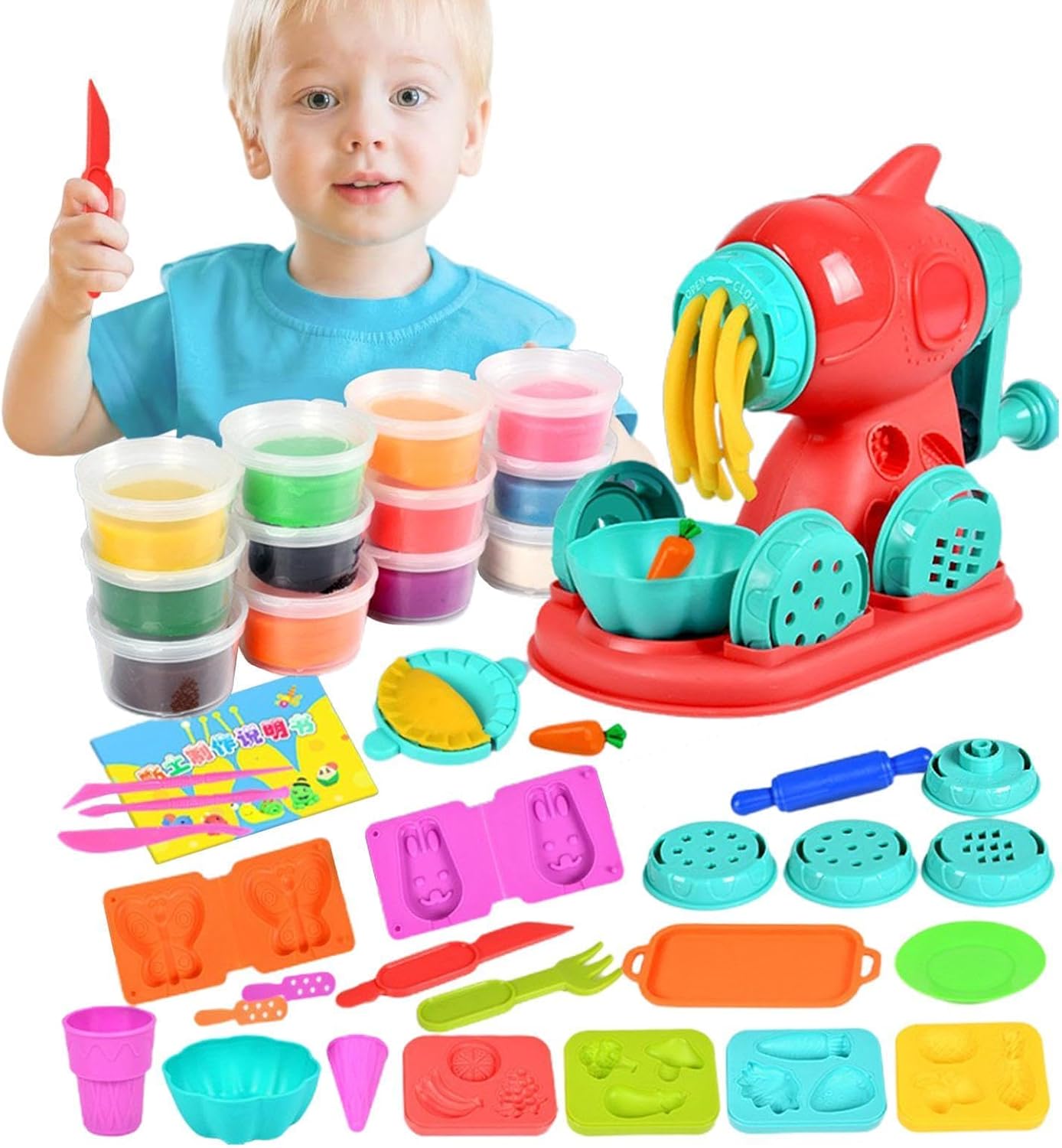 【Migliora la creazione】 Questo è un giocattolo educativo anche per i bambini. Scoprirai che le abilità dei bambini come la coordinazione occhio-mano, la creazione e l'abilità cognitiva sono state notevolmente coltivate con i kit Play Dough 【Simpatici stampi per argilla da colorare】 Viene fornito con una varietà di diversi strumenti per stampi, i bambini possono utilizzare il kit di strumenti per impastare per realizzare una varietà di cibi e creazioni in cucina 【Delicato sulla pelle e sicuro】 L'argilla colorata del set Playdough utilizza farina di frumento, sale commestibile, acqua purificata e colorante alimentare. Dopo la macinazione fine, il set Playdough è liscio e privo di sbavature 【Aumenta l'interazione genitore-figlio】 Il playset Color Dough offre molte opportunità per parlare con tuo figlio del cibo. Crea più genitore-figlio di qualità. 【Regalo di festa】 L'argilla da modellare può essere un regalo di compleanno, un regalo di Natale, un regalo del Ringraziamento o un favore per una festa. Un regalo perfetto per chi ama l'arte o la pittura