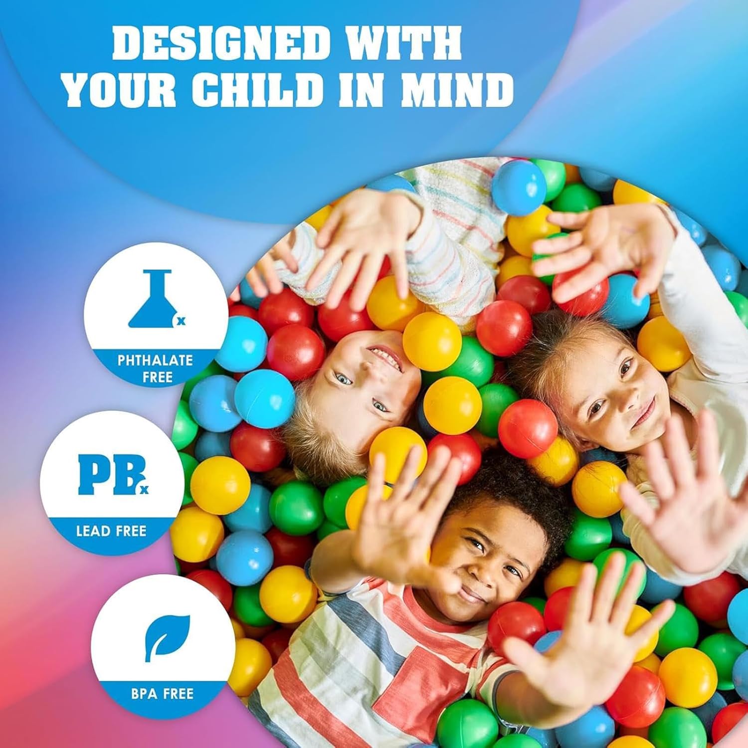 BUOST RICONOSCIMENTO DEL COLORE: le nostre palle da biliardo hanno vivaci che aiutano i bambini a sviluppare la loro capacità di riconoscimento del colore. Non c'è bisogno di preoccuparsi della schiacciamento, possono resistere a più di 90 libbre e avere un design ineumabile per ore di infinito piacere. Trasporto facilmente: conservare le palline con il sacco di stoccaggio riutilizzabile incluso quando non vengono utilizzati, garantendo che rimangano puliti e organizzati, il che rende il gioco più semplice. Robusto e affidabile: creati da un materiale PE resiliente, queste palle a sfera rimangono intatte anche in caso di uso intensivo. Sono morbidi, durevoli e offrono più piacere. Uso esteso: incoraggia l'immaginazione di tuo figlio con queste palline colorate, perfetta per trasformare piscine per bambini, parchi, da gioco, case gonfiabili e altro ancora. Pratiche da tenere: queste palle da biliardo promuovono un gioco fantasioso e una sensazione di avventura grazie al loro design facile e di dimensioni appropriate. I bambini di età compresa tra 12 e 5 anni possono godere di ore di piacere ed esplorazione insieme, rafforzando così il loro senso di creatività e immaginazione.
