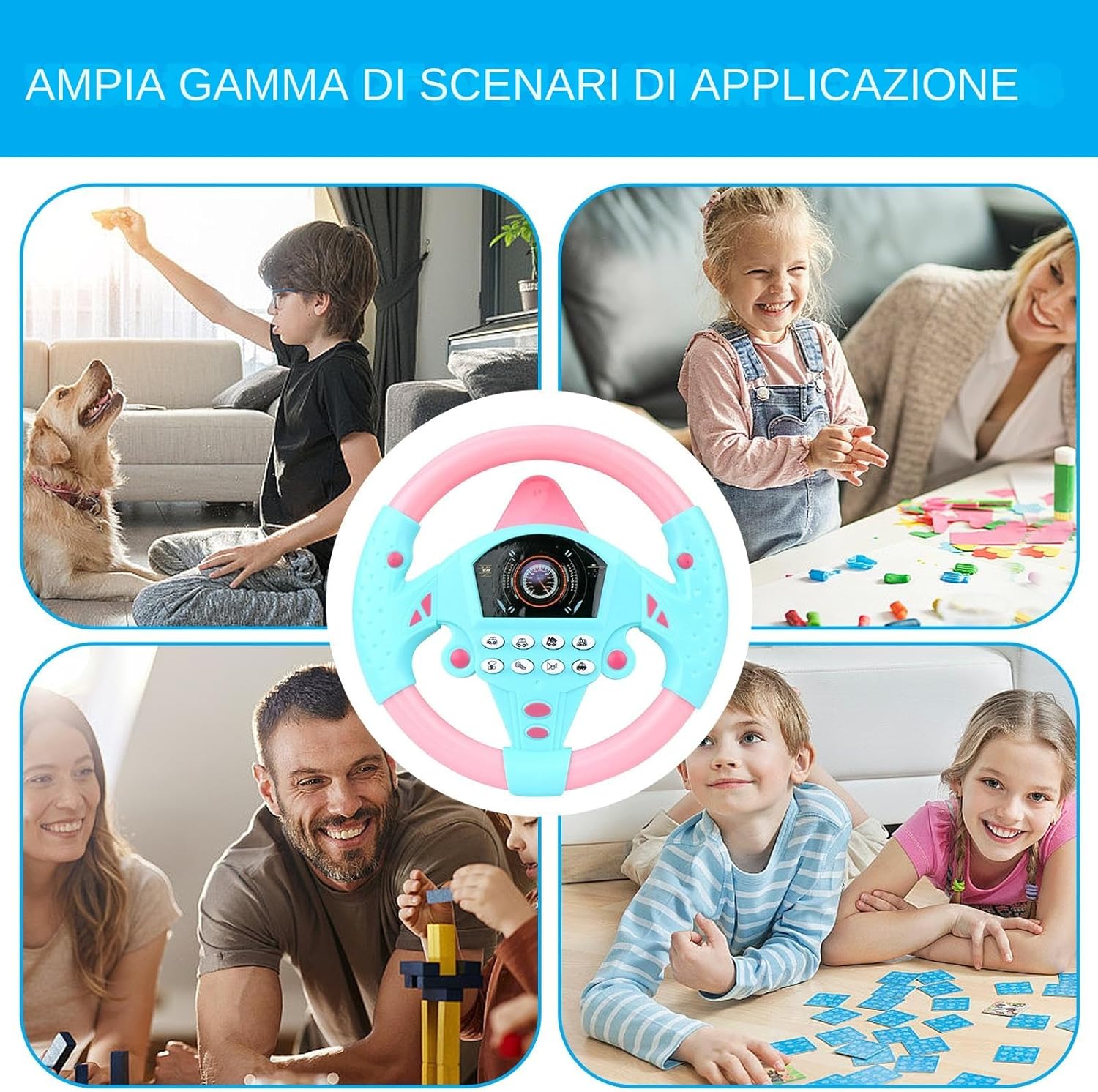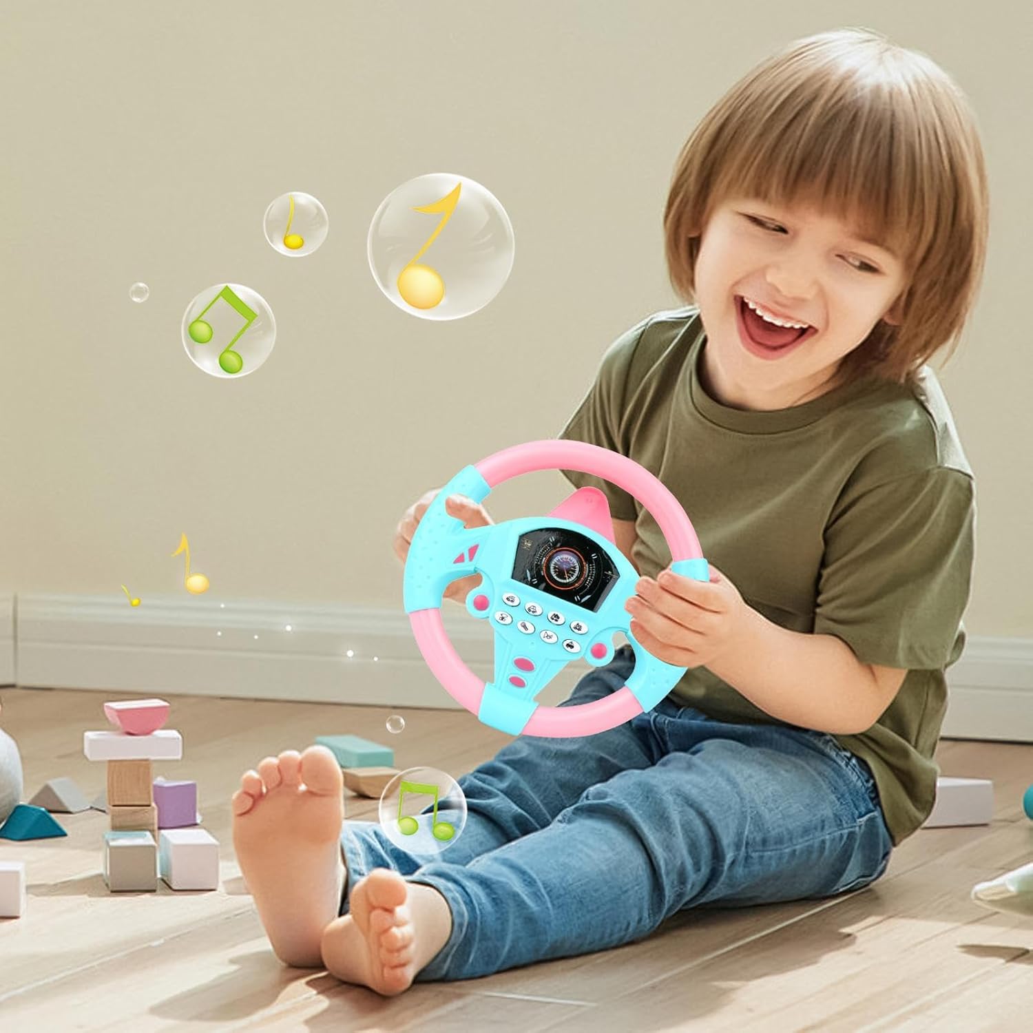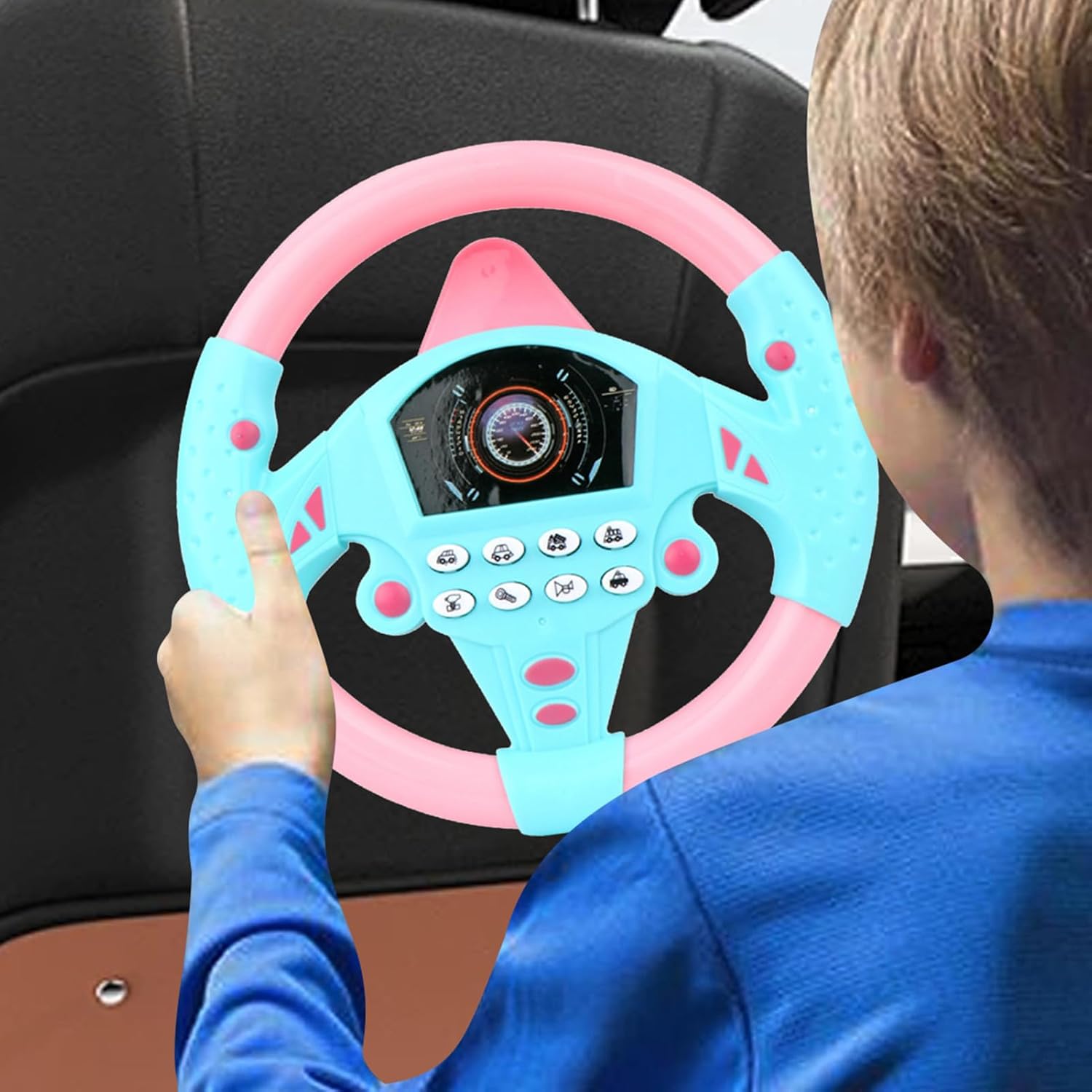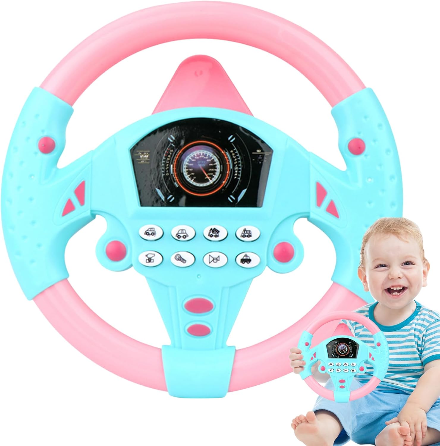 Giocattolo interattivo del volante: progettato per bambini e bambini piccoli, questo giocattolo simula una guida reale, fornendo ore di divertimento aiutando i bambini a imparare il coordinamento, le abilità motorie e il gioco fantasioso in modo sicuro e coinvolgente. Caratteristiche del suono ed educazione: dotato di effetti sonori realistici, il giocattolo del volante insegna ai bambini i rumori delle auto e i concetti di guida di base. Incoraggia l'apprendimento interattivo promuovendo l'istruzione precoce attraverso il gioco. Attacco della : la tappellatura inclusa consente un attacco sicuro ai seggiolini auto, ai tavoli o alle superfici lisce, garantendo stabilità durante il gioco. Questa funzione lo rende sicuro per l'uso a casa, nei veicoli o per l'intrattenimento di viaggio. Design portatile e leggero: compatto e facile da trasportare, questo giocattolo del volante falso è per compleanni, vacanze o viaggi. La sua costruzione durevole garantisce un divertimento di lunga durata e lo rende un ottimo regalo per bambini piccoli e bambini piccoli. Playtime sicuro e divertente: realizzato con materiali non tossici e adatti ai bambini, questo giocattolo è progettato pensando alla sicurezza. per giochi interattivi, feste di compleanno o regali per le vacanze, incoraggia la creatività, l'immaginazione e le capacità di apprendimento precoce.