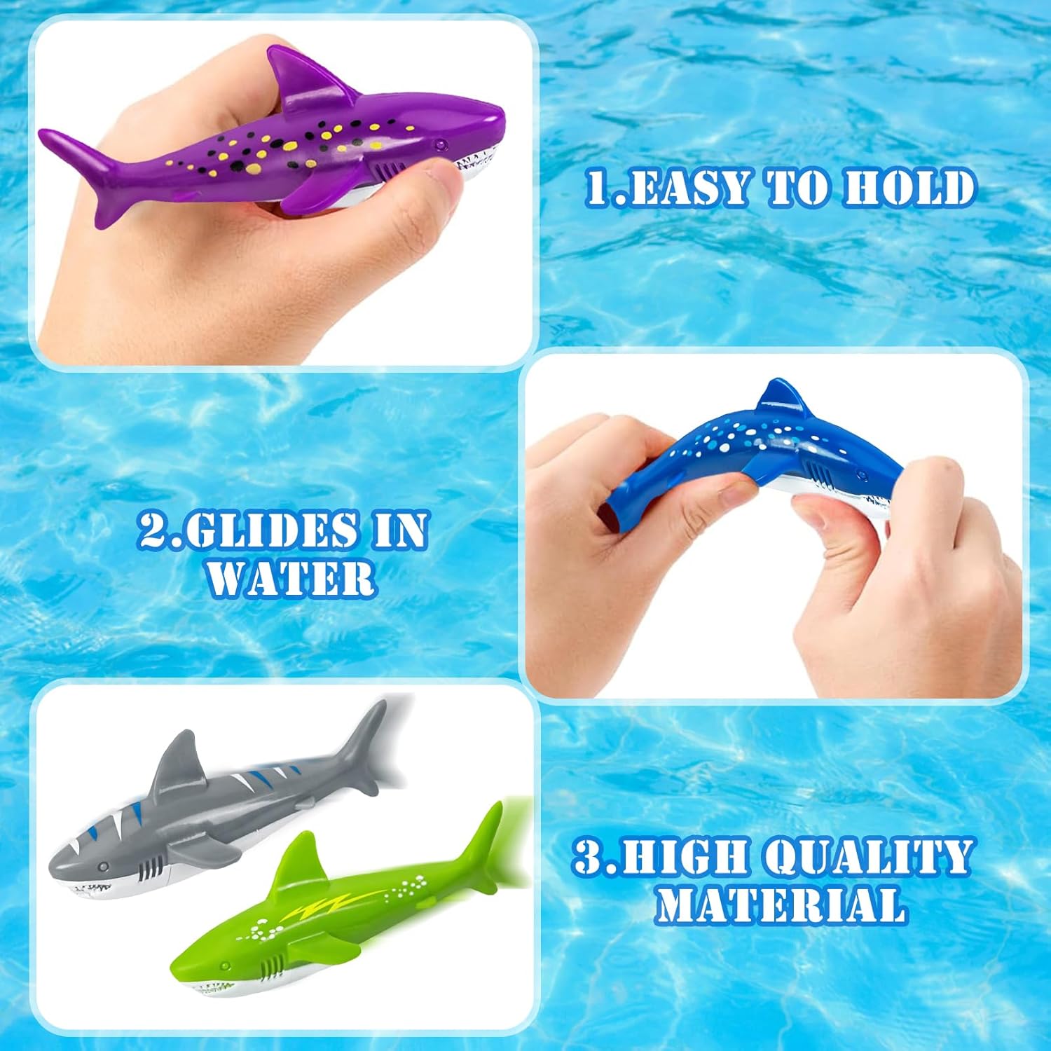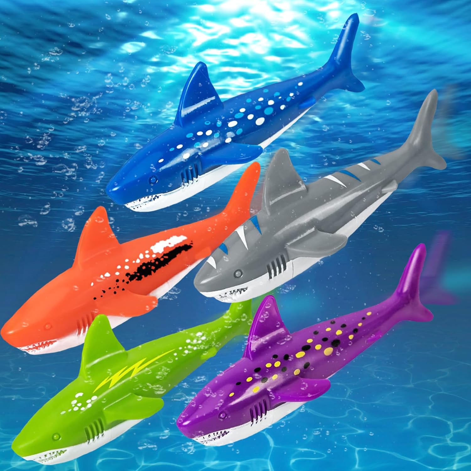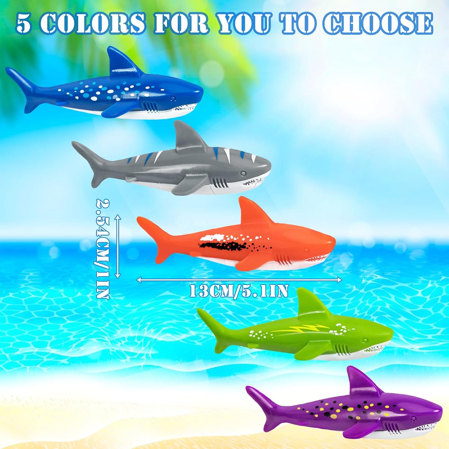 🦈【Giocattolo Subacqueo a Forma di Squalo】Riceverai 5 giocattolo subacqueo, progettati ispirandosi all'aspetto di uno squalo, con un corpo aerodinamico e dettagli squisiti, per un'esperienza di gioco coinvolgente. 🏊🏻♀️【Assistente per l'allenamento di Nuoto】Combina in modo intelligente l'allenamento di nuoto con il divertimento. I bambini possono esercitare in modo naturale la loro natura acquatica e migliorare le loro abilità natatorie mentre giocano, e migliorare inconsciamente le loro capacità atletiche mentre si divertono. 🙋🏻♂️【Colori Intensi】È lungo circa 13 cm/5,1 pollici e puoi scegliere tra 5 colori, tra cui blu, verde, arancione, grigio e viola. È adatto ai bambini dai 4 agli 8 anni e consente loro di divertirsi giocando in piscina. 🙋🏻♀️【Gameplay Interessante】Una competizione divertente per stimolare lo spirito competitivo dei bambini. Si possono organizzare vari giochi d'acqua, come gare di staffetta, cacce al tesoro, ecc. È un'ottima scelta per feste in piscina e per le interazioni tra genitori e figli. ✅【Materiale Sicuro】Realizzato con materiali di alta qualità, ha una velocità di lancio elevata, una presa comoda, resistenza alla deformazione e allo sbiadimento, può mantenere l'effetto d'uso a lungo e accompagnare i tuoi bambini per molte estati.