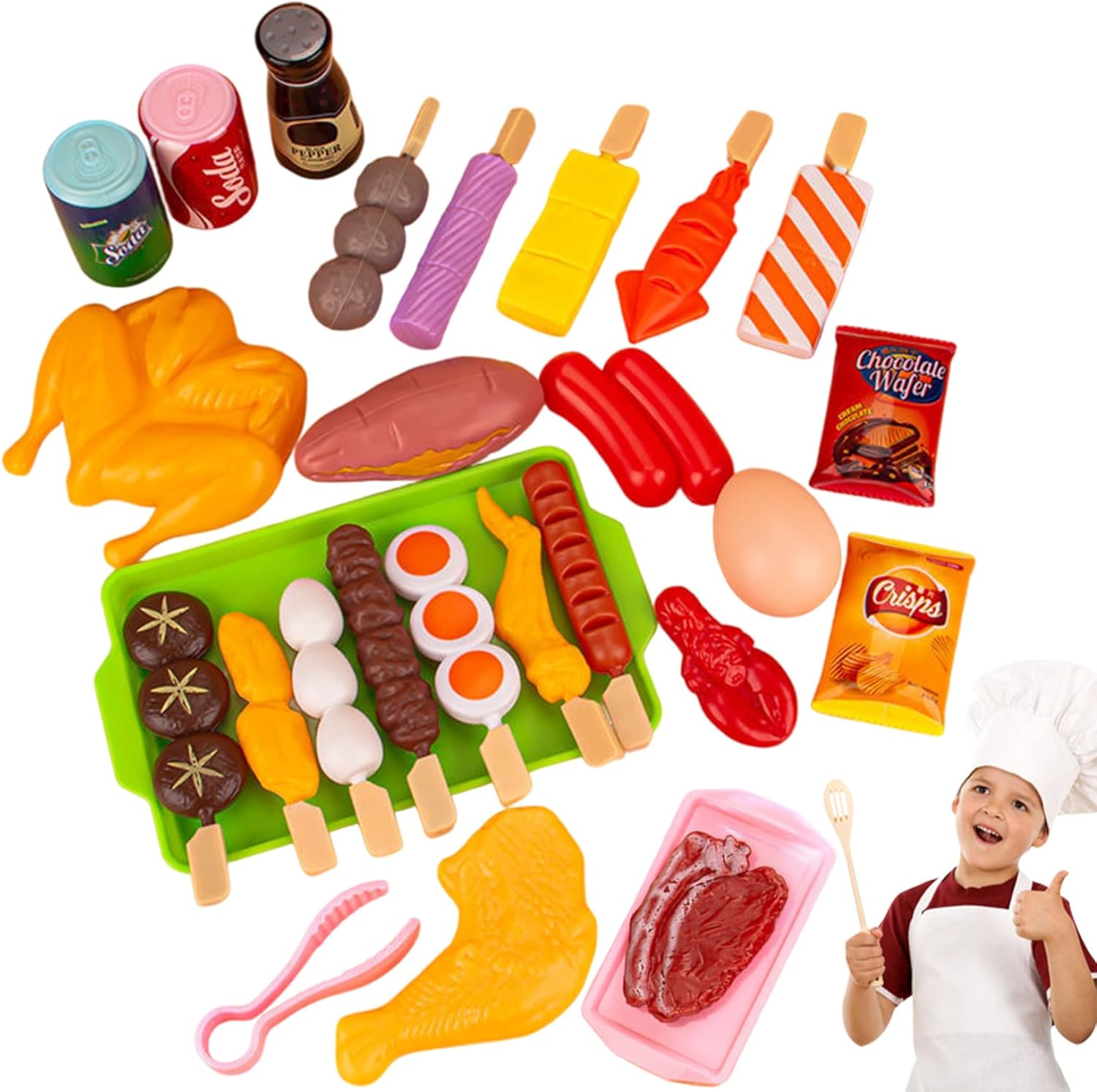 Idea perfetta: un compleanno o una vacanza per bambini, ragazzi e ragazze..È disponibile in una confezione divertente che si aggiunge all'eccitazione e incoraggia il gioco indipendente e di gruppo. Divertimento esterno e indoor: leggero e portatile, questo set di giocattoli per grill è perfetto per picnic, sabbiette, cortili o giochi al coperto di un giorno piovoso..Incoraggia l'immaginazione attiva, indipendentemente dall'impostazione. Giochi di ruolo educativo: promuove l'apprendimento precoce introducendo nomi di cibo, forme e gioco sociale..Ideale per migliorare il vocabolario, il coordinamento degli occhi a mano e l'interazione sociale attraverso la pretendenza della cucina. Sicuro e adatto ai bambini: realizzato in plastica senza BPA con bordi lisci e non piccole parti che pongono rischi di soffocamento..Dimensione perfettamente per piccole mani e sicuro per 3 anni. Realistico: include 27 cibi dettagliati e oggetti da cucina come spiedini, hot dog, pinze e salse..I colori vibranti e le trame realistiche offrono un'esperienza barbecue coinvolgente e pratica.