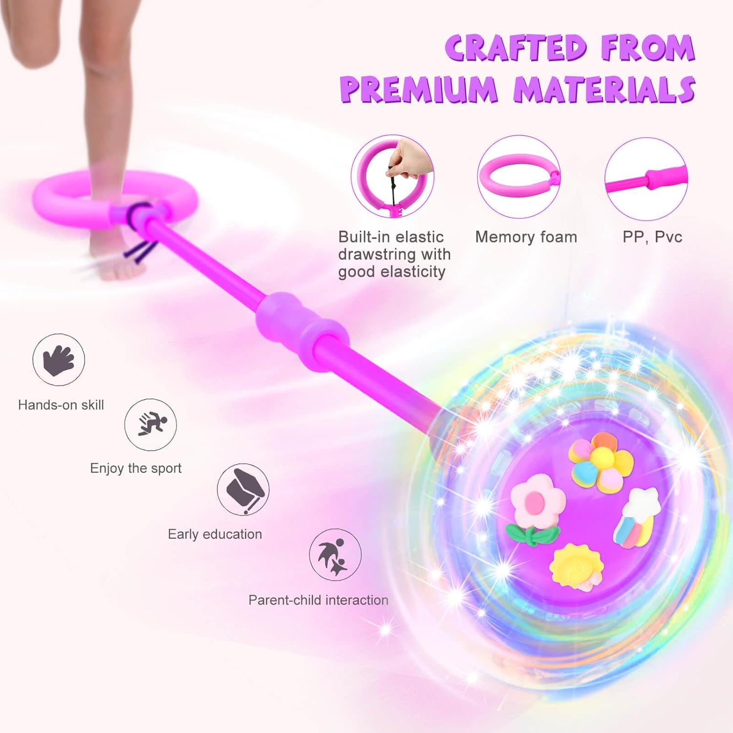 Divertimento creativo: lascia che i bambini realizzino il proprio giocattolo alla caviglia con una guida passo passo e 20 simpatici adesivi per esplorare la gioia creativa. È un'esperienza pratica che stimola la fiducia che promuove la creatività e l'indipendenza Magia LED abbagliante: il nostro salto è dotato di luci a LED alimentate da induzione elettromagnetica, creando un display vibrante mentre gira, senza bisogno di batterie. Rende il gioco divertente e aumenta l'attività fisica del tuo bambino Facile da giocare: il nostro giocattolo all'aperto per bambini 8-12 è pieghevole e facile da usare, adatto per divertirsi sempre e ovunque. Basta posizionare un piede nel passante della caviglia, calciare per spostare la palla e alternare i piedi di sollevamento per farla ruotare Durevole: goditi ore di divertimento con il nostro giocattolo premium, leggero e resistente per bambine di 8 anni. È progettato per resistere al gioco energico e fornire un divertimento duraturo, rendendolo una scelta affidabile per le avventure dei bambini Regalo per tutte le età: il nostro giocattolo Skip it è ideale per bambine di 6 anni, promuove un gioco senza schermo e uno stile di vita sano. Adatto per rimbalzare con amici e familiari o emozionanti gare in giardino. Dì addio ai gadget noiosi e dai il benvenuto al divertimento attivo