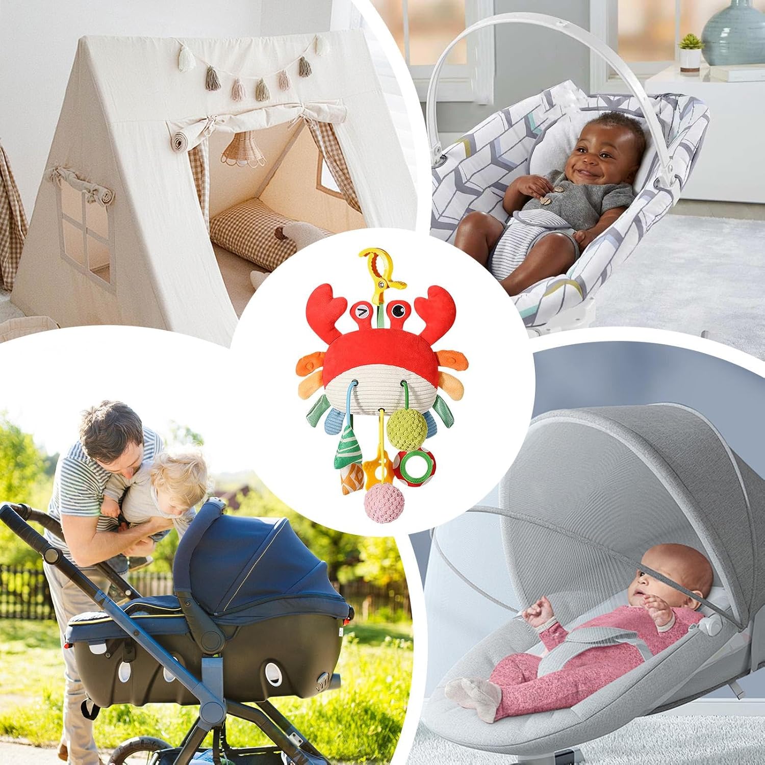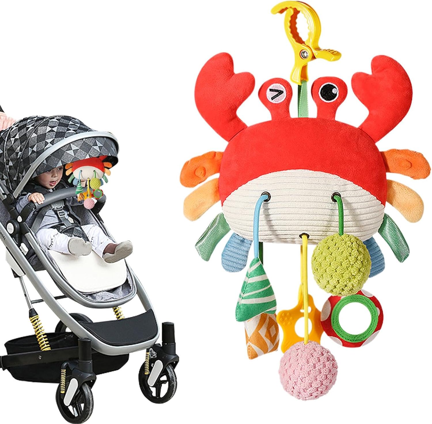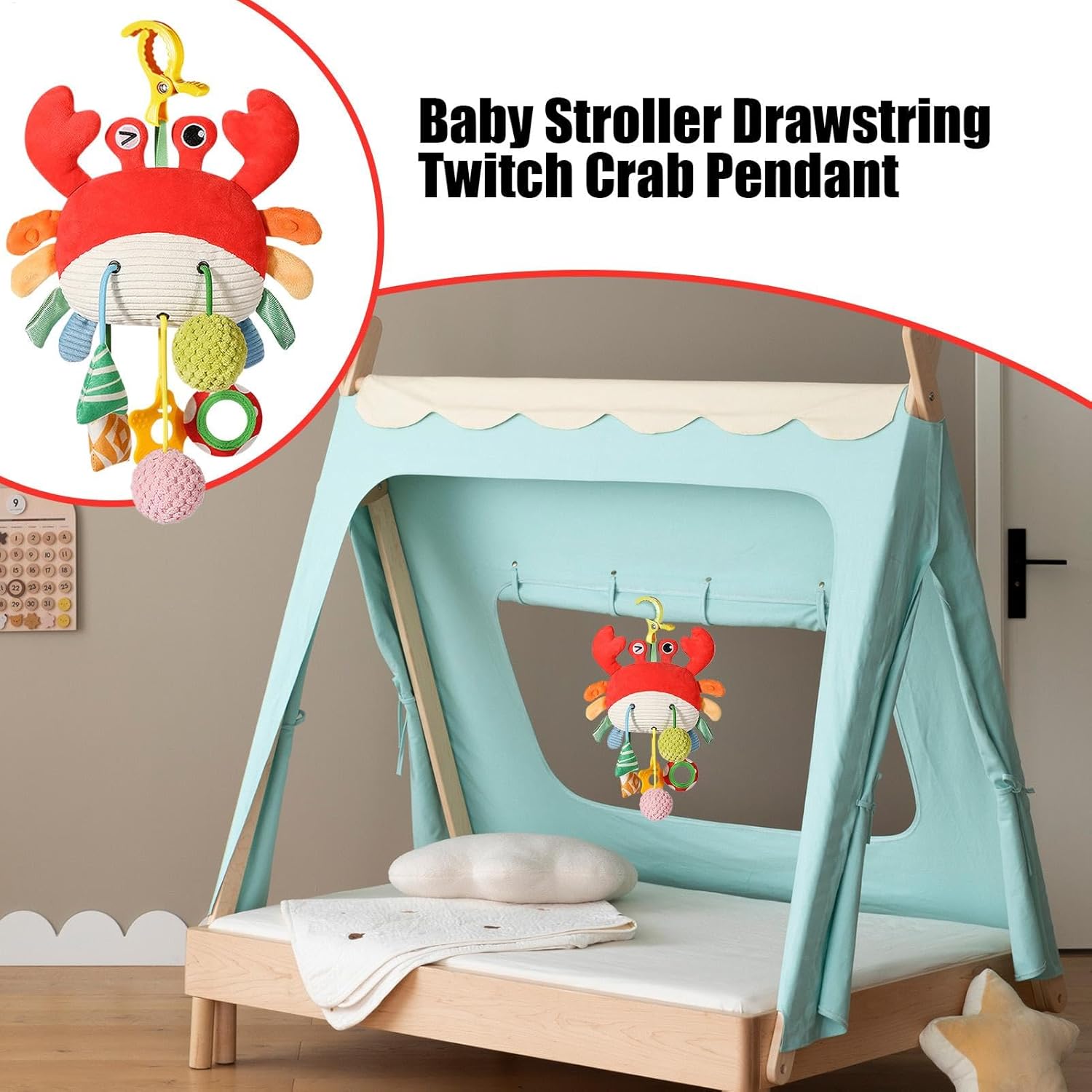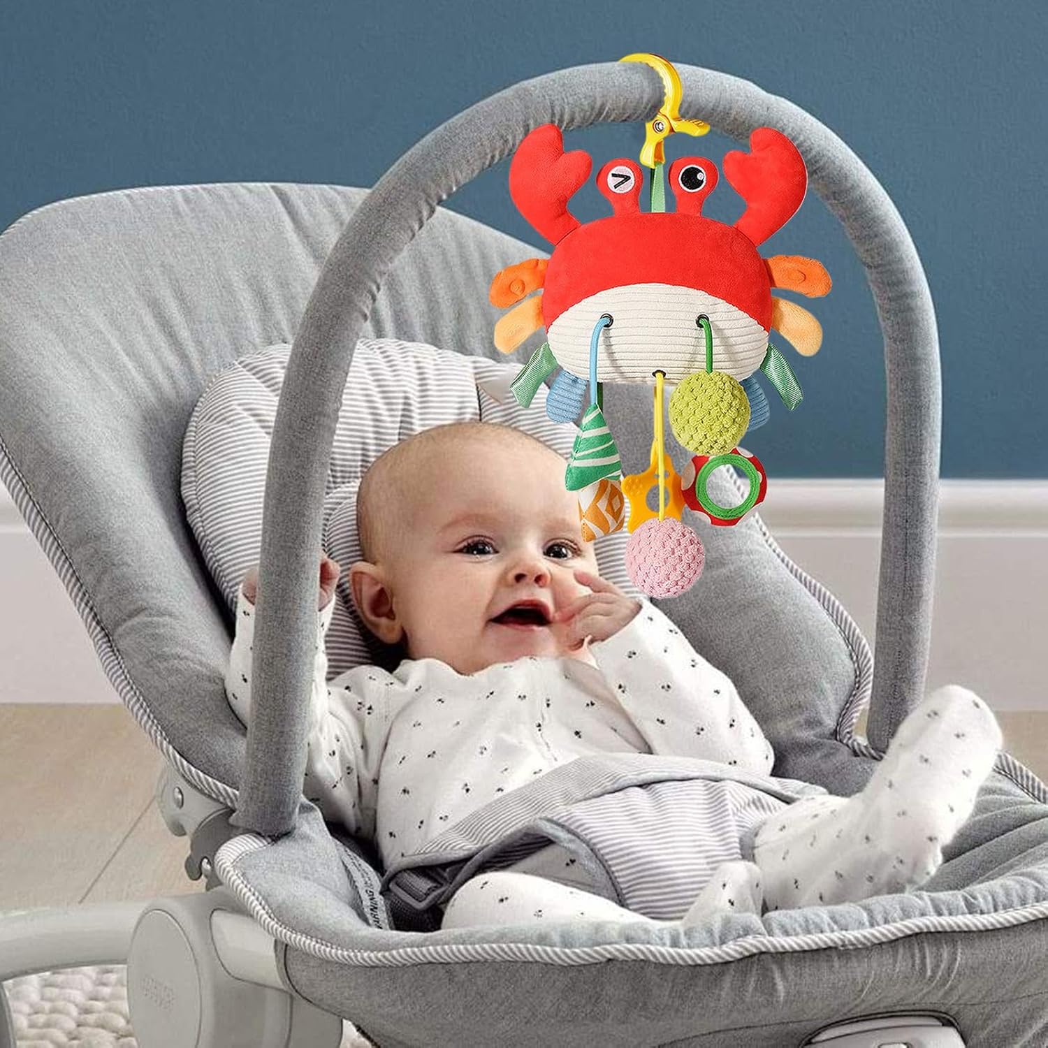 Sicuro per giocare: dipinto a mano con un vivace granchietto, il giocattolo a sonagli appendibile per culla è progettato con un bordo arrotondato sicuro e realizzato con materiali morbidi e sicuri, garantendo la completa sicurezza che il tuo bambino possa toccare e giocare. Questo vivace compagno intratterrà il tuo bambino per ore Caratteristici giocattoli per bambini: i motivi colorati sul guscio del granchio rendono questo giocattolo a sonagli appendibile un accattivante piacere visivo per i bambini. Guarda come il tuo bambino rimane affascinato dal design divertente, perfetto per stimolare i suoi sensi e intrattenerlo Caratteristiche uniche: design speciale che collega il corpo del granchio ai morbidi pompon sottostanti, promuovendo efficacemente lo sviluppo uditivo con speciale design con cordoncino per esercitare la coordinazione occhio-mano Per essere creativi: con un simpatico design a forma di granchio, questo giocattolo a sonagli appendibile per culla è un compagno di esplorazione perfetto per i tuoi bambini. Quando il bambino si sveglia, stimola il suo desiderio di esplorare, calmando le emozioni e riducendo il pianto, aiutandolo ad addormentarsi più velocemente Ampia gamma di applicazioni: con i giocattoli a sonagli appesi per culla, puoi migliorare l'ambiente dei tuoi bambini. Puoi installarli facilmente come pendenti per passeggino, appenderli sopra la culla come un simpatico campanello da letto o semplicemente disporli vuoi nella zona giorno del tuo bambino
