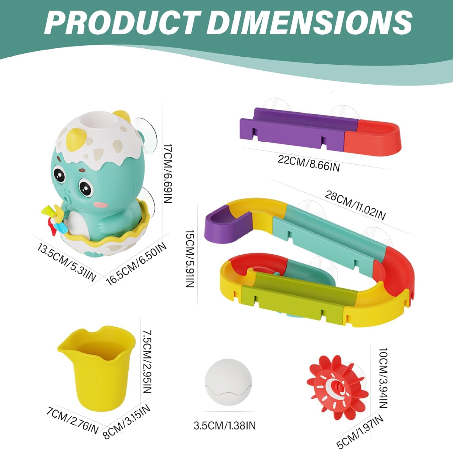 Esperienza di gioco educativa: progettati per promuovere l'apprendimento attraverso il gioco, questi giocattoli da bagno aiutano a sviluppare le capacità motorie mentre i più piccoli manipolano la pista e le palline..Imparano a conoscere causa ed effetto vedendo le palline scivolare lungo la pista, rendendo il momento del bagnetto divertente ed educativo. Perfetto per i bambini piccoli: con il loro design accattivante e le funzionalità interattive, questi giocattoli da bagno con dinosauri sono ideali per compleanni, vacanze o qualsiasi occasione..Sono un modo creativo e divertente per rendere il momento del bagnetto la parte preferita della giornata per i bambini! Pista interattiva fai-da-te: questo set di giocattoli da bagno include una pista fai-da-te e palline, che consentono ai bambini di costruire il loro scivolo acquatico e guardare le palline rotolare giù..Questa funzionalità interattiva incoraggia la creatività e la capacità di risoluzione dei problemi, trasformando il momento del bagno in un'esperienza coinvolgente. Divertente design a dinosauro: i nostri simpatici giocattoli da bagno con dinosauri con scivolo acquatico presentano un design adorabile che catturerà l'immaginazione del tuo bambino..I colori vivaci e le forme giocose rendono il momento del bagnetto emozionante e divertente per neonati e bambini dai 3 ai 6 anni. Materiali affidabili e sicuri: realizzati con materiali plastici, questi giocattoli per il bagnetto sono sicuri per i tuoi piccoli..Sono progettati per resistere ai giochi d'acqua garantendo allo stesso tempo un divertimento senza preoccupazioni, così i genitori possono rilassarsi mentre i loro bambini esplorano.