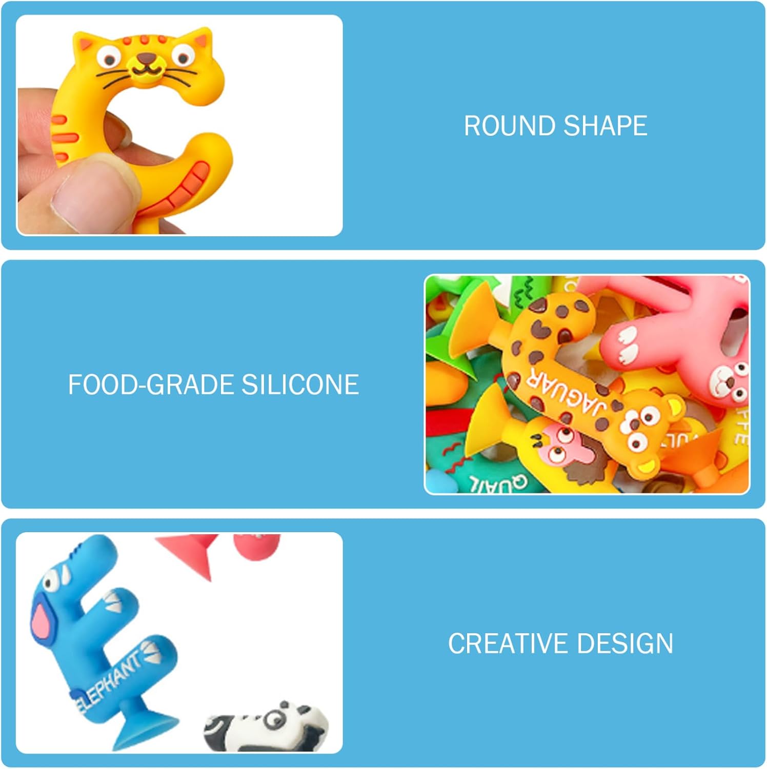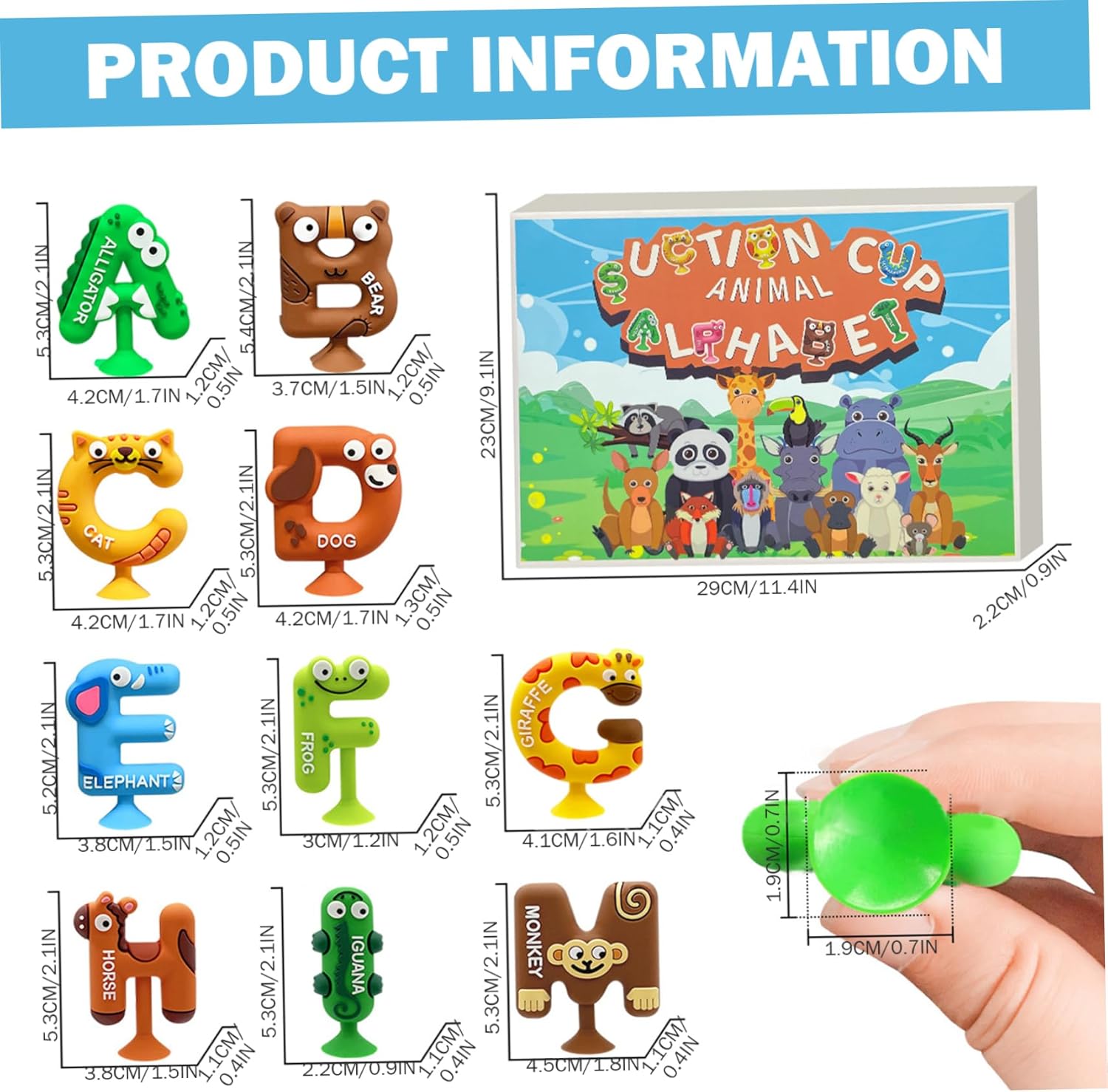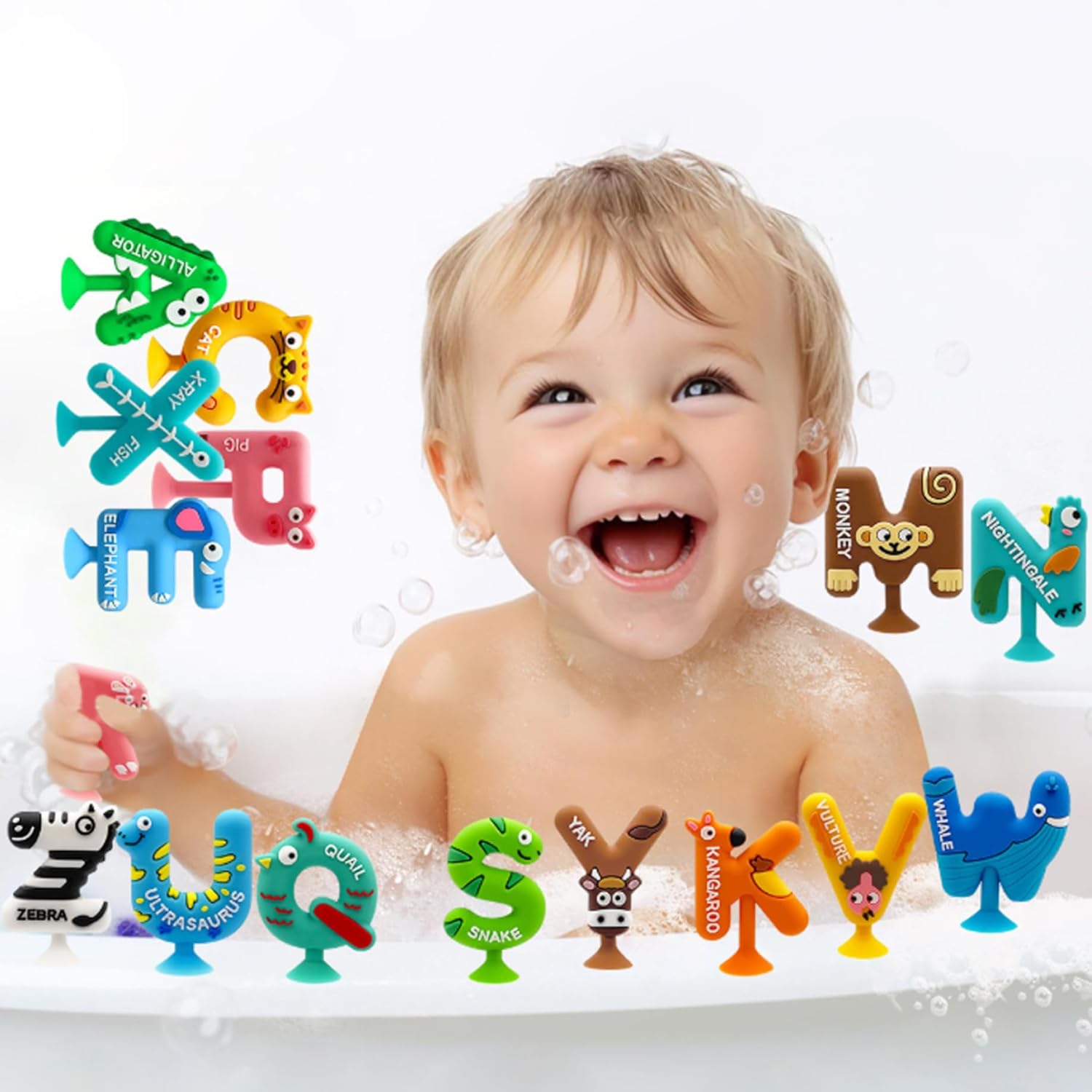 Design ispirato a Montessori: incorporando i principi educativi di Montessori, questi giocattoli supportano le capacità motorie, lo sviluppo cognitivo e l'apprendimento sensoriale attraverso l'interazione pratica con lettere e animali. Divertimento di apprendimento coinvolgente: questi giocattoli da bagno di aspirazione 26 pezzi combinano disegni di animali colorati con lettere di alfabeto, incoraggiando i bambini a imparare l'ortografia e il riconoscimento delle lettere durante il tempo del bagno, rendendo l'istruzione piacevole e interattiva. Materiali sicuri e stabili: realizzati in plastica non tossica e sicura per bambini, questi giocattoli da bagno sono progettati per resistere al gioco idrico senza sbiadire o rompere, garantendo ore di divertimento sicuro e senza preoccupazioni. Forti tappeti di aspirazione: ogni giocattolo dispone di una tanta di aspirazione affidabile che si attacca saldamente a superfici lisce come pareti della vasca o piastrelle, promuovendo il gioco indipendente e migliorando lo sviluppo sensoriale. Perfect Toddler: ideale per neonati e bambini piccoli, questo set vibrante funge da riflessivo che fonde il tempo di gioco con l'apprendimento, stimolando la curiosità e sostenere lo sviluppo della prima infanzia in un divertente ambiente da bagno.