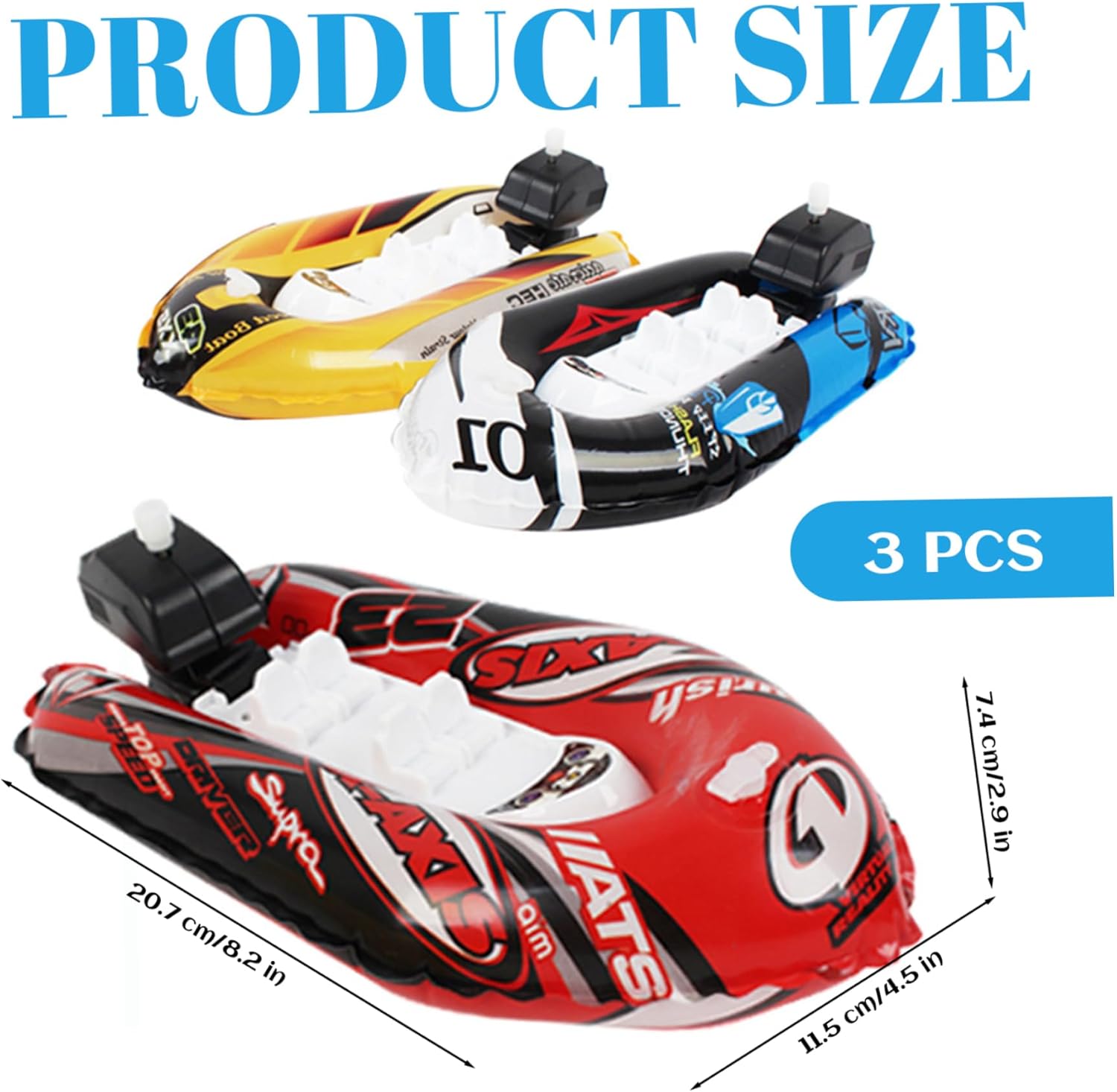 Divertente azione galleggiante: queste barchette da bagno a molla galleggiano, girano e muovono nell'acqua, offrendo ai bambini ore di divertimento..Perfetto per incoraggiare lo sviluppo delle capacità motorie e la coordinazione occhio-mano durante il bagno, il gioco in piscina o il divertimento in spiaggia. Design luminosi e accattivanti: le barche sono dai colori vivaci e presentano design divertenti e adatti ai bambini che catturano l'attenzione dei più piccoli..Il loro aspetto vivace intratterrà sicuramente i più piccoli promuovendo allo stesso tempo lo sviluppo sensoriale. Sicuri e adatti ai bambini: realizzati in plastica priva di BPA, questi giocattoli da bagno sono progettati pensando alla sicurezza del tuo bambino..I materiali atossici garantiscono un gioco senza preoccupazioni, consentendo ai genitori di rilassarsi mentre i bambini godono il bagno o il tempo in piscina. Uso versatile: queste mini barche da bagno gonfiabili sono perfette per qualsiasi ambiente acquatico, sia nella vasca da bagno, in piscina o in spiaggia..La loro funzione di ricarica mantiene i bambini impegnati e incoraggia i giochi acquatici fantasiosi. Perfetto per i più piccoli: che sia per compleanni, vacanze o semplicemente perché, questa confezione da 3 barchette giocattolo da bagno è perfetta per i bambini dai 2 ai 4 anni..Divertente, educativo e sicuro: la combinazione perfetta per i bambini!