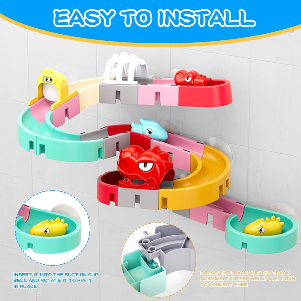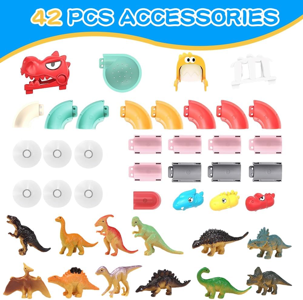 【Divertimento nella vasca da bagno】Questo giocattoli da bagno per bambini contiene un totale di 42 pezzi, inclusi 30 binari di collegamento, 12 giocattoli a forma di dinosauro e una custodia. Puoi progettare i binari come preferisci: con molte curve o dritti, in alto o in basso, a sinistra o a destra. Il giocattolo da bagno ideale per esploratori curiosi dai 3 ai 6 anni. 【Sicurezza e qualità】Tutti i componenti sono realizzati in plastica di alta qualità, atossica, senza BPA, con bordi lisci che non danneggiano le mani dei bambini. Il design aperto non è solo più igienico dei sistemi a tubo chiuso, ma anche super facile da pulire: addio alla muffa. 【Design a ventosa】Design a ventosa migliorato per una presa salda su superfici lisce come vasche da bagno, piastrelle, specchi, ecc. Consiglio: per una presa ottimale, assicurarsi sempre che le superfici siano pulite e piane. Può essere combinato liberamente e utilizzato in luoghi diversi. Come bagni, balconi, frigoriferi, cucine, ecc. 【Giochi educativi per il bagno】Il nostro giocattoli da bagno per bambini è facile da montare e smontare, consentendo ai bambini di usare la propria iniziativa per costruire diverse forme di binari a loro scelta. Il design a forma di parete aiuta i bambini a concentrarsi. 【Il regalo perfetto】Questo giocattoli da bagno per bambini da 1 anno in su è l'aiutante perfetto per il bagnetto dei bambini. Il giocattolo da bagno è disponibile in una graziosa scatola ed è un regalo ideale per feste dei bambini, compleanni, baby shower, Natale, ecc.