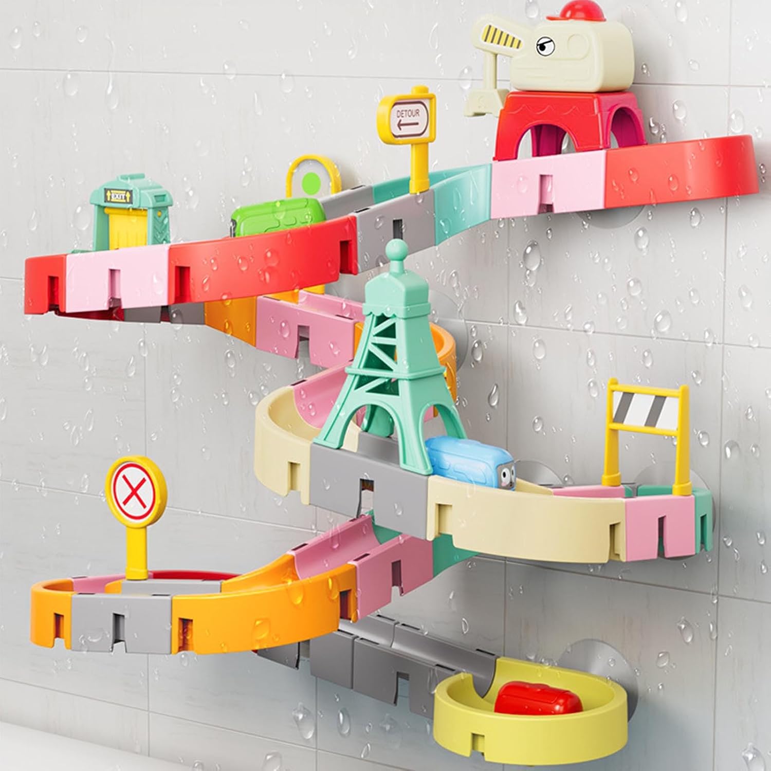 [Tema del veicolo da costruzione] Accendi l'immaginazione di tuo figlio con il veicolo da costruzione incluso che viaggia sui binari. i bambini possono giocare come costruttori mentre imparano i trasporti e il pensiero spaziale. questa giocosa sessione in acqua unisce divertimento e valore educativo, rendendo il momento del bagno piacevole e arricchente. [Ventose sicure per stabilità] Dotato di potenti ventose, questo set di giocattoli con scivolo da bagno si attacca saldamente a vasche da bagno o piastrelle, garantendo stabilità durante il gioco. il semplice processo di installazione e rimozione lo rende comodo per i genitori, fornendo allo stesso tempo un assorbimento sicuro su superfici lucide per il divertimento. [Divertimento interattivo per tutta la famiglia] Genitori e bambini possono legare mentre assemblano piste, auto da corsa ed esplorano insieme i principi. questo giocattolo favorisce le capacità di osservazione e la curiosità scientifica, rendendolo un ottimo modo per combinare l'apprendimento con il gioco durante il bagnetto. [Set di giocattoli con scivolo acquatico 3 in 1] Trasforma il momento del bagno in un'avventura emozionante con questo set di giocattoli interattivi dotato di scivolo acquatico, pista scorrevole e pad rotante. il movimento automatico alimentato dall'acqua crea percorsi scorrevoli dinamici che tengono impegnati e divertiti i bambini. [Materiali sicuri e durevoli] Realizzato in plastica ABS di alta qualità, questo set di giocattoli con scivolo da bagno non ha angoli o bordi, rendendolo delicato sulla pelle del tuo bambino. soddisfa gli standard di sicurezza internazionali, garantendo un'esperienza di gioco in acqua e divertente anche per i bambini in fase di dentizione.