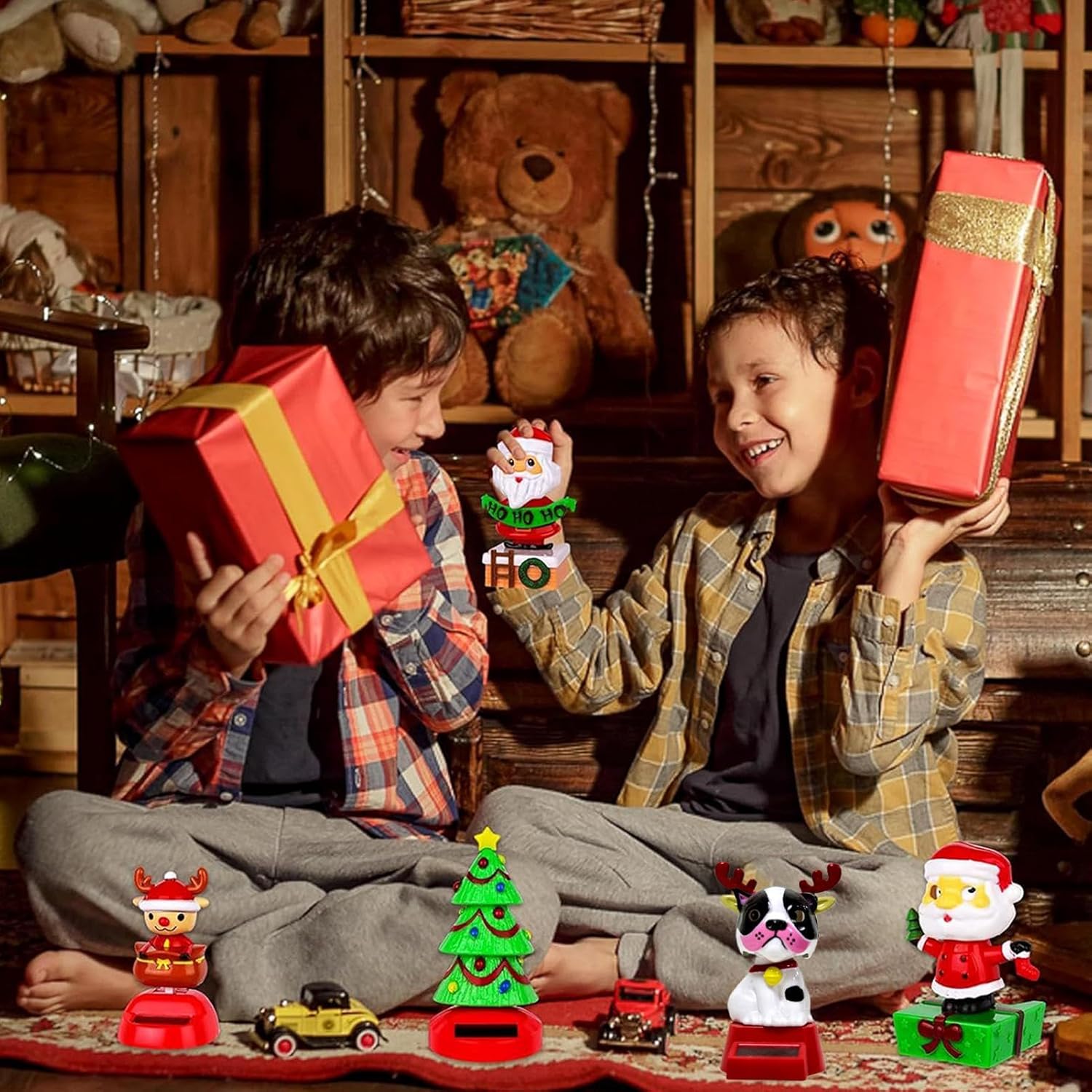 Adesione sicura: il giocattolo da ballo natalizio sul cruscotto è progettato con una base ponderata di precisione che garantisce una presa salda sulle scrivanie e una regolazione perfetta alle aree curve. Ciò garantisce un posizionamento stabile e crea movimenti allegri compatibili in vari scenari durante le vacanze, come veicoli, uffici o spazi abitativi. Magia natalizia duratura: dotati di un rivestimento protettivo durevole, questi giocattoli ad energia solare resistono allo sbiadimento e all'usura e mantengono i loro colori vivaci e l'aspetto accattivante per tutta la stagione delle vacanze. Garantiscono decorazioni affascinanti su prati o vialetti per molti inverni e forniscono gioia festosa duratura nelle tue decorazioni natalizie all'aperto. La magia festosa duratura lo rende un investimento utile per alleviare lo stress ritmico: questa figura di danza natalizia alimentata a energia solare offre un delicato movimento oscillante che allevia ritmicamente lo stress e ha un effetto calmante durante le pause di lavoro. Riduce l'affaticamento degli occhi, solleva istantaneamente l'umore e migliora l'esperienza della vacanza attraverso esercizi rilassanti e intrattenimento gioioso per portare più allegria natalizia in qualsiasi casa o ufficio. ATTIVAZIONE DELLA LUCE ECOLOGICA: queste figure natalizie di danza solare sono dotate di una tecnologia avanzata di sensori di luce che consente l'attivazione automatica alla luce del giorno. Offrono un'esperienza dinamica e sostenibile, riducono efficacemente i costi energetici e sono ideali per giardini o terrazze come decorazione festiva rispettosa dell'ambiente. Le figure funzionano in modo completamente autonomo, garantiscono movimenti di danza gioiosi e promuovono così un periodo natalizio verde senza intervento manuale. Regalo perfetto: i giocattoli danzanti natalizi ad energia solare incantano con le loro diverse impressioni visive e interazioni giocose. Fungono da regali straordinari che portano sorrisi e rafforzano i legami durante le riunioni di famiglia o gli eventi della comunità. Ideale per le occasioni festive e come regalo di Natale che impressiona con l'azione danzante e le prestazioni a energia solare.