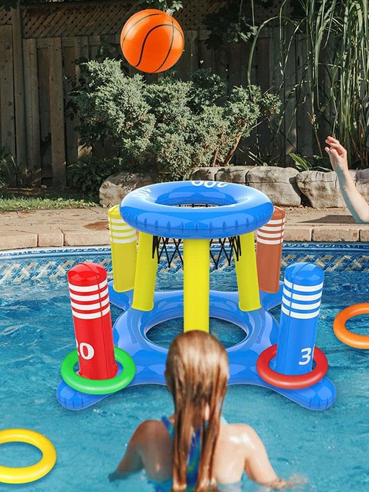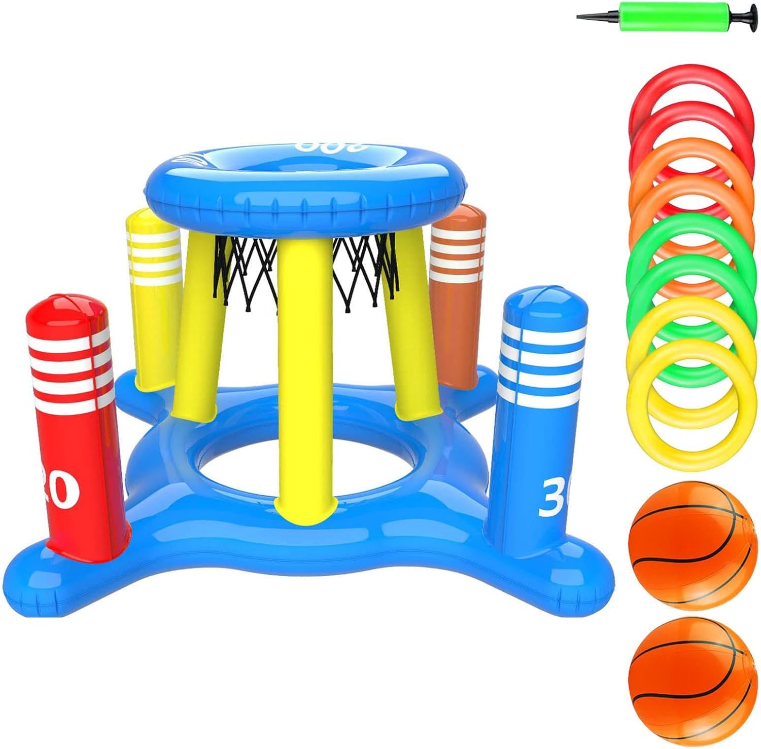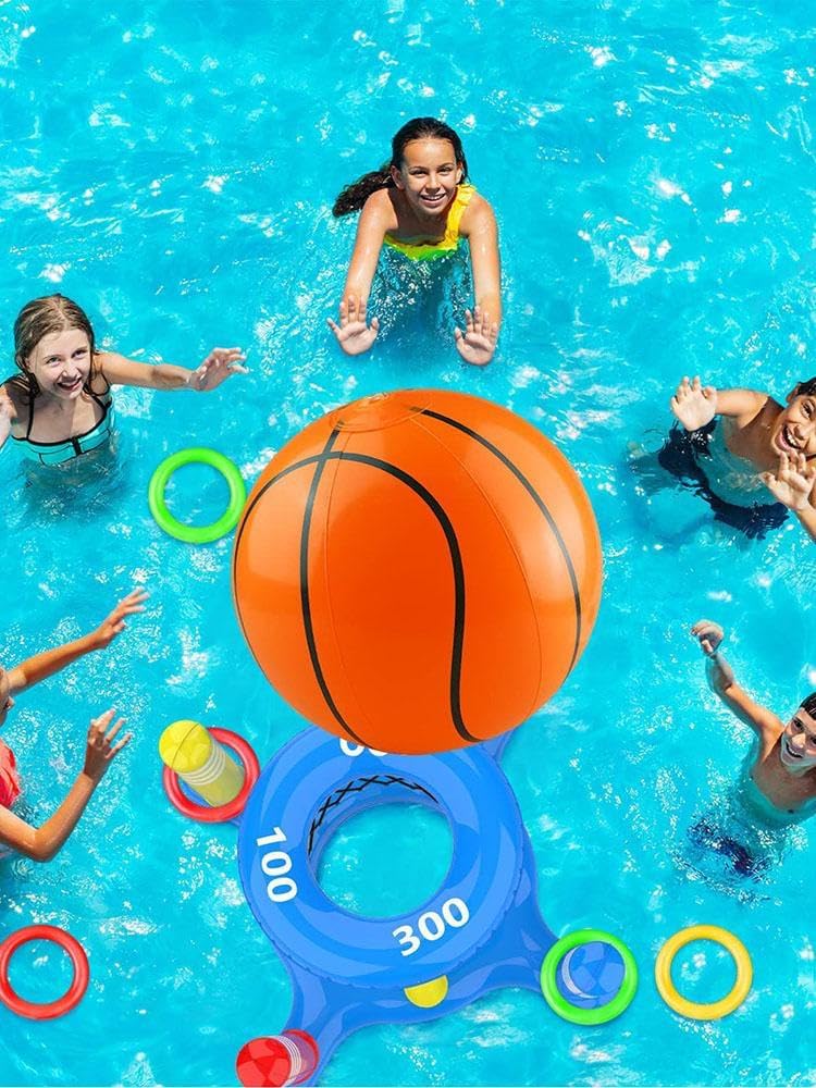☒ Materiale in PVC resistente: questo canestro da basket da piscina è realizzato in resistente materiale in PVC che lo protegge da danni e perdite. Puoi divertirti giocando a basket in acqua per molto tempo. ☒Facile da trasportare: questo canestro da basket da piscina è l'aggiunta perfetta alla tua festa in piscina. È facile da trasportare e si gonfia in pochi minuti. Gonfia e sgonfia quanto ti serve e goditi il divertimento. È l'ultimo accessorio per la piscina. ☒ Fantastico set da piscina: con 2 palloni da basket gonfiabili, 1 giocattolo per il lancio del cerchio incrociato, 1 canestro da basket gonfiabile e 8 cerchi gonfiabili, puoi giocare a diversi giochi d'acqua e divertirti con il tuo lo ☒ Entra in un ampio utilizzo: questo canestro da basket da piscina aggiunge più divertimento e varietà ai tuoi giochi in spiaggia o attività all'aperto come feste in piscina. Puoi usarlo per varie occasioni come feste di compleanno, feste in spiaggia o giochi in giardino. È adatto anche a tutte le età e livelli di abilità, quindi tutti possono divertirsi. ☒ Set di giocattoli da biliardo multifunzione: questo canestro da basket da piscina ti consente di divertirti con i giochi di pallacanestro e di lancio del cerchio nell'acqua. Ha un aspetto e colorato che lo rende più attraente per i bambini e