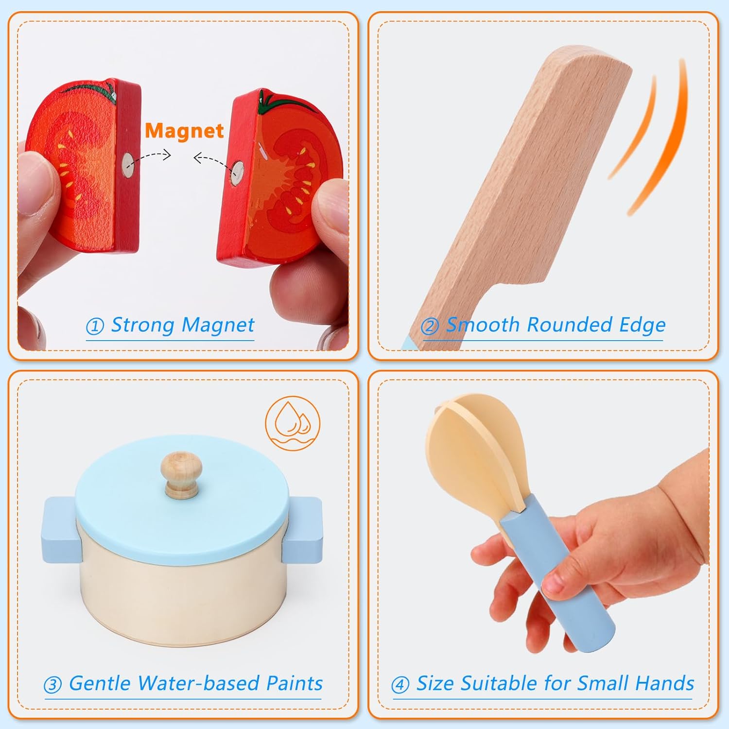 🍎【27 Pezzi Accessori per Cucina per Bambini】Il nostro cucina giocattolo per bambini include 2 pentole, 2 piatti, 2 coltelli e forchette, 2 bottiglie di spezie, 1 forno finto, 1 coperchio per pentola, 1 spatola, 1 cucchiaio, 1 frusta e 12 pezzi di verdure da tagliare. Ogni giocattolo è accuratamente progettato per offrire un'esperienza di cucina realistica. 🍇【Materiali Sicuri e Giocattoli Alimentari Tagliabili】I nostri cucina giocattolo per bambini in legno sono realizzati in legno di alta qualità e sostenibile, robusto e sicuro. Sono privi di spigoli vivi e residui chimici, garantendo la sicurezza dei vostri bambini durante il gioco. Ciò permette ai bambini di esplorare liberamente le loro abilità culinarie e di liberare la loro creatività. 🍍【Interazione Familiare e Giochi di Ruolo】Gli accessori cucina bambini sono ottimi giocattoli educativi che permettono ai bambini di partecipare a varie attività di gioco di ruolo, promuovendo l'interazione sociale e permettendo loro di sviluppare il pensiero creativo e l'immaginazione in modo divertente. 🏆【Miglior Giocattolo Educativo】Gli accessori cucina bambini possono migliorare le abilità motorie, la coordinazione mano-occhio e il pensiero logico, aiutando i bambini a comprendere la posizione e la relazione spaziale degli oggetti. Possono anche essere utilizzati per il riconoscimento dei colori, lezioni di ordinamento, montaggio e raggruppamento. I bambini imparano abilità importanti attraverso il gioco che possono applicare nella vita quotidiana. 🎁【Ottimo Regalo per Bambini dai 3 Anni in Su】Gli Teneytoyz cucina giocattolo per bambini sono un ottimo regalo per i bambini dai 3 anni in su. Confezionati in modo elegante, sono la scelta perfetta per compleanni, Natale o qualsiasi altra festività. I bambini si divertiranno con i giochi di taglio e combinazione che portano ancora più divertimento e risate.