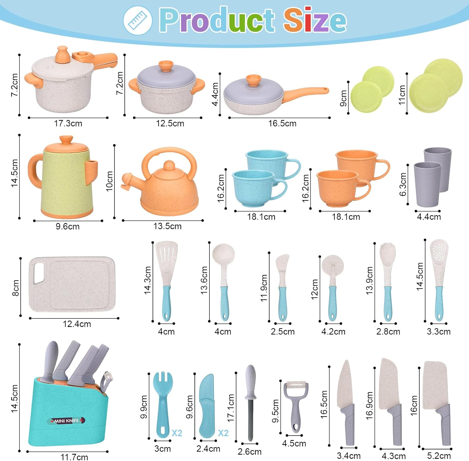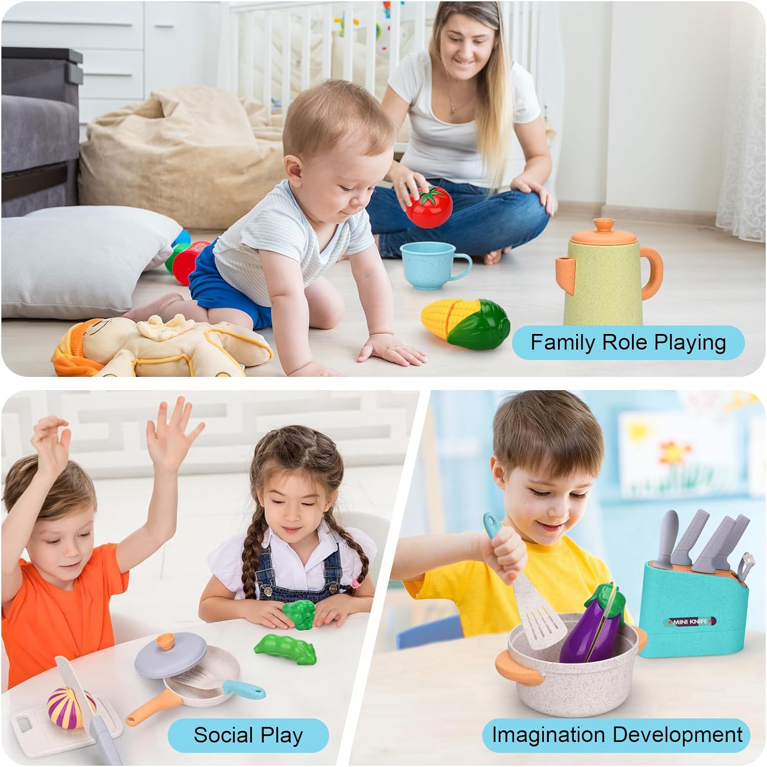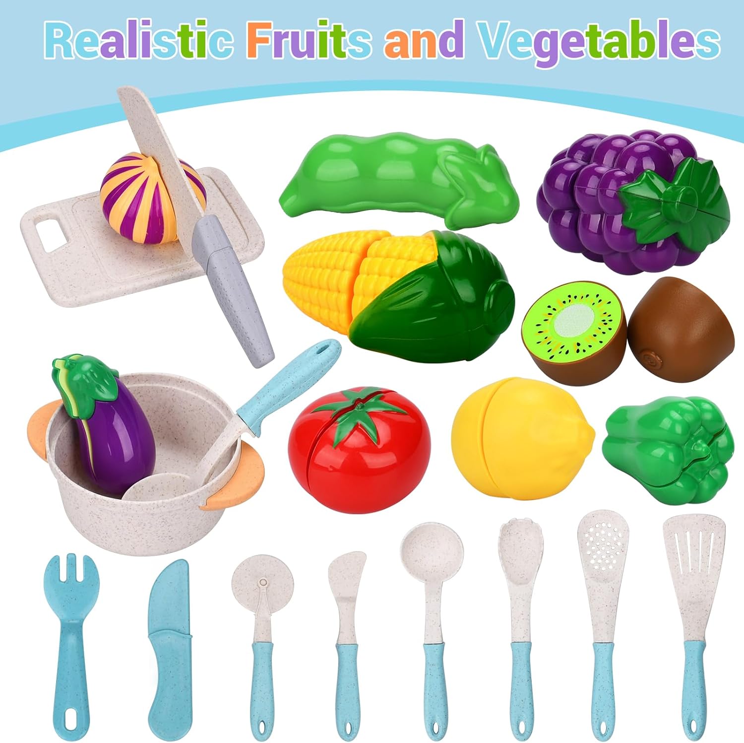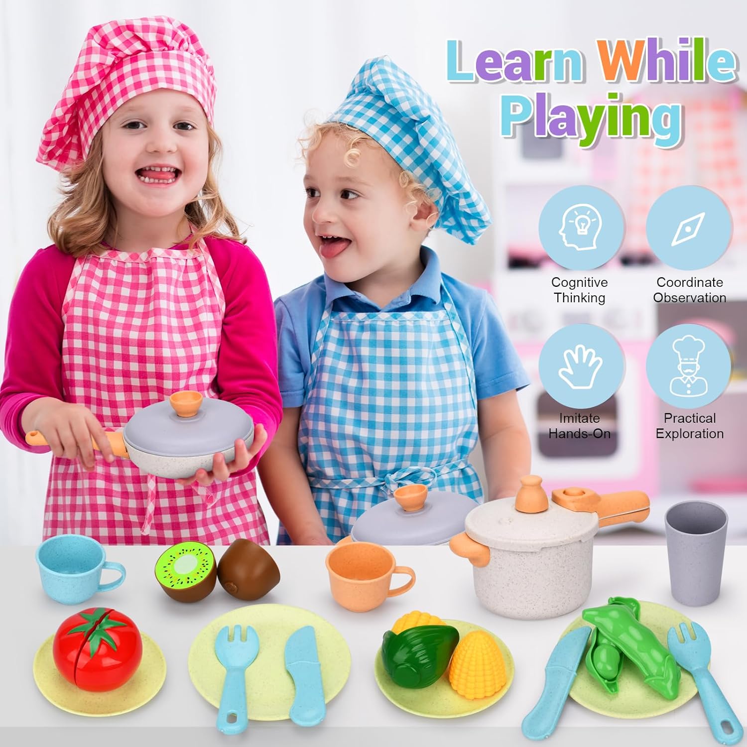 🍳【42 pezzi accessori da cucina giocattolo】Il set di accessori da cucina per bambini comprende pentola, padella,pentola a pressione,bollitore,teiera,padella e vari utensili da cucina,coltello per sbucciare, tagliere,coltello,forchetta,cucchiaio.Quando i bambini usano pentole e padelle diverse,è utile sviluppare le loro abilità pratiche e abilità cognitive,aiutandoli a identificare correttamente le diverse stoviglie. 🍆【Varieta 'alimentare Ricca】Questo cucina giocattolo per bambini conteneva una colorata selezione di frutta,frutta e verdura.Accessori cucina giochi di legno per bambini Include:kiwi,pomodoro,melanzana,peperoncino,Taccole,mais,cipolle,uva,limone,uova e peeling,coltello da cucina,tagliere. 🔷【Materiale Di Eccellente Qualità】Accessori da cucina per bambini realizzati con materiale di altissima qualità, resistente e facile da pulire.Il velcro utilizzato per fissare è adesivo, quando si tagliano i cibi giocattolo si sente un "crunch",la sensazione è proprio quella di un taglio reale quando si simula il taglio del cibo,creando una sensazione di gioco realistica e portare loro una vera esperienza di cucina. 🌽【Divertiti con il gioco di ruolo】Il gioco di ruolo per i bambini è estremamente importante. Permette alla loro immaginazione di correre libera.Questo set cucina bambini giocattoli da cucina colorati attirano i bambini e li aiutano a riconoscere i diversi alimenti,offrendo buone opportunità per il gioco di ruolo in cucina. 💟【Regalo Ideale per Bambini】Il playset della cucina con verdure di diverse forme, vari utensili da cucina e pentole.Fingere di giocare a set da cucina è perfetto per vacanze, Natale, feste di compleanno o regali di tutti i giorni.Come regalo per ogni bambino,per aiutarli a comprendere gli utensili da cucina, migliorare le loro abilità di vita e stimolare pienamente il loro interesse in cucina.