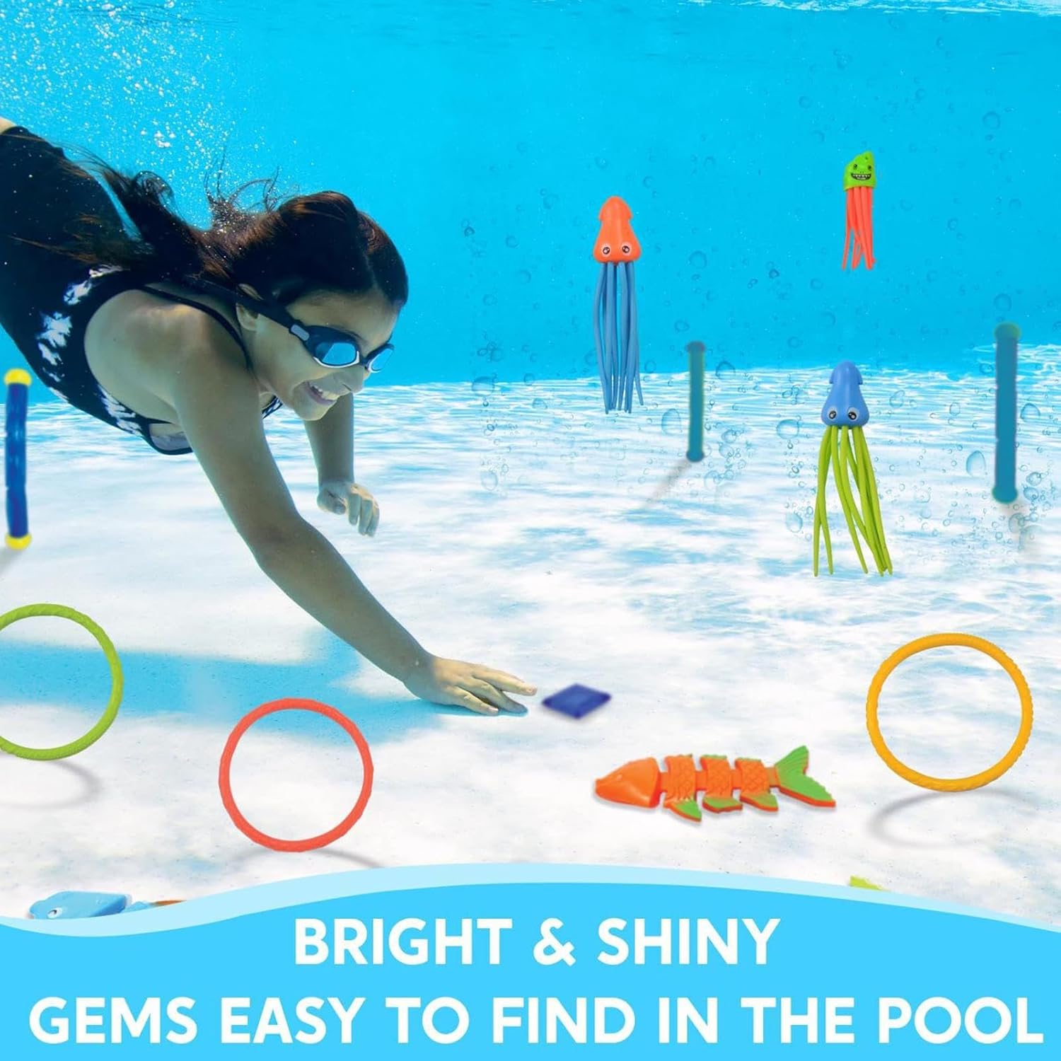 Adattabilità ottimale: questi giocattoli per immersioni sono pensati per un uso facile e adattabile, offrendo opzioni di gioco dinamiche che affascinano, sia in piscina, in spiaggia che in stabilimento balneare Giocattoli divertenti: decorati con disegni accattivanti e sfumature dinamiche, questi giocattoli da immersione combinano fascino visivo e divertimento duraturo. Trasformano ogni momento che spruzza in piscina in un"esperienza più deliziosa per il. Giochi guidati: progettati per rafforzare i legami familiari in piscina, questi giocattoli subacquei facilitano la partecipazione a giochi diretti e partite cooperative multi-giocatore, ottimizzando gli scambi tra generazioni Scoperta per Curiosità: incoraggia l'esplorazione fantasiosa con 30 pezzi ed elementi diversi che combinano avventure oceaniche tematiche e gioco d'acqua multifunzionale, creando un'esperienza coinvolgente per momenti in piscina. Gioco Sotto-Migliorato: Proporre divertenti attività interattive e formative con giocattoli ben progettati che supportano la coordinazione motoria e un efficace recupero di oggetti negli ambienti acquatici.