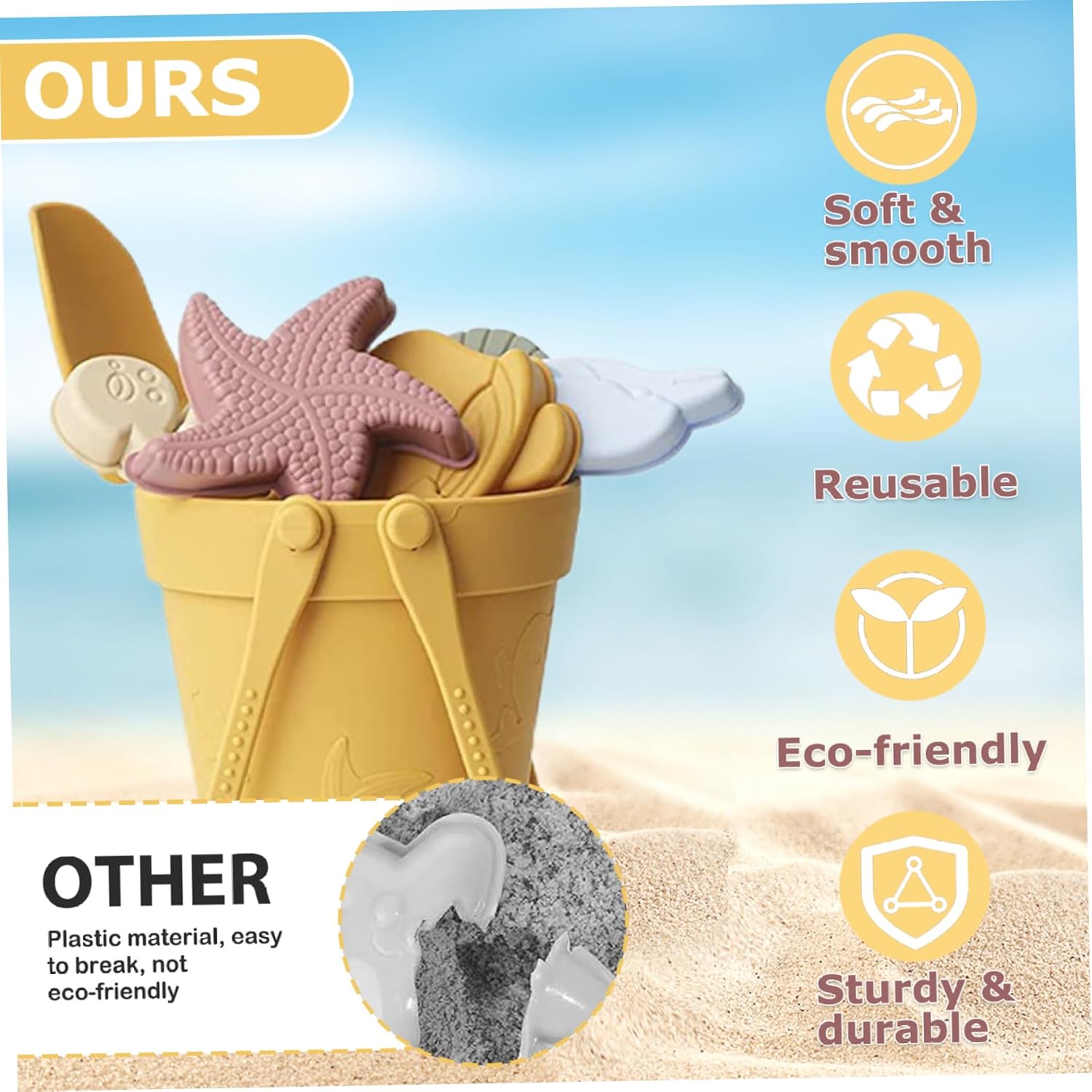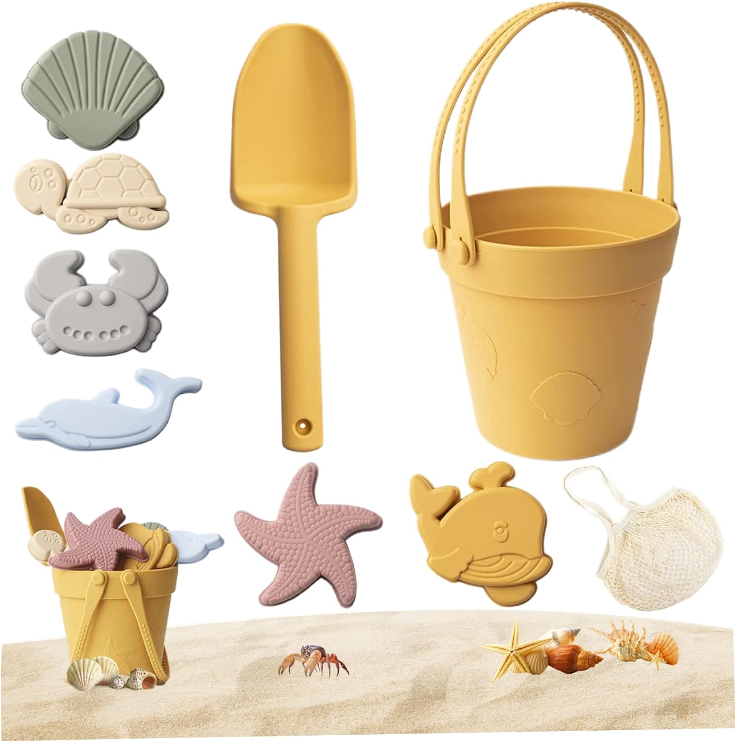 Portatili e adatti ai viaggi: il design leggero e compatto di questi giocattoli con la sabbia li rende perfetti per i viaggi. Mettili nella borsa da spiaggia o in valigia e portali con te ovunque tu vada. Educativo e di sviluppo: giocare con questi giocattoli sandbox può aiutare a sviluppare le capacità motorie, la coordinazione occhio-mano e la creatività del tuo bambino. È un modo divertente ed educativo per imparare e crescere. Luminosi e colorati: i colori vivaci di questi giocattoli da spiaggia per bambini attireranno sicuramente l'attenzione di tuo figlio e miglioreranno la sua esperienza di gioco. sabbia, crea forme e molto altro ancora. Materiale in silicone sicuro: realizzati in silicone atossico, questi giocattoli da spiaggia sono sicuri per il tuo bambino, impermeabili e facili da pulire. Il materiale morbido è delicato sulle mani e garantisce l'uso.