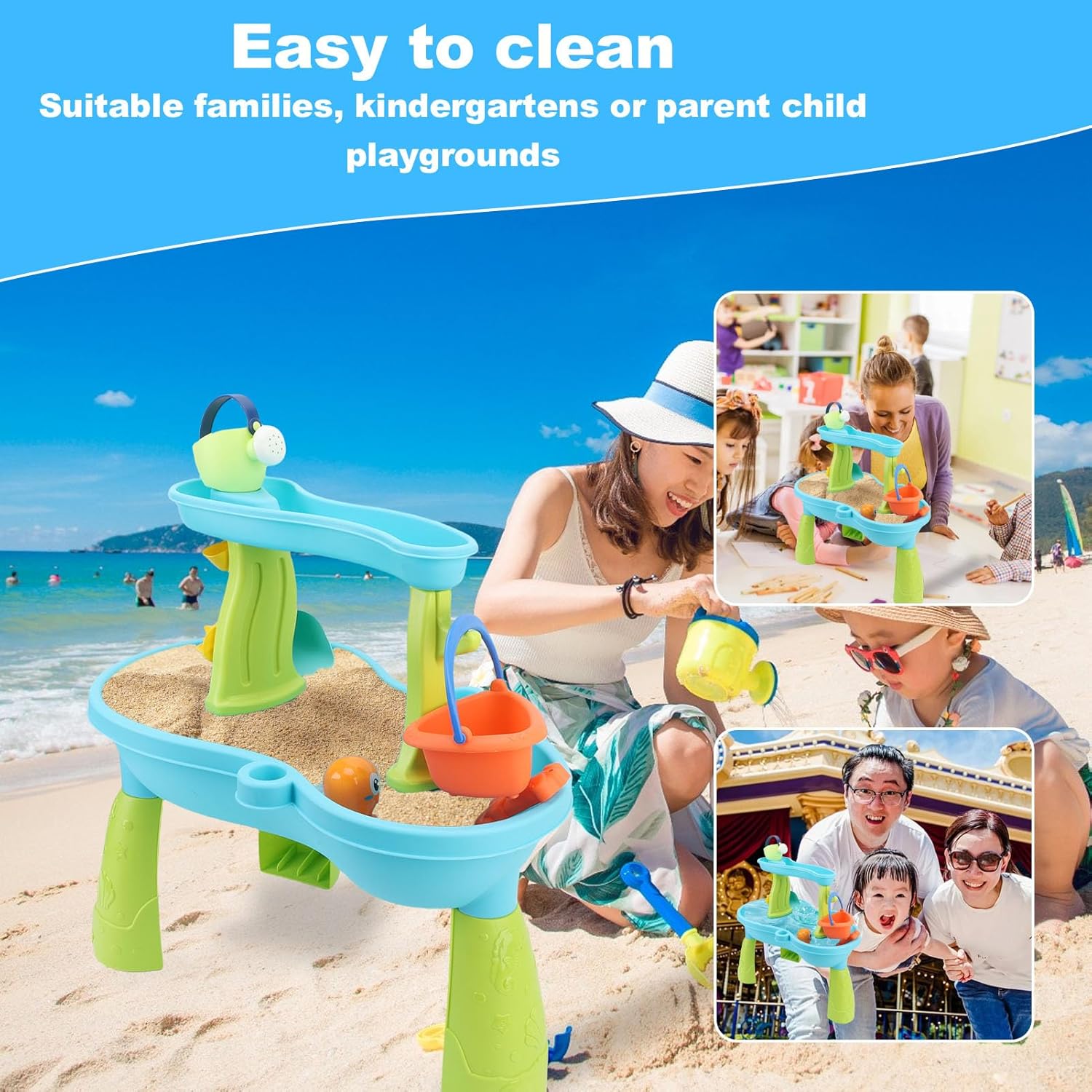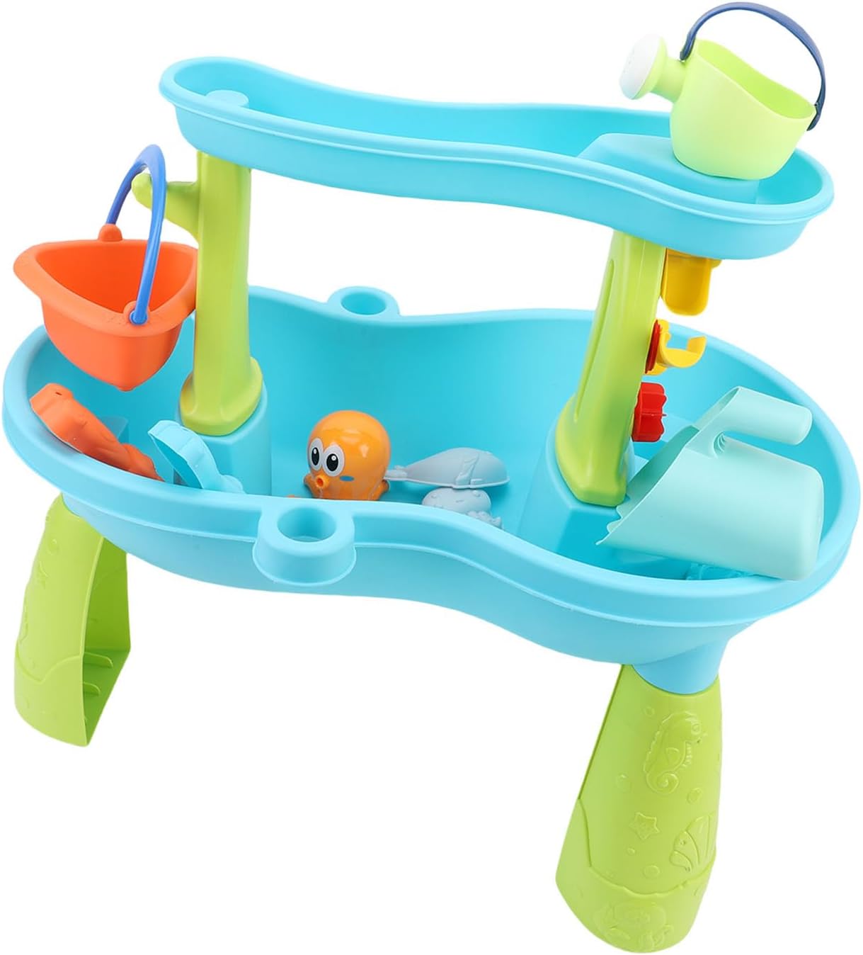 [TAVOLO CON SABBIA SPAZIOSO E VERSATILE] Il design ampio offre molto spazio per giochi con sabbia e acqua, ideale per uso interno o esterno. Lascia che i bambini scatenino la loro creatività! [SET COMPLETO DI ACCESSORI PER UN DIVERTIMENTO INFINITO] Include 19 strumenti per scavare la sabbia per varie opzioni di gioco. Migliora la coordinazione occhio-mano e il gioco fantasioso nei bambini. [FACILE DA ASSEMBLARE E PULIRE] Struttura semplice per un'installazione rapida e una pulizia senza sforzo. Adatto per l'uso a casa, a scuola o nei parchi giochi. Niente più pasticci! [PROMUOVE L'INTERAZIONE FAMILIARE] Incoraggia genitori e figli a godersi del tempo di qualità insieme, costruendo di sabbia ed esplorando insieme. Rafforzare il legame tra genitore e figlio! [MATERIALI SICURI E DUREVOLI] Realizzati in plastica per alimenti con bordi lisci per la sicurezza. Garantisce un ambiente di gioco sicuro per i bambini.