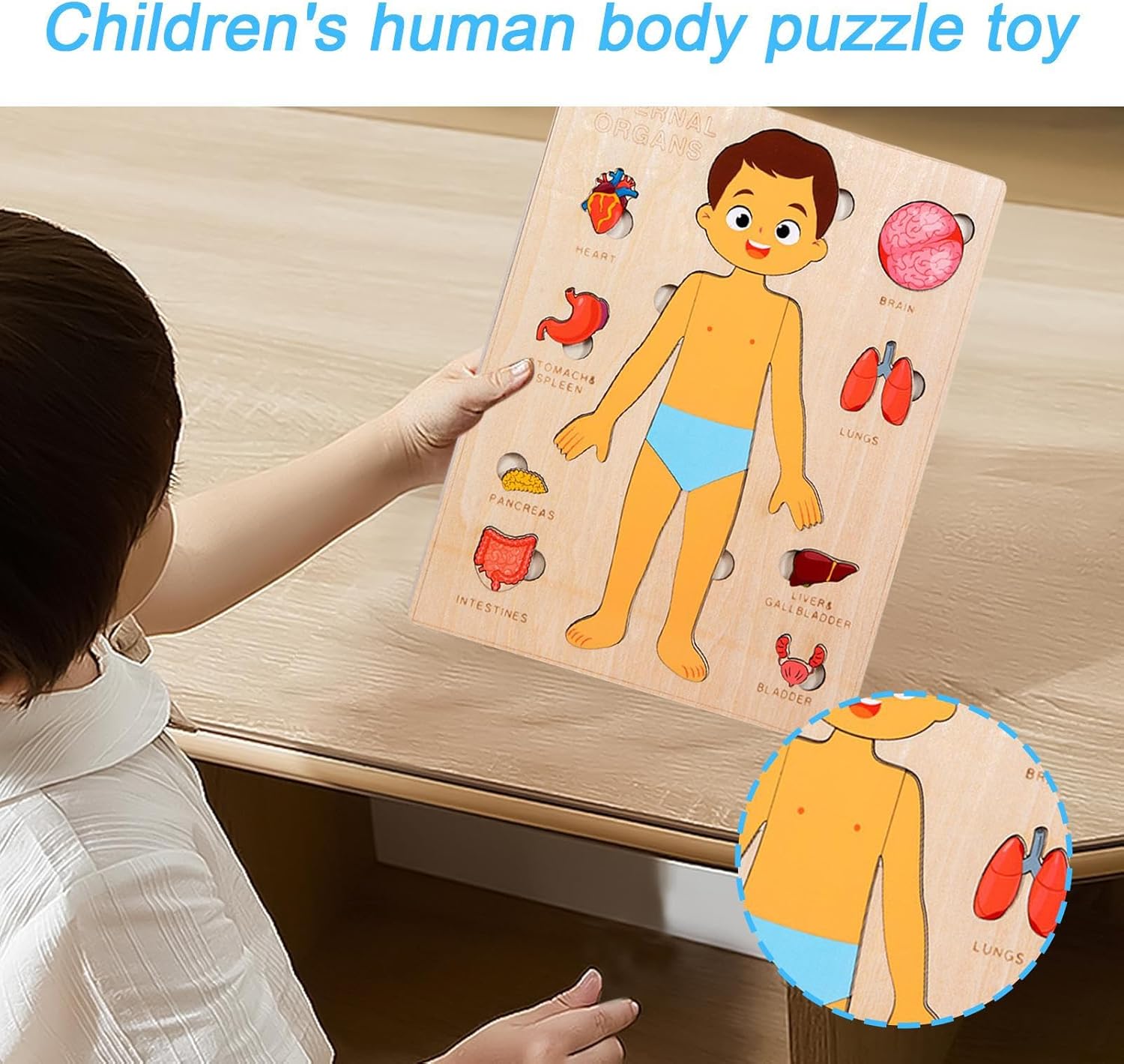 Gioco Logico: Stimola la consapevolezza spaziale e il pensiero logico con un puzzle in legno di tiglio, offrendo un modo coinvolgente per imparare l'anatomia attraverso il gioco tattile. Gioco Educativo Pratico: Combina puzzle del corpo umano e giocattolo anatomico promuovendo la scoperta tattile che stimola la curiosità scientifica nelle giovani menti attraverso esperienze di gioco coinvolgenti e istruttive Giocattolo Educativo Sicuro: Puzzle in legno a prova di bambino con bordi arrotondati per massima sicurezza, un'attività educativa coinvolgente e priva di preoccupazioni grazie ai materiali ecologici. Sviluppo Abilità Naturale: Il puzzle anatomicamente preciso agisce come giocattolo per motricità fine, combinando materiali selezionati con incastro per creare strumento educativo che coltiva capacità di problem-solving mentre sviluppa movimenti manuali essenziali tramite il posizionamento accurato dei componenti durante sessioni di gioco piacevoli. Guida Educativa Anatomia: Strumento interattivo per l'autocura e l'esplorazione del corpo umano, funge da enciclopedia anatomica che aiuta i bambini a sviluppare un profondo con il proprio organismo attraverso il gioco didattico e la consapevolezza corporea.