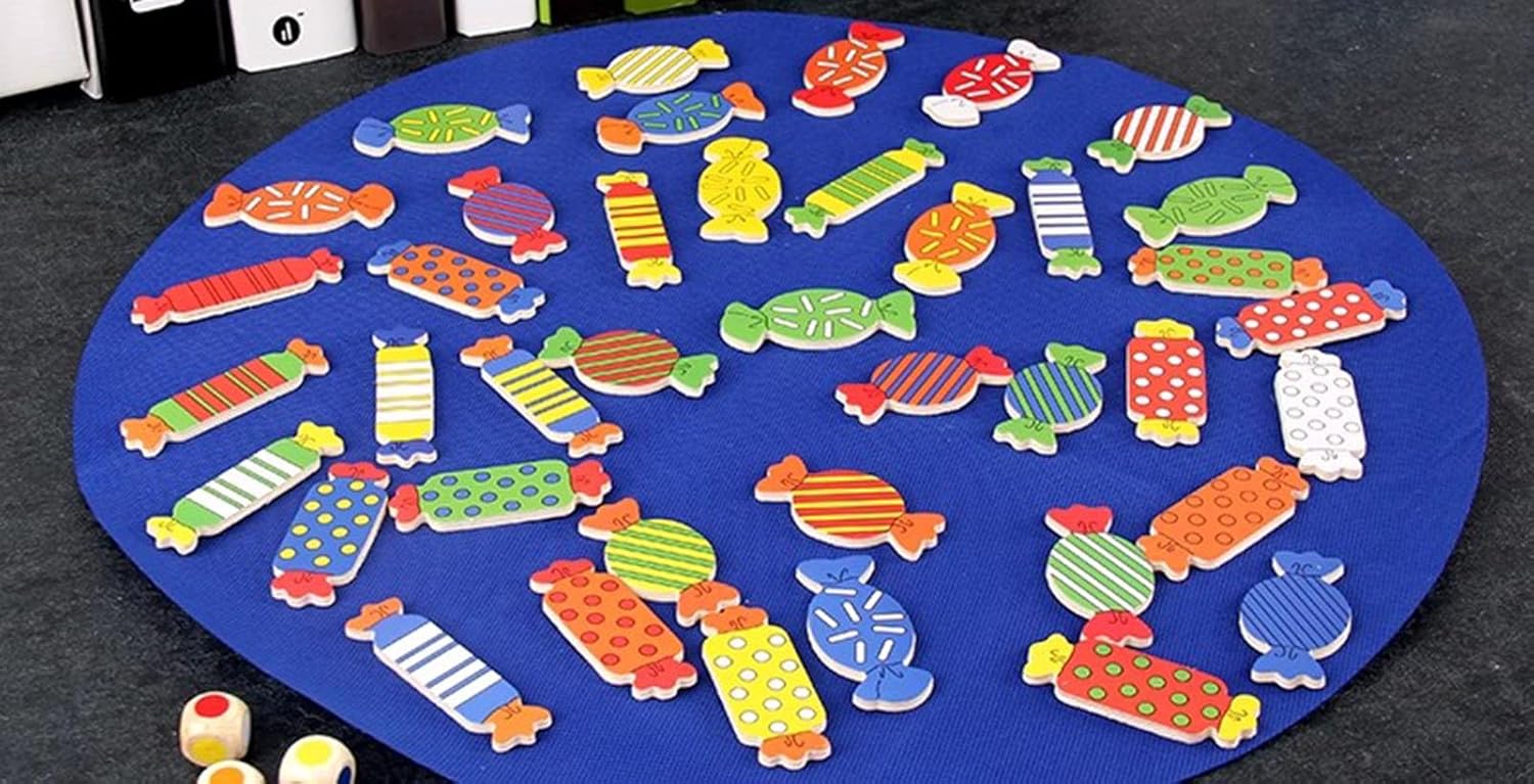 Specifiche del prodotto: 41 pezzi di caramelle in 1 forma, panno da gioco, 3 dadi. Percezione visiva: le caramelle sono disponibili in combinazioni monocolore, bicolore e tricolore. Il gioco stimola il riconoscimento dei colori da parte dei bambini e li aiuta a capire la distinzione tra i colori. Percezione cognitiva: Nel gioco, attraverso il riconoscimento dei colori e le azioni di presa, si migliora la mobilità delle dita, si migliora la coordinazione occhio-mano e la capacità di reazione. Gioco di puzzle Montessori in legno per l'abbinamento della memoria Migliora la memoria e l'immaginazione Rafforza la memoria, l'immaginazione, la coordinazione occhio-mano e le capacità di risoluzione dei problemi. Fornisce un'esperienza di apprendimento pratica e coinvolgente. Regalo perfetto per il divertimento in famiglia Ideale per il legame familiare a casa, in classe o durante i viaggi. Regalo premuroso per bambini e famiglie, che unisce l'educazione all'intrattenimento.