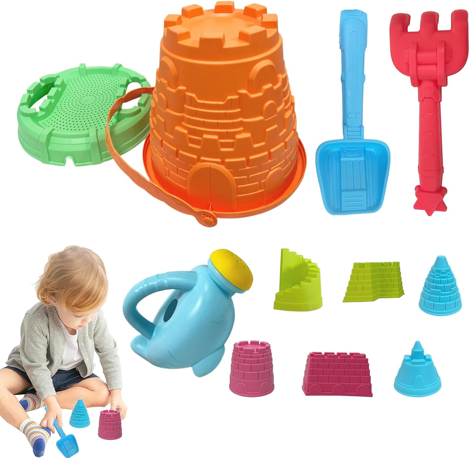 Sviluppa la relazione con i bambini: promuove le relazioni genitore-figlio incoraggiando le interazioni attraverso il gioco di sabbia, promuovendo il benessere fisico e mentale durante le attività all'aperto Ispira il divertimento all'aperto: immergiti nel gioco fantasioso con pale, rastrelli, stampi come forme del castello, secchi e strumenti di varie dimensioni, consentendo ai bambini di scavare, e decorare le loro creazioni di sabbia Offri molteplici caratteristiche: abbraccia l'eccitazione 'esplorazione all'aperto con questo versatile set di giocattoli a sabbia, la scelta perfetta per il gioco di gruppi elettrizzanti durante i viaggi in famiglia e le avventure ispirate alla natura Caratteristiche di sicurezza avanzate: costruito con materiale ABS resistente al calore e a bassa temperatura, fornendo un'esperienza di gioco più sicura con superfici lisce e delicate. Ai bambini viene garantita la protezione dai danni durante il gioco, grazie ai bordi arrotondati Bellissimo regalo: con il versatile giocattolo da spiaggia da spiaggia, i bambini possono esplorare infinite possibilità nella fossa di sabbia, nel cortile e persino nei paesaggi innevati, rendendolo un regalo unico per ragazzi e ragazze da usare durante il gioco all'aperto e le occasioni festive