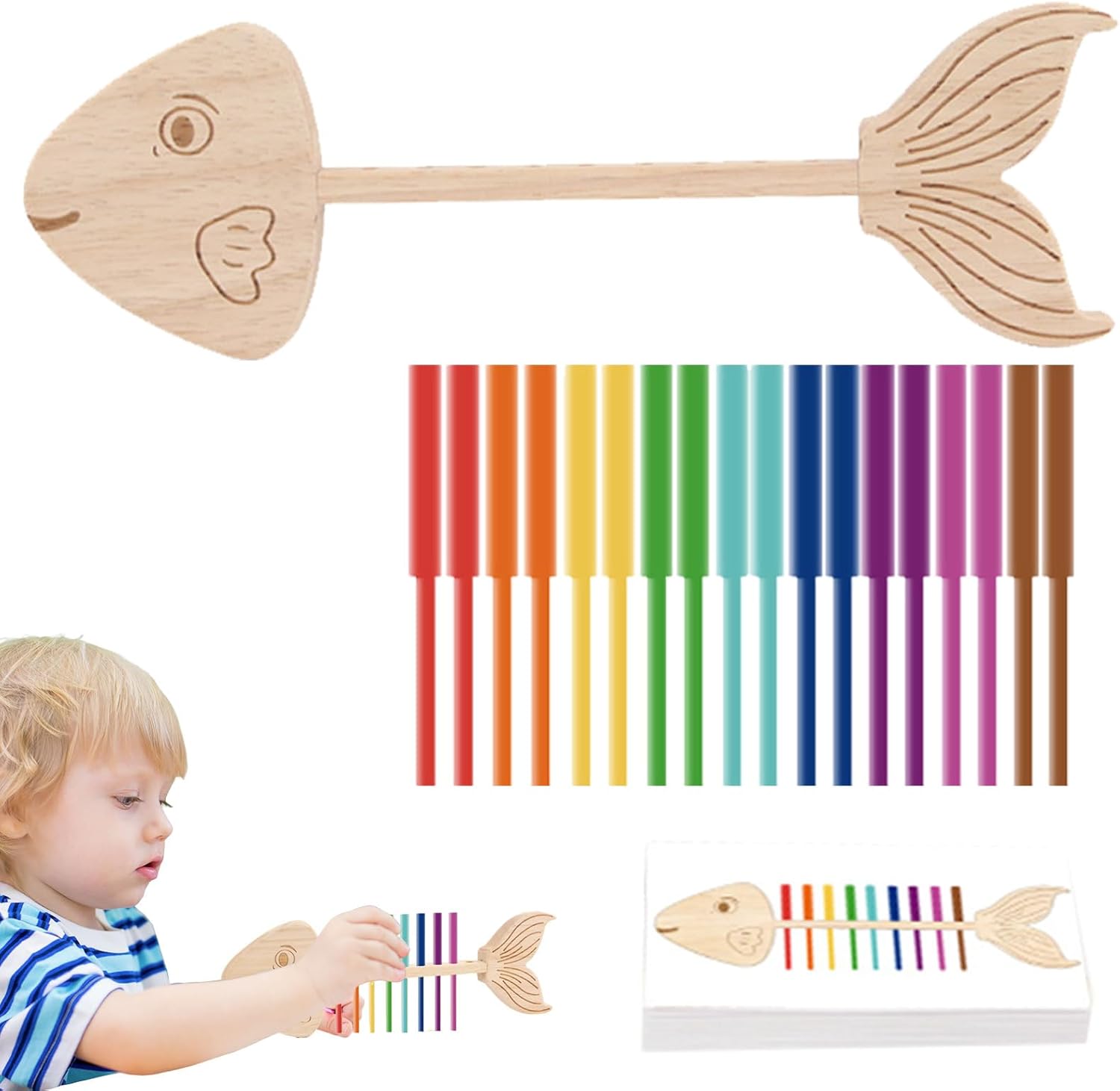 Esercizio della concentrazione dei bambini: favorire l'immaginazione e la creatività con i nostri giocattoli di smistamento del colore in legno, incoraggiando il pensiero critico, la consapevolezza spaziale e la promozione 'amore per l'apprendimento attraverso il gioco coinvolgente Il processo di apprendimento è pieno di divertimento: con il coinvolgimento della forma della forma del pesce e dei colori vibranti, questo giocattolo scintilla la curiosità e aumenta l'apprendimento pratico, promuovendo l'esplorazione e la crescita cognitiva in modo divertente Foster Creatività e immaginazione: i genitori possono unirsi ai loro figli nel giocare, scatenando la creatività e l'immaginazione, rafforzando il loro attraverso momenti condivisi di esplorazione e divertimento Legno naturale: incoraggiare la risoluzione dei problemi e il pensiero creativo con questi vibranti giocattoli di smistamento del colore in legno ecologico. È molto pratico e conveniente Ampiamente utilizzato: introducendo i bambini al selezione dei colori e al gioco tattile, questo giocattolo in legno incoraggia la crescita delle competenze, promuovendo la gioia e l'apprendimento per i bambini e i genitori