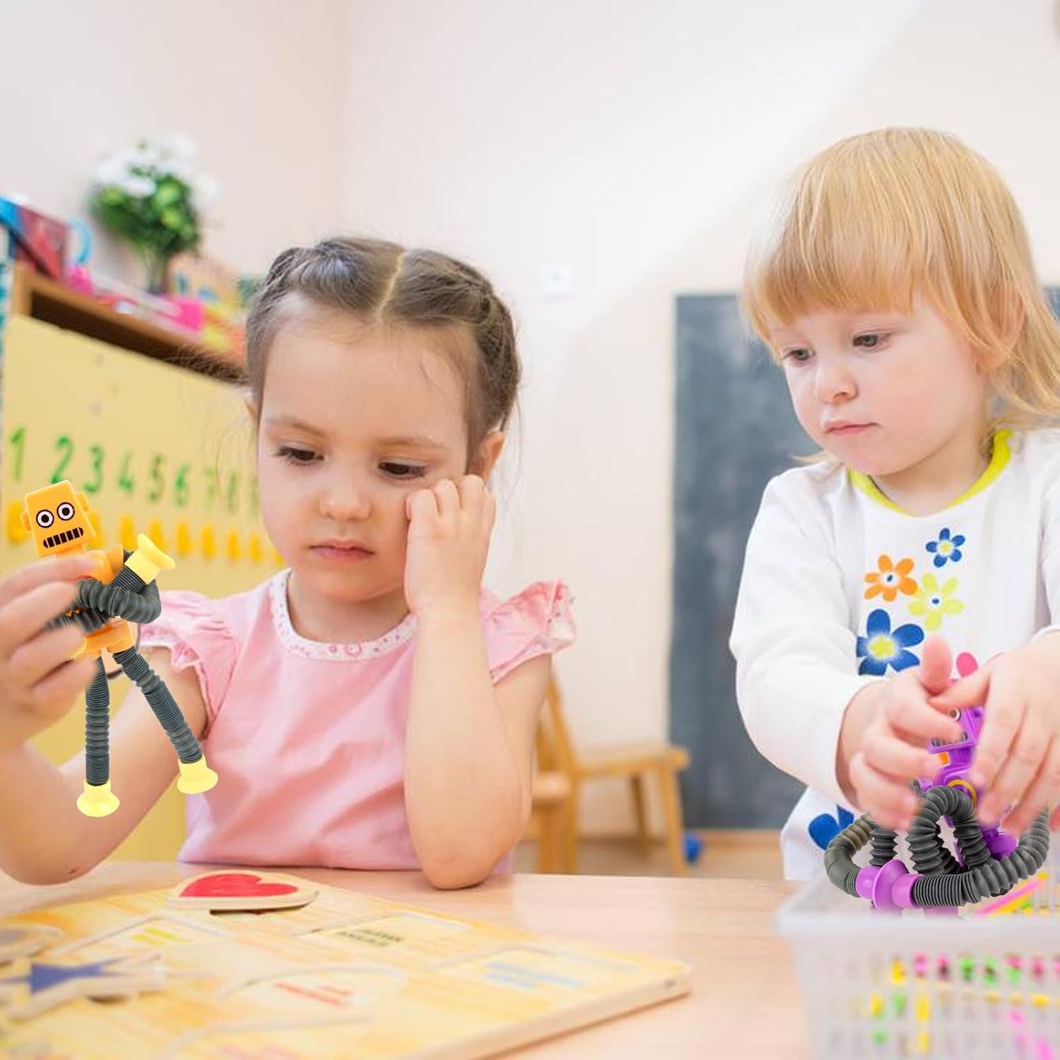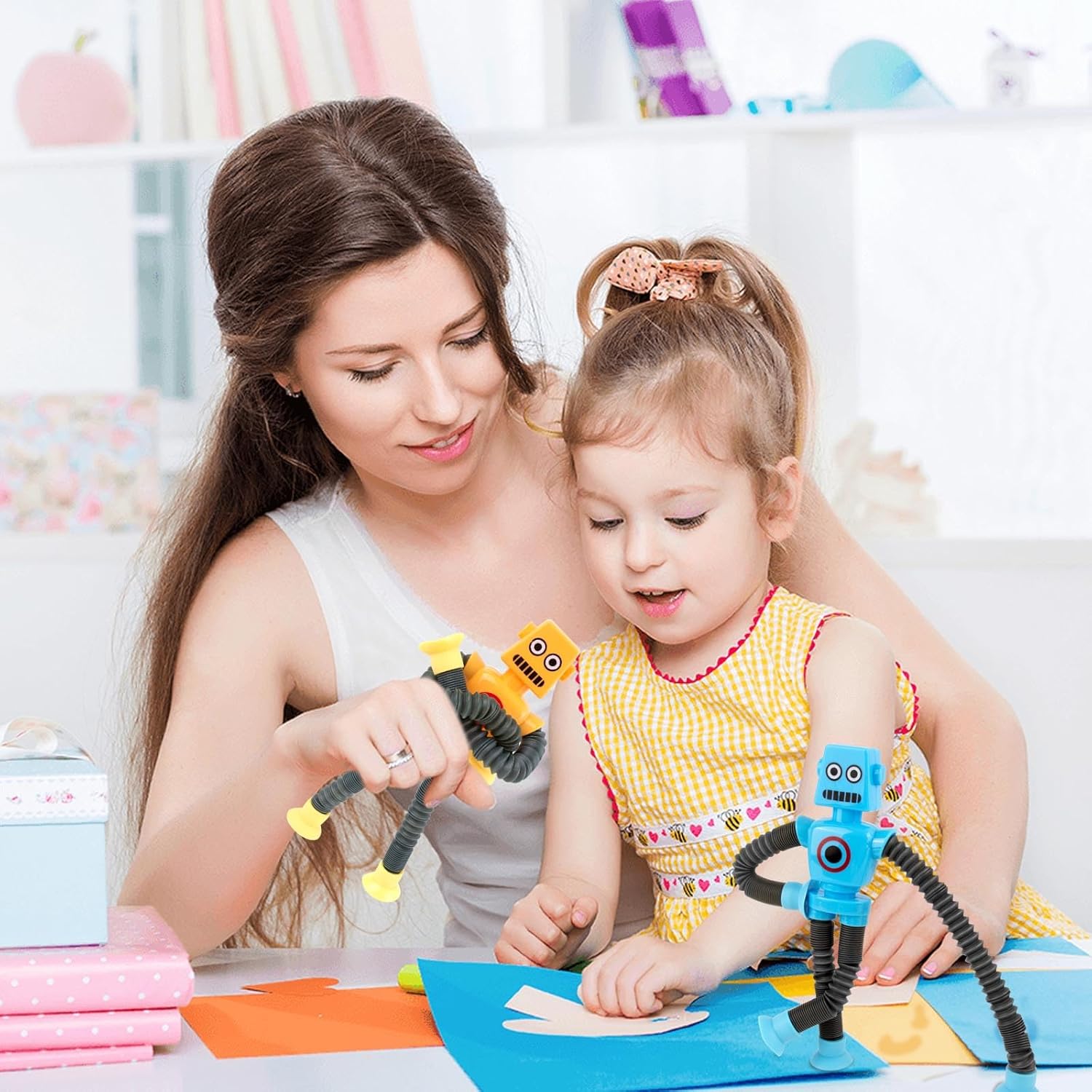 Design innovativo: il robot giocattolo a ventosa telescopica è un giocattolo sensoriale innovativo e interessante costituito da un tubo telescopico e rotante, un'estremità del tubo è collegata al fantastico corpo del robot e un'estremità è progettata con una ventosa che può essere telescopica e attorcigliata in diverse forme e fissata. Materiale sicuro e di qualità: questo giocattolo sensoriale a tubo gadget è realizzato in materiale di qualità e adatto ai bambini, privo di BPA e completamente sicuro per il tuo bambino, garantendo che tuo figlio sia sempre protetto e tu possa giocare in tutta tranquillità. E questo giocattolo a ventosa retrattile è spesso e flessibile, puoi girarlo e tirarlo quanto vuoi senza romperlo. Base a ventosa: ogni robot a ventosa retrattile è dotato di una base a ventosa che si fissa saldamente a qualsiasi superficie liscia, come specchi, piani di tavoli, finestre e piastrelle, consentendo ai bambini di giocare in una varietà di ambienti. Le ventose possono essere attaccate e staccate in diversi modi, così i bambini possono usare la loro immaginazione e abilità pratiche per realizzare ogni genere di cose nuove. (Suggerimento: le ventose saranno più forti con un po' d'acqua) Rilascia stress e concentrazione: perfetti per rilasciare lo stress e alleviare l'ansia, il design unico e la consistenza di questi giocattoli sensoriali a tubo esplosivo forniscono un'esperienza tattile che aiuta a calmare e lenire l'agitazione. Può anche essere usato come giocattolo per bambini per aiutarli a sviluppare la loro intelligenza. REGALO IDEALE: questi gadget pop-up per bambini sono progettati per essere comodi e facili da maneggiare. La costruzione leggera è facile da trasportare. Questi giocattoli antistress sono la scelta regalo migliore per ragazzi, ragazze, familiari, colleghi, partner, studenti, compagni di classe, vicini di casa in occasione di compleanni, festa dei bambini, Natale, vacanze, riunioni, feste, eventi scolastici, attività in classe e altro ancora.