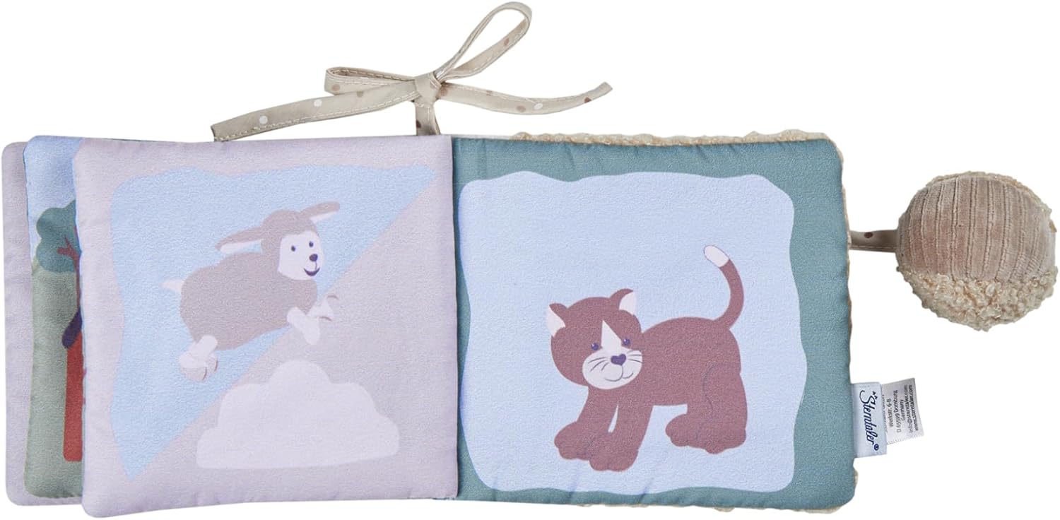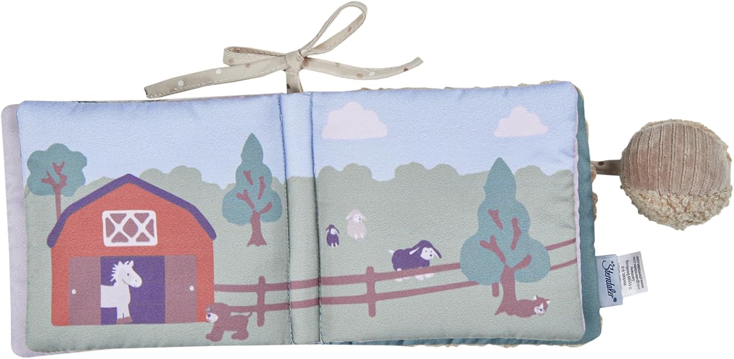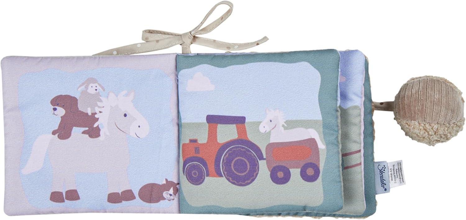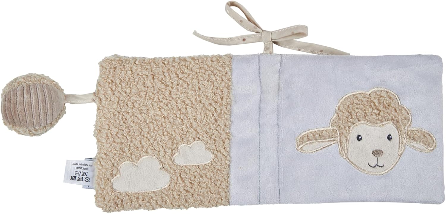 Libro gioco fattoria/// applicazione morbida pecora e nuvole /// imbottito/// con nastro per legare pratico al passeggino o simili /// sonaglio, carta scoppiettante e cigolii da scoprire