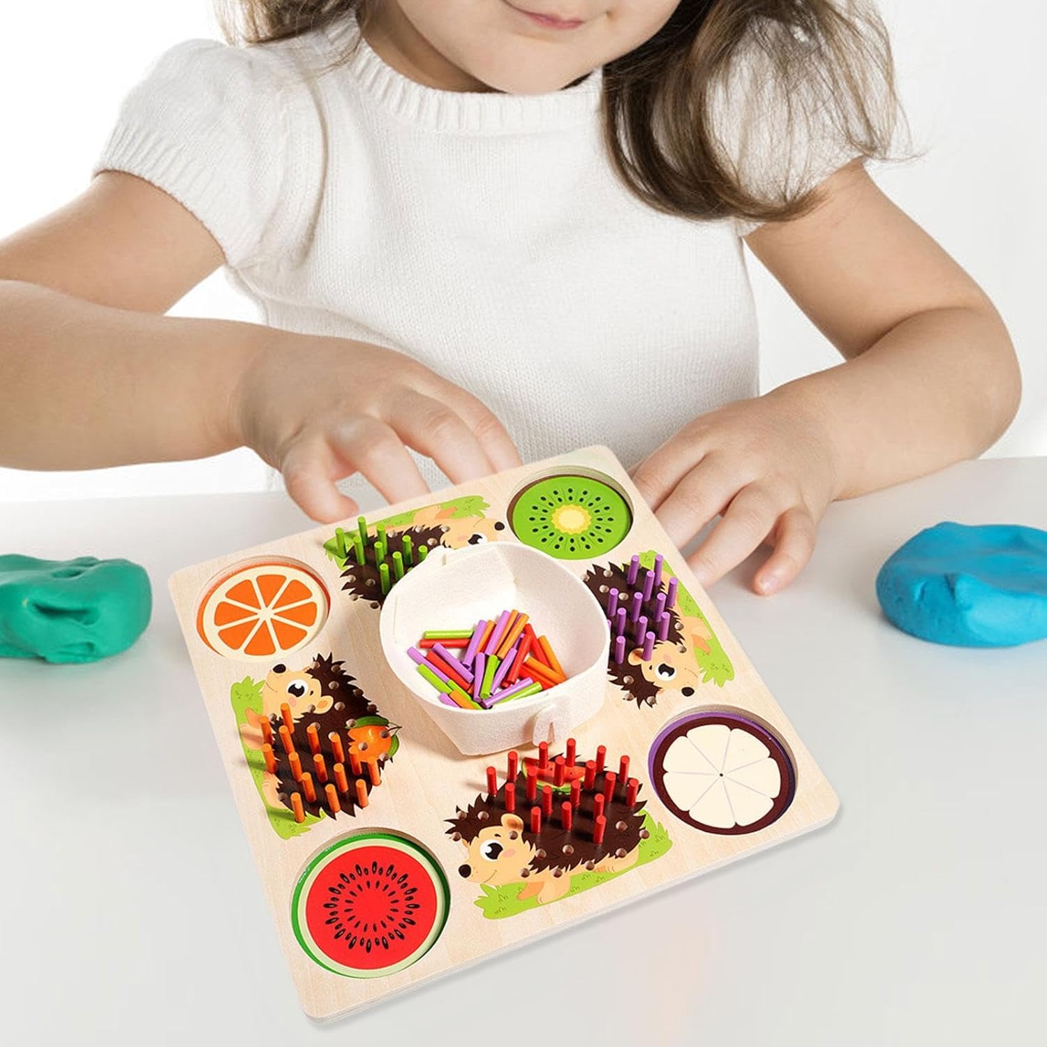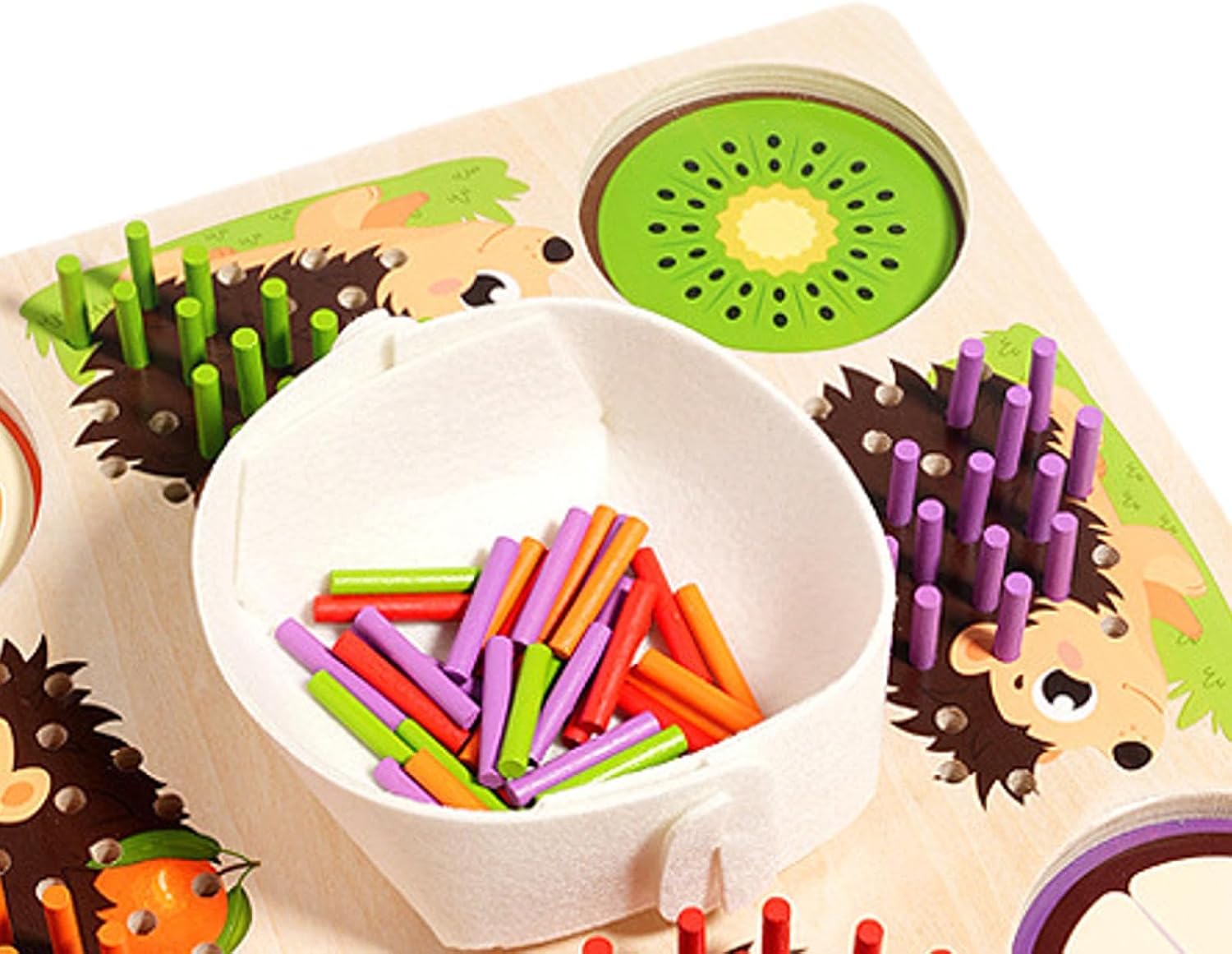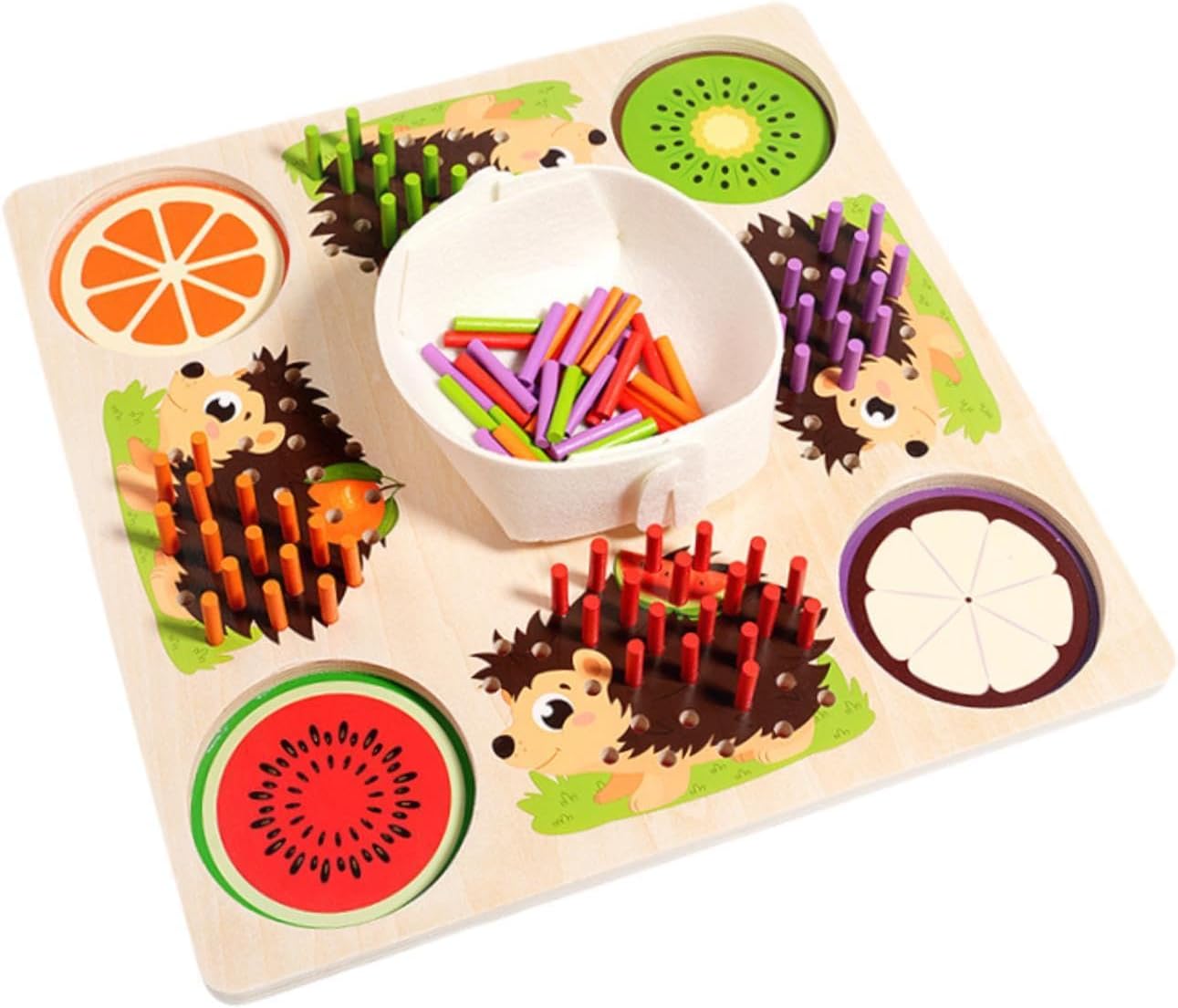 【Costruzione】: Realizzato con materiali in legno e stoffa, questo set di giocattoli educativi offre ore di gioco coinvolgenti 【Sviluppo delle capacità motorie fini】: incoraggia lo sviluppo delle capacità motorie fini mentre i bambini inseriscono pioli di legno nelle figure del , promuovendo la coordinazione occhio-mano e la precisione 【Gioco dei dadi】: il gioco da tavolo in legno si conclude quando tutti i pioli sono posizionati correttamente in base al dei dadi, favorendo il 【Riconoscimento di colori e numeri】: coinvolgi i bambini in un'esperienza di apprendimento divertente abbinando pioli di legno colorati con dischi di frutta, migliorando la loro capacità di riconoscere colori e numeri 【Opzioni versatili】: divertiti con due emozionanti modalità di gioco, gareggia per riempire il tuo di pioli o sii il primo a rimuoverli tutti, offrendo divertimento e competizione per i giovani giocatori