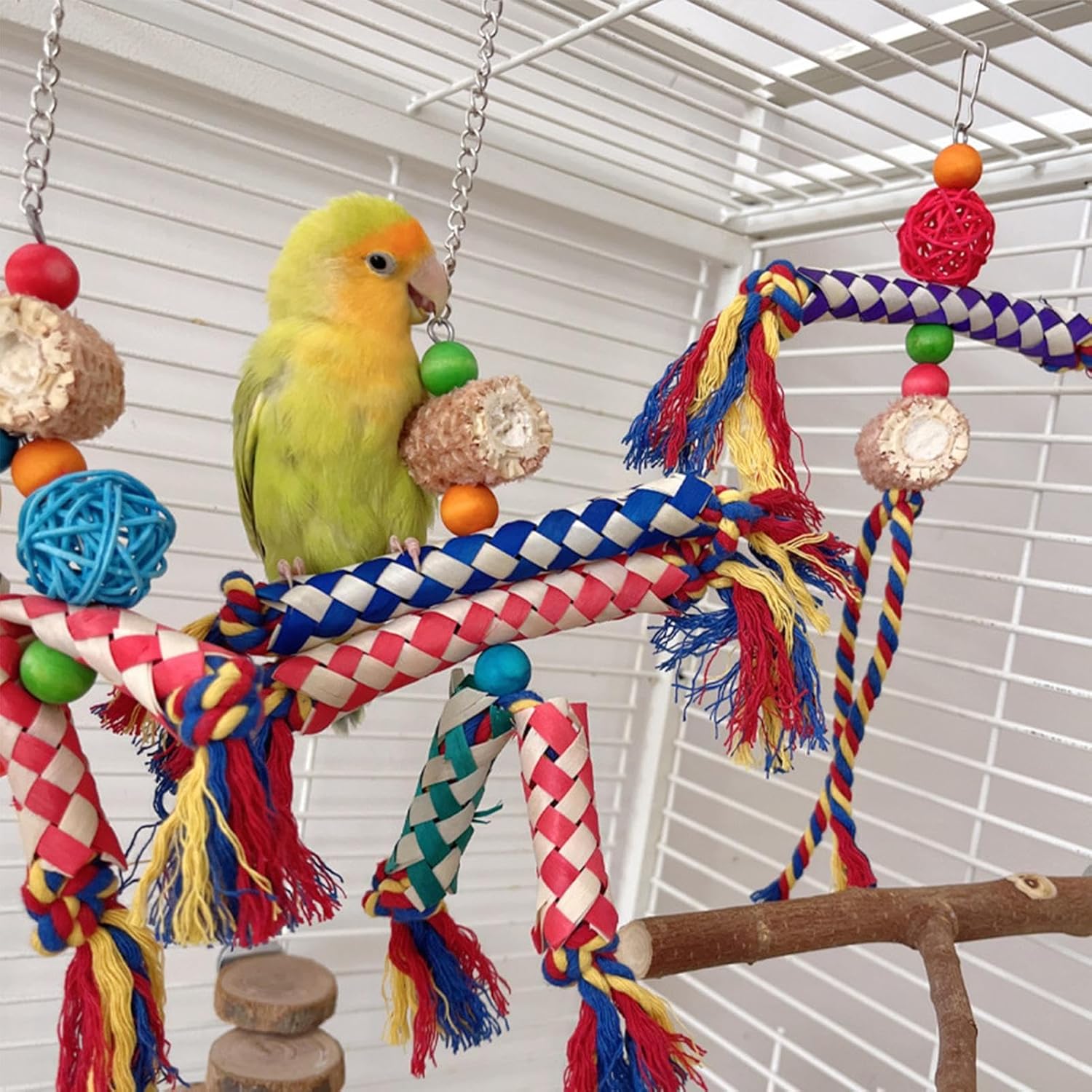 Motivi colorati coinvolgenti: Presenta colori visivamente accattivanti e forme complesse per attirare l'attenzione mentre stimola la curiosità, garantendo un ambiente arricchente e divertente per uccelli attivi che amano esplorare e giocare con giocattoli stimolanti Durata Elevata: Costruito con materiale PP affidabile e corda di cotone resistente, il giocattolo offre un'esperienza di masticazione e strappo sicura mentre stimola naturalmente i modelli comportamentali naturali degli uccelli, garantendo intrattenimento duraturo per i vostri amici pennuti preferiti Simulazione Foraggiamento Naturale: Stimola i comportamenti di foraggiamento naturale negli uccelli, promuovendo abitudini salutari e riducendo la noia attraverso stimoli fisici e mentali per un arricchimento comportamentale. I giochi masticabili per uccelli supportano l'attività mentale e fisica, incoraggiando comportamenti naturali che mantengono gli uccelli impegnati e felici durante il giorno Installazione semplice e veloce: Dotato di ganci mobili che permettono un attacco rapido e un'installazione senza utensili, rendendo l'inserimento nei comuni voliere per uccelli facile e intuitivo. Questo design migliora l'esperienza utente garantendo compatibilità con la maggior parte delle voliere per uccelli e risparmiando prezioso durante l'uso quotidiano. I giocattoli masticabili per uccelli diventano così ancora più pratici da utilizzare grazie a questo innovativo ed efficien Ampio Utilizzo:Realizzati per alleviare la noia, i tubi di carta colorati fungono da intrattenimento multifunzionale soddisfacendo le esigenze di beccare e sminuzzare. Forniscono stimolazione coinvolgente e divertimento duraturo, mantenendo gli uccelli attivi e felici mentre interagiscono con materiali sicuri e resistenti adatti alle loro abitudini naturali