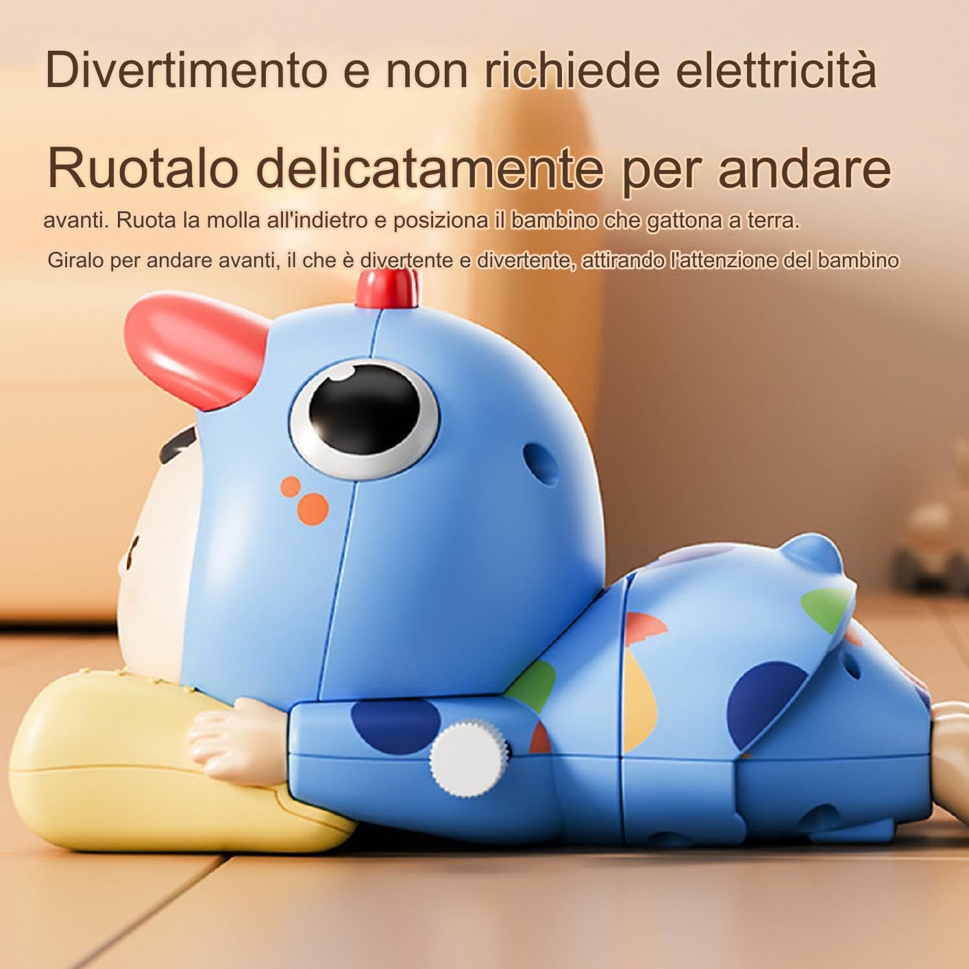 Uso Facile: Caratterizzato da un meccanismo a orologeria scorrevole, questo giocattolo mobile per bambini funge da strumento di apprendimento interattivo che rafforza le capacità osservative e insegna la pazienza, creando esperienze di gioco significative in case o scuole materne i bambini possono impegnarsi in attività pratiche che migliorano la loro comprensione attraverso l'osservazione e l'interazione con i modelli di movimento del giocattolo educativo. Favorisce Crescita Naturale: I giocattoli per gattonare intrattengono i bambini in attività che potenziano le abilità motorie fini e la coordinazione occhio-mano, supportando l'apprendimento precoce mentre stimolano curiosità e esplorazione durante il gioco sul pavimento o sul tappeto. Favoriscono la crescita evolutiva in modo naturale attraverso movimenti interattivi, promuovendo sviluppo equilibrato e gioioso nelle fasi iniziali della vita. Risvegliare la Curiosità: I giocattoli per gattonare incoraggiano il gattonamento naturale attraverso movimenti accattivanti, aiutando i a sviluppare abilità mentre godono di intrattenimento interattivo che li mantiene concentrati e attivi durante le routine di gioco quotidiane, favorendo la coordinazione e la curiosità con giochi dinamici che stimolano l'esplorazione e il sviluppo in modo sicuro e piacevole Design Creativo e Accattivante: Questi giocattoli mobili per bebè sono progettati con colori vivaci per attirare l'attenzione e insegnare la differenziazione dei colori, favorendo lo sviluppo visivo mentre i bambini seguono il movimento del giocattolo, garantendo ogni volta una sessione di gioco piacevole e arricchente durante l'interazione con il prodotto. Sviluppo Motorio: I giocattoli in movimento supportano la crescita delle abilità motorie incoraggiando i bambini a osservare e muoversi, promuovendo la pratica del gattonare in modo divertente che mantiene i bambini felici durante il gioco mentre migliora le loro capacità fisiche naturalmente attraverso il movimento interattivo e favorisce lo sviluppo complessivo del bambino con un gioco coinvolgente e stimolante per le abilità motorie fondamentali