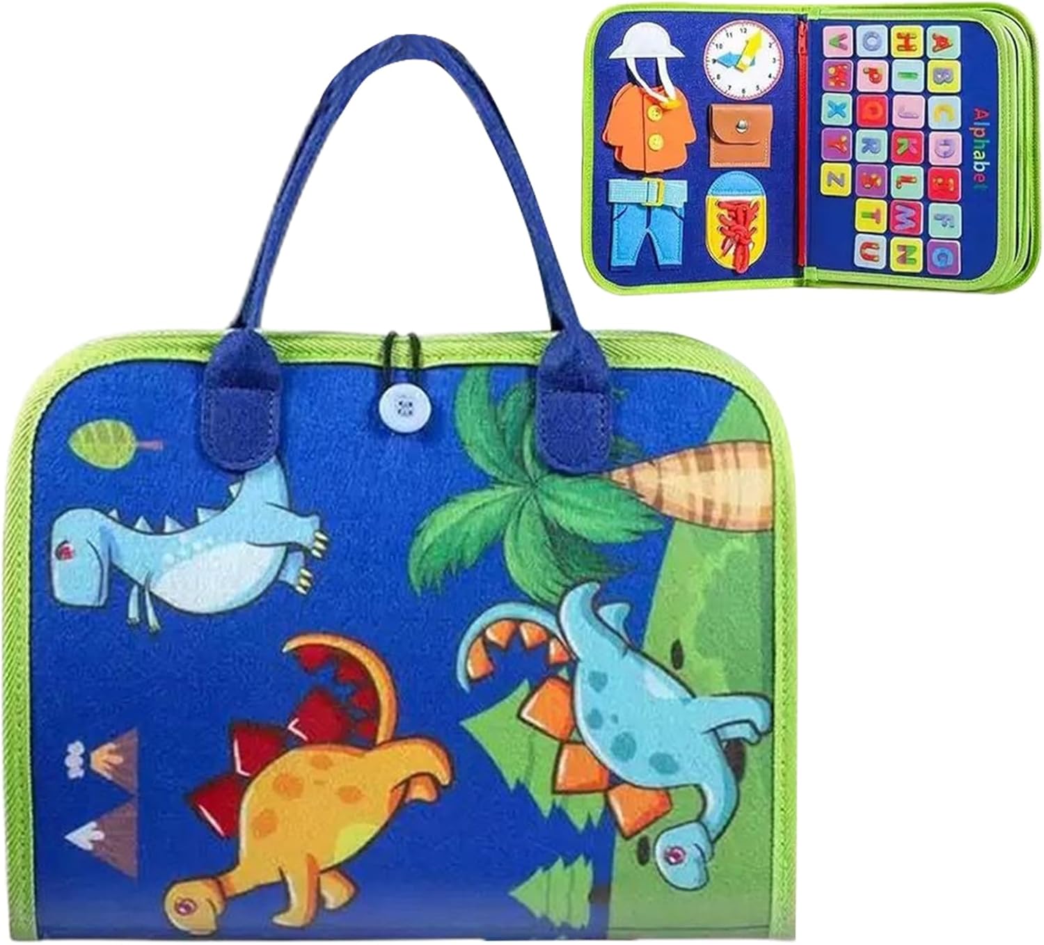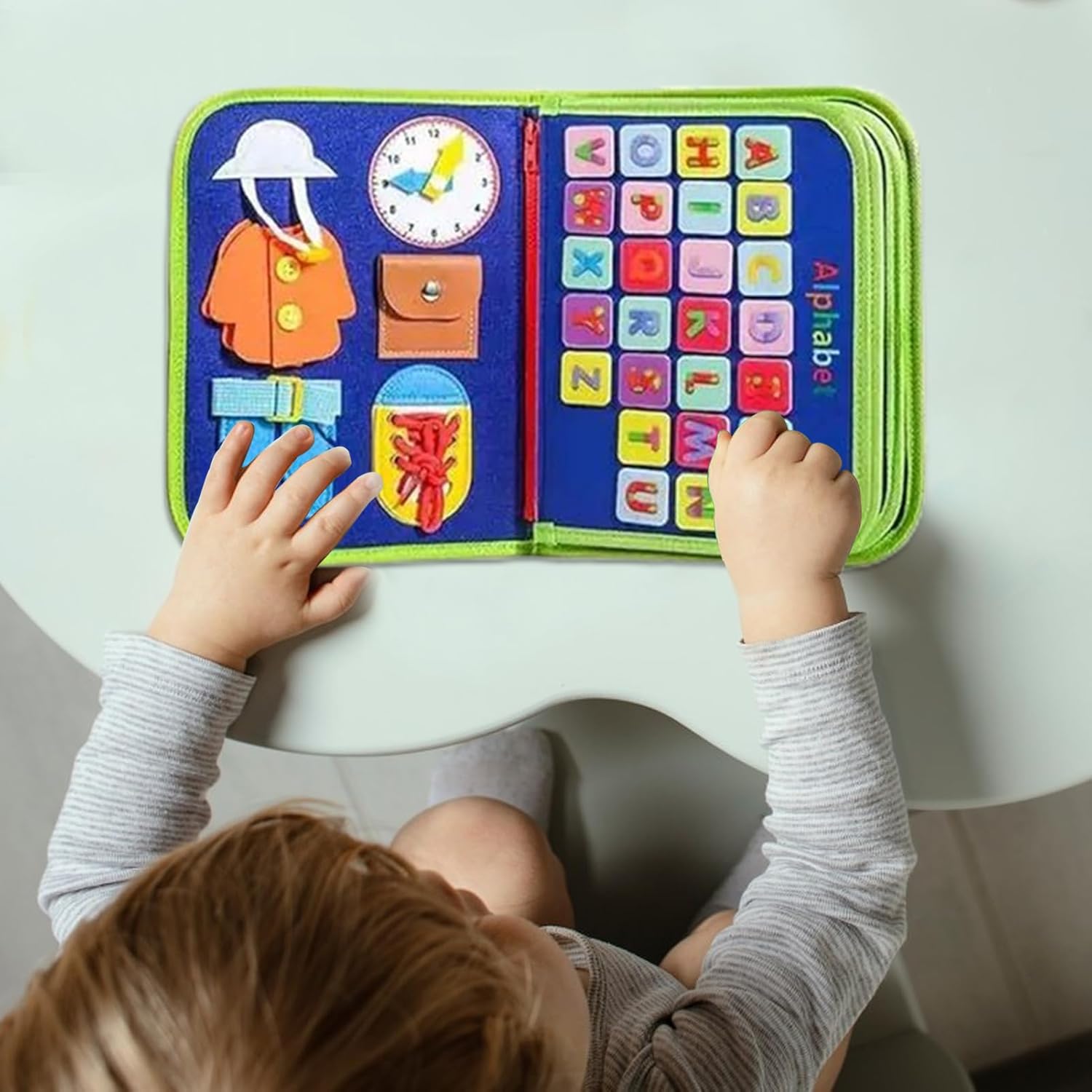 Allenamento interattivo: rafforza la coordinazione occhio-mano con elementi matematici e lettere, allena la concentrazione e l'attenzione attraverso esercizi pratici per sviluppare abilità cognitive Sviluppo cognitivo: promuove le abilità motorie fini e il pensiero logico attraverso pratiche chiusure lampo e asole, che costruiscono abilità quotidiane giocose per i bambini Esperienza di gioco multisenso: la struttura rimovibile a due strati consente la scoperta hands-on di riconoscimento del colore, familiarità delle lettere e concetti di tempo nel gioco Design leggero: realizzato in tessuto morbido delicato sulla pelle per un uso sicuro del bambino, con pratica maniglia per il trasporto per un facile trasporto. La struttura leggera e la forma comoda da viaggio migliorano l'idoneità all'aria aperta, offrono comfort e praticità per i bambini attivi in viaggio Attività per bambini: livelli di difficoltà adeguati all'età e design motivante incoraggiano il legame giocoso alle fasi di apprendimento. I genitori agiscono come un sistema educativo di supporto durante il gioco, migliorando così l'effetto di apprendimento.