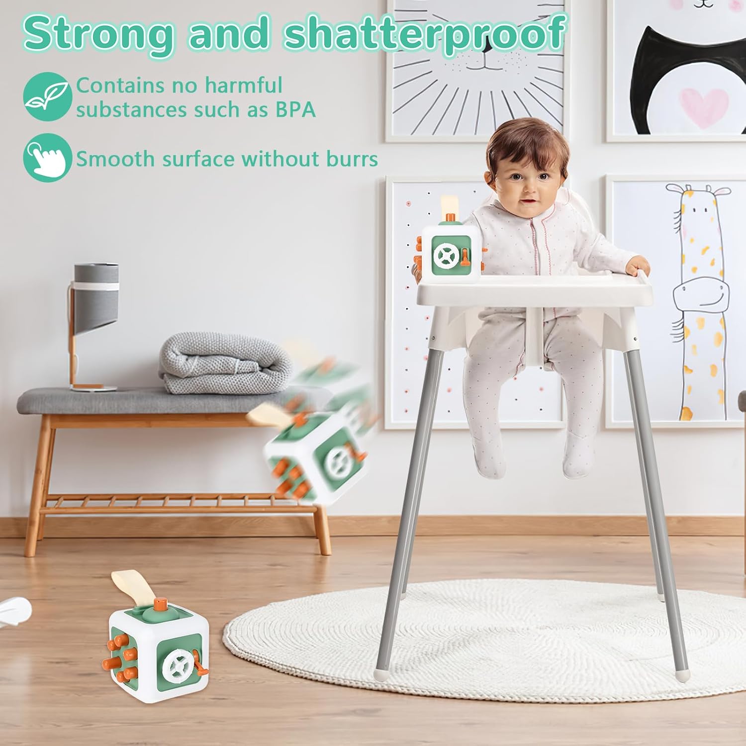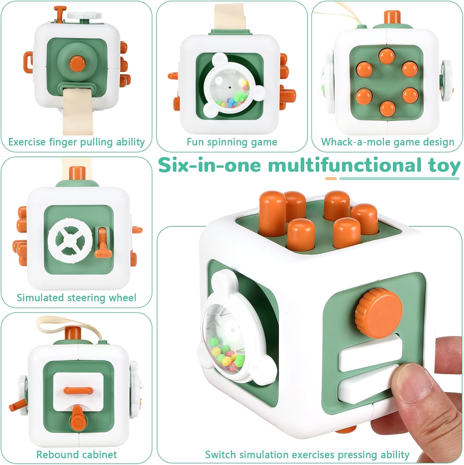 【Giocattolo cubo 6 in 1】 Sei funzioni di attività chiave possono aiutare i bambini a promuovere lo sviluppo cognitivo, stimolare la curiosità dei bambini e consentire loro di esplorare questo giocattolo in sicurezza e concentrarsi sull'apprendimento. Esistono combinazioni di presse, interruttori, rotazioni, talpe, volani e armadietti di rimbalzo. Il materiale robusto garantisce che il prodotto possa essere utilizzato a lungo. 【Ecologico e facile da pulire]】Questo prodotto non richiede batterie e produce pochissimo rumore durante l'uso, il che può proteggere l'udito dei bambini evitando che gli altri vengano disturbati. La manutenzione e la pulizia quotidiana richiedono solo l'uso di detersivo per piatti e salviette umidificate.,Facile da trasportare: questo prodotto è leggero e facile da trasportare, il che lo rende comodo per i bambini attivi e curiosi che possono perdere tempo e tenersi occupati. Adatto per viaggi e vacanze, è il compagno di viaggio ideale per il tuo bambino, permettendogli di trascorrere ore tranquillamente in macchina o in aereo. Allo stesso tempo, può migliorare la coordinazione occhio-mano, nonché le capacità di risoluzione dei problemi e di concentrazione, rendendolo molto adatto ai bambini attivi e autistici. Un'ottima scelta regalo per i bambini