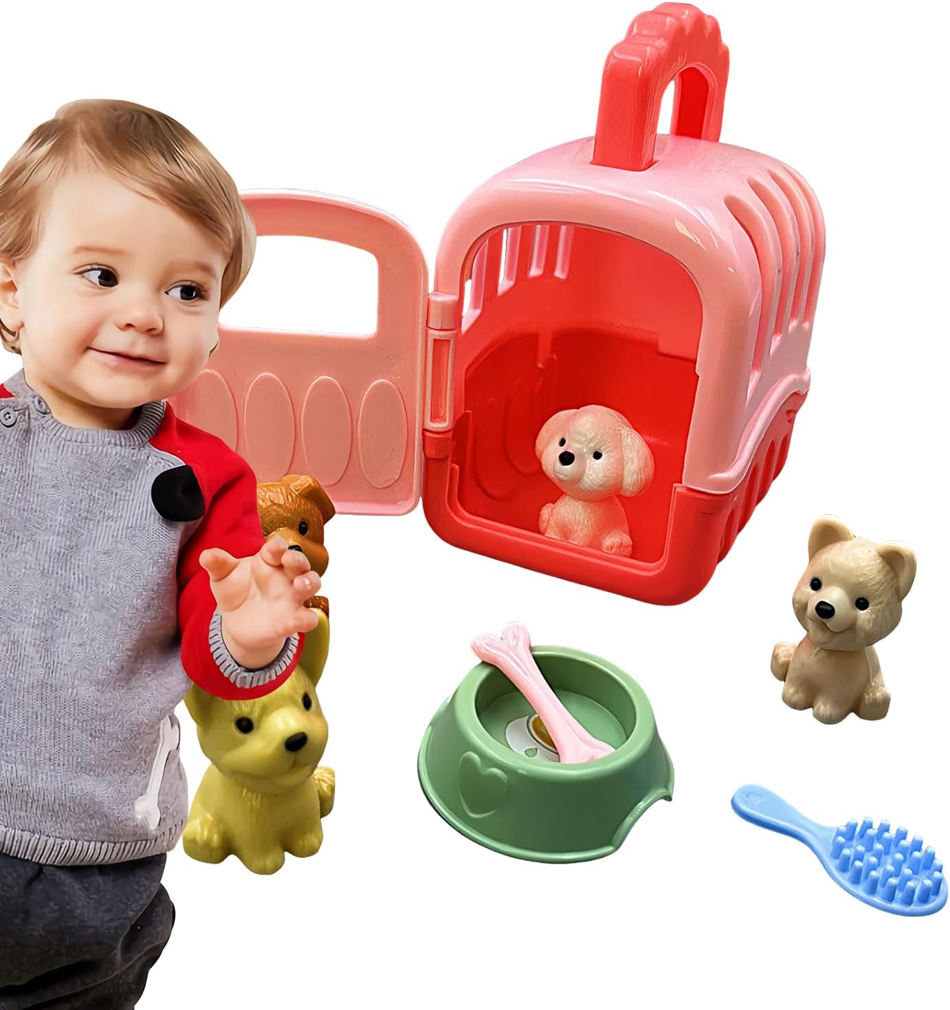 Set completo: con 1 gabbia, 4 personaggi di giocattoli per cani, una ciotola, un osso e un pennello, questo set ricco offre tutto ciò che i bambini hanno bisogno per mantenere i loro compagni a zampe. Durevole e affidabile: con le dimensioni 10 x 8,5 x 6 cm, il set di giochi in gabbia per animali domestici realizzato in materiale PP è per le mani piccole di tuo figlio. Puoi rilassarti perché sai che questo materiale durevole garantisce un di gioco senza fastidiose pause. Promuove la crescita creativa: con il nostro set di giochi per per animali domestici, i più piccoli possono divertirsi per ore durante l'apprendimento. Questo set di giochi è strumento eccellente per migliorare il gioco e promuovere lo sviluppo cognitivo. Tensione a misura di viaggio: con il suo design leggero e compatto, questo gioco in gabbia per la cura degli animali è un compagno di viaggio per i bambini che offrono intrattenimento in qualsiasi momento e ovunque. Con giocattoli e da viaggio divertenti, questo set di giochi è ancora più divertente. Ottimo regalo: scopri creatività e più divertimento con questo set di giochi "Pet Care Cage": un regalo eccellente per ragazzi e ragazze di 3 anni. per le feste del motto, le vacanze o come del gioco, promuove giovani teste e stimola come nessun altro gioco fantasioso.