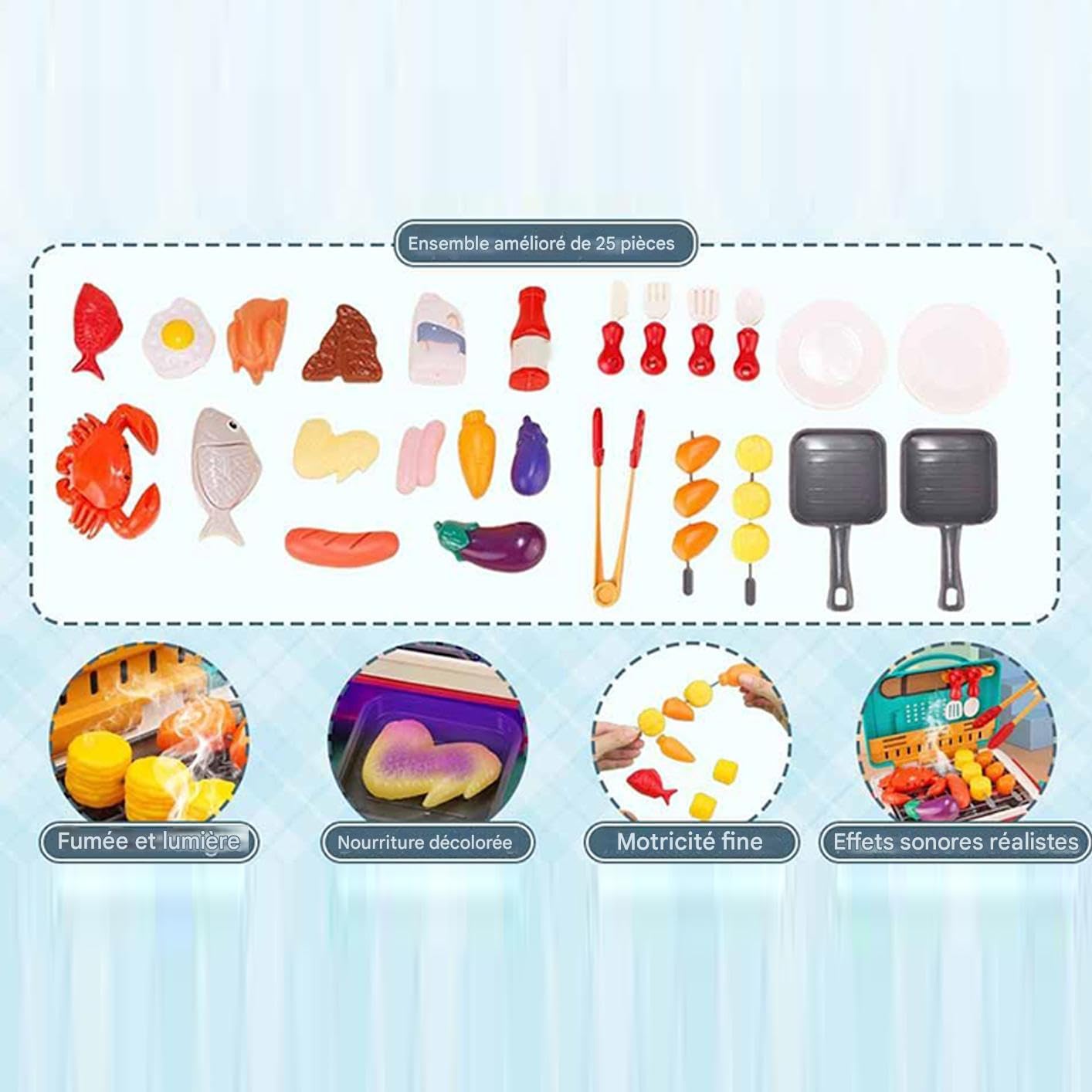 Migliora il team: il gioco barbecue per incoraggia il gioco collaborativo aiutandoli a lavorare insieme su sistemi di carte attività, migliorando così la loro capacità di cooperare e comunicare in attività sensoriali ricche. Partecipando a scenari di gioco di ruolo come il barbecue, li sviluppano la loro squadra e creatività condivisa, in un ambiente divertente che stimola l'apprendimento attraverso il gioco e rafforza i legami Incoraggia l'Divertimento Mini Barbecue: il set da cucina barbecue fornisce strumenti per le azioni di condimento e di ribaltamento, creando un'affascinante mini-festa barbecue dove possono rafforzare le loro abilità culinarie attraverso il gioco di ruolo fantasioso. Perfetto per momenti di gioco interattivi, ispira creatività e fiducia in se stessi attraverso attività simulatori che riproducono situazioni reali di pasti all'aperto, senza alcun pericolo. Sviluppo delle abilità procedurali: I moduli di cottura di questo barbecue giocattolo sono progettati per rafforzare la formazione nelle abilità di vita precoce, migliorare il pensiero logico in età prescolare e attirarli in un gioco immaginativo che riflette i processi culinari reali. Questo approccio promuove una crescita naturale dello sviluppo attraverso attività adeguate. Simulazione di BBQ Interactive: il set di set grill per integra una tecnologia alimentare che cambia colore che migliora il gioco di cucina sensoriale, offrendo un'esperienza di cottura coinvolgente grazie alla simulazione di azioni di griglia realistiche. Questa funzione interattiva stimola la creatività di scenari di gioco di ruolo culinari, favorendo esplorazione tattile e immaginazione attraverso attività giocose indoor o all'aperto, p Effetti sonori e realistici: grazie a segnali audio scoppiettanti e luci LED luminose, i giocattoli da cucina creano un ambiente coinvolgente che promuove l'interazione multi-sensoriale e ispira ore di gioco fittizio. Gli chef imitano nel proprio spazio cucina, che affascina la loro attenzione e stimola la loro creatività attraverso effetti realistici per una divertente avventura culinaria.